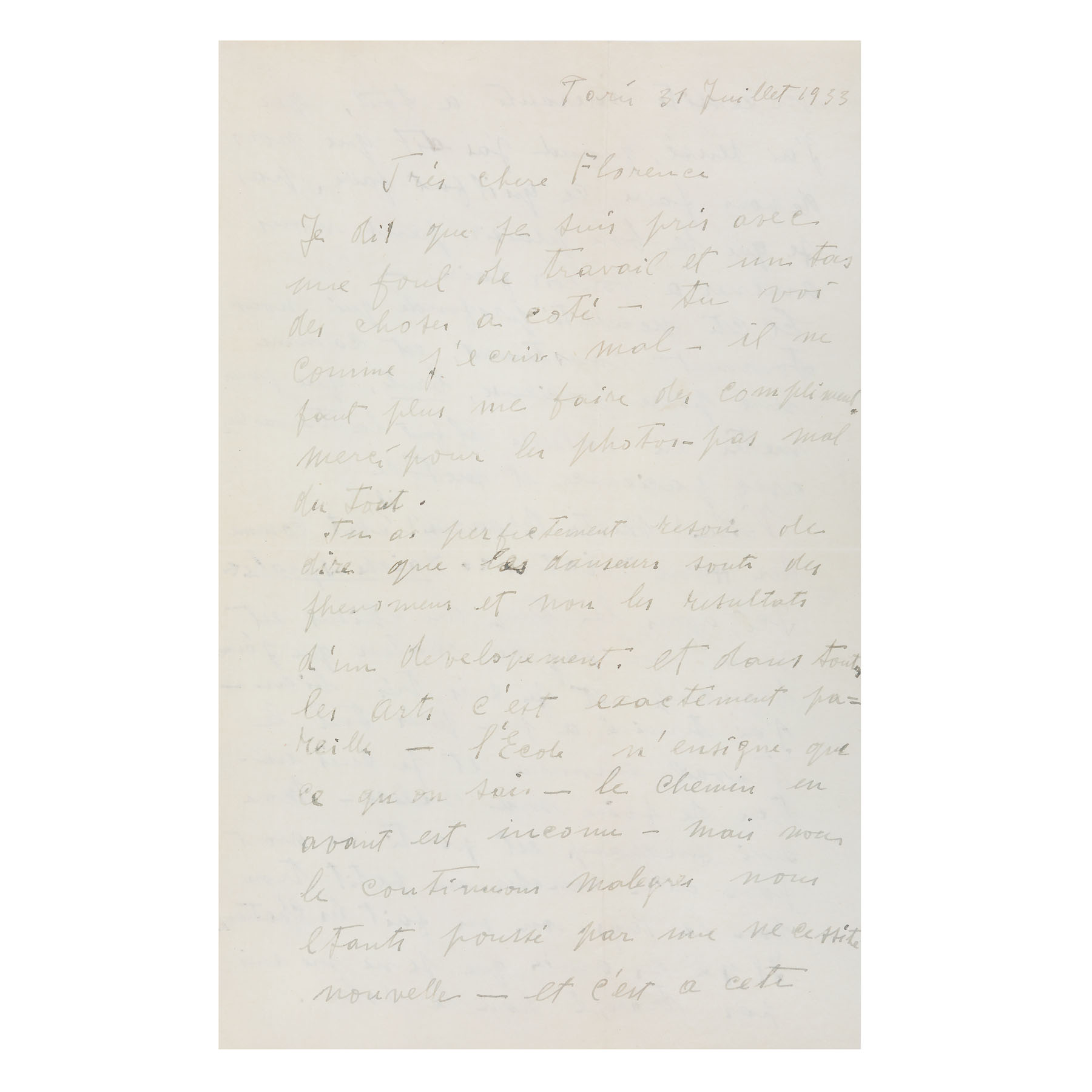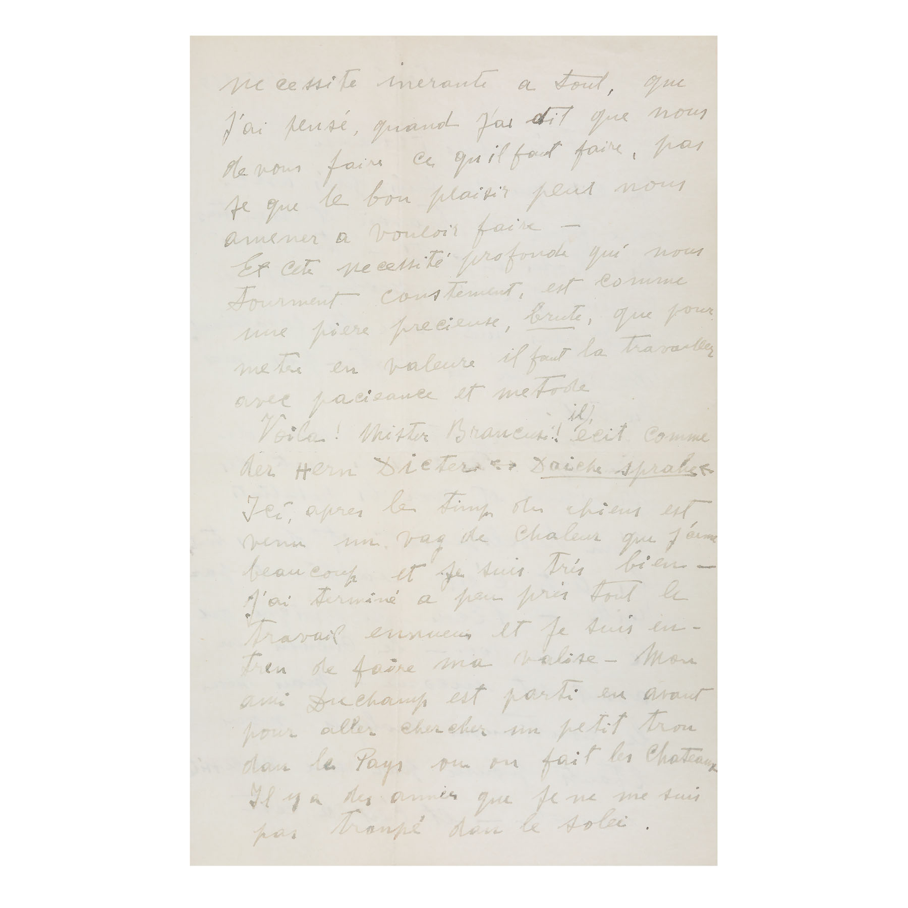 114A. Scrisoare de dragoste ”Și această nevoie profundă care ne frământă tot timpul este ca o piatră prețioasă, neșlefuită” (Et cette nécessite profondé qui nous fourment constamment, est comme une piere précieuse, brute” trimisă de Constantin Brâncuși către Florence Meyer (Homolka), Paris, 31 iulie 1933