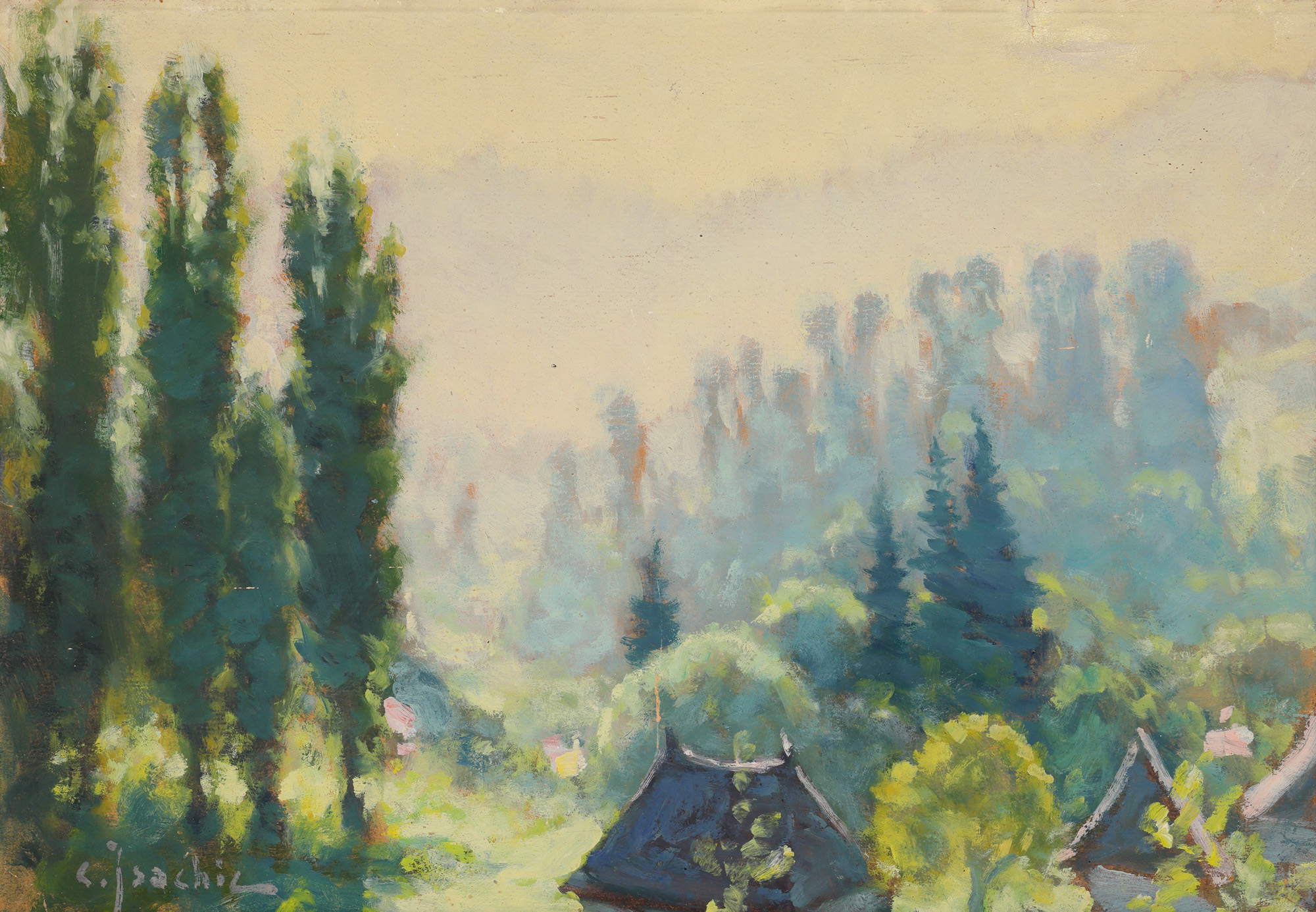 semnat stânga jos, cu gri, "C. Isachie"