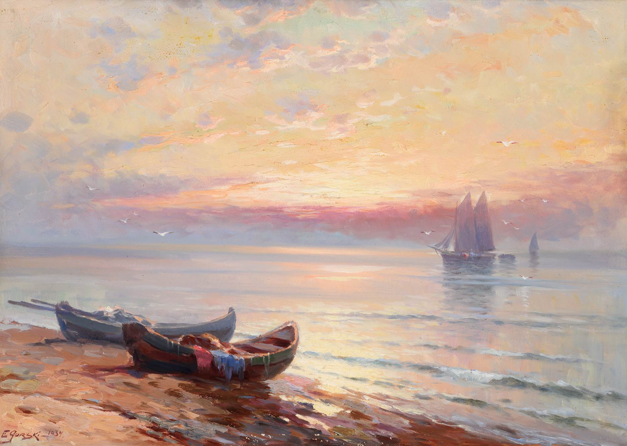 semnat și datat stânga jos, cu brun, "E. Gorsky, 1934"