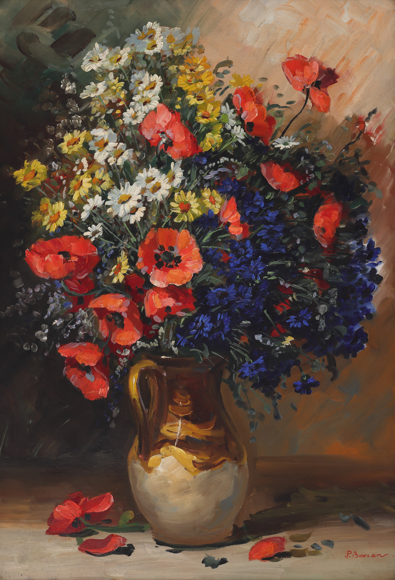 semnat dreapta jos, cu roșu, ”P. Barcan”