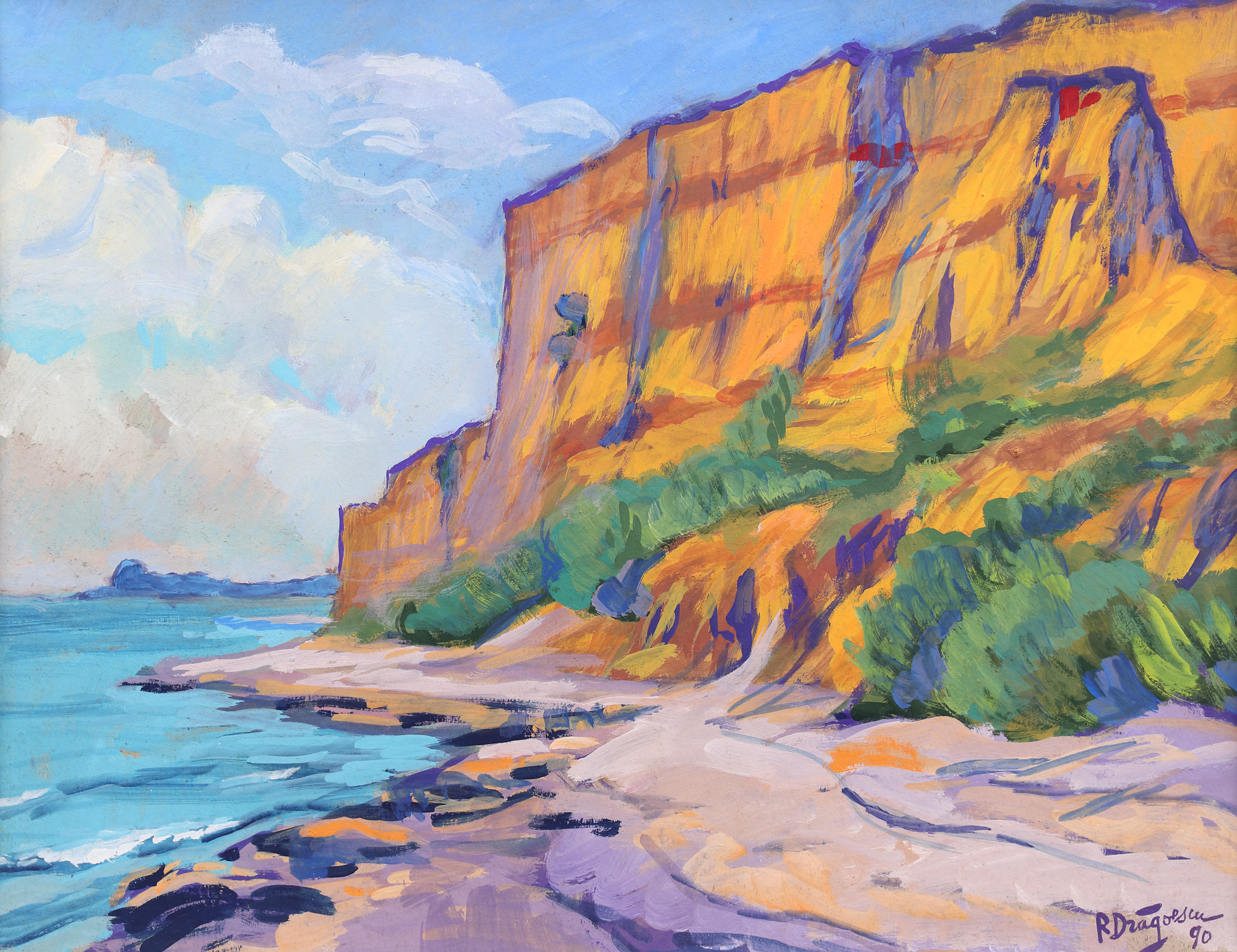 semnat dreapta jos, cu mov, ”R. Drăgoescu 19(90)”