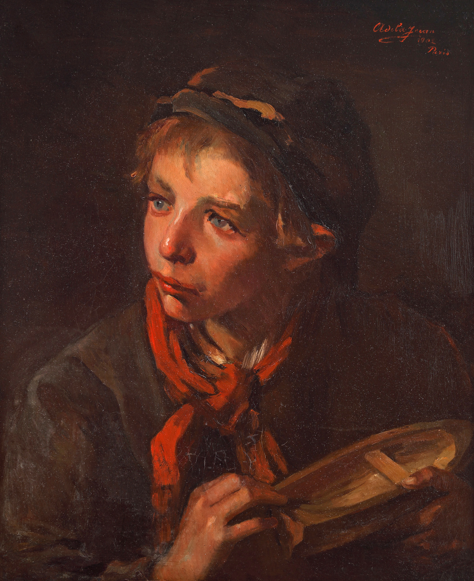 semnat, datat și localizat dreapta sus, cu roșu, ”Adela Jean, 1902, Paris”