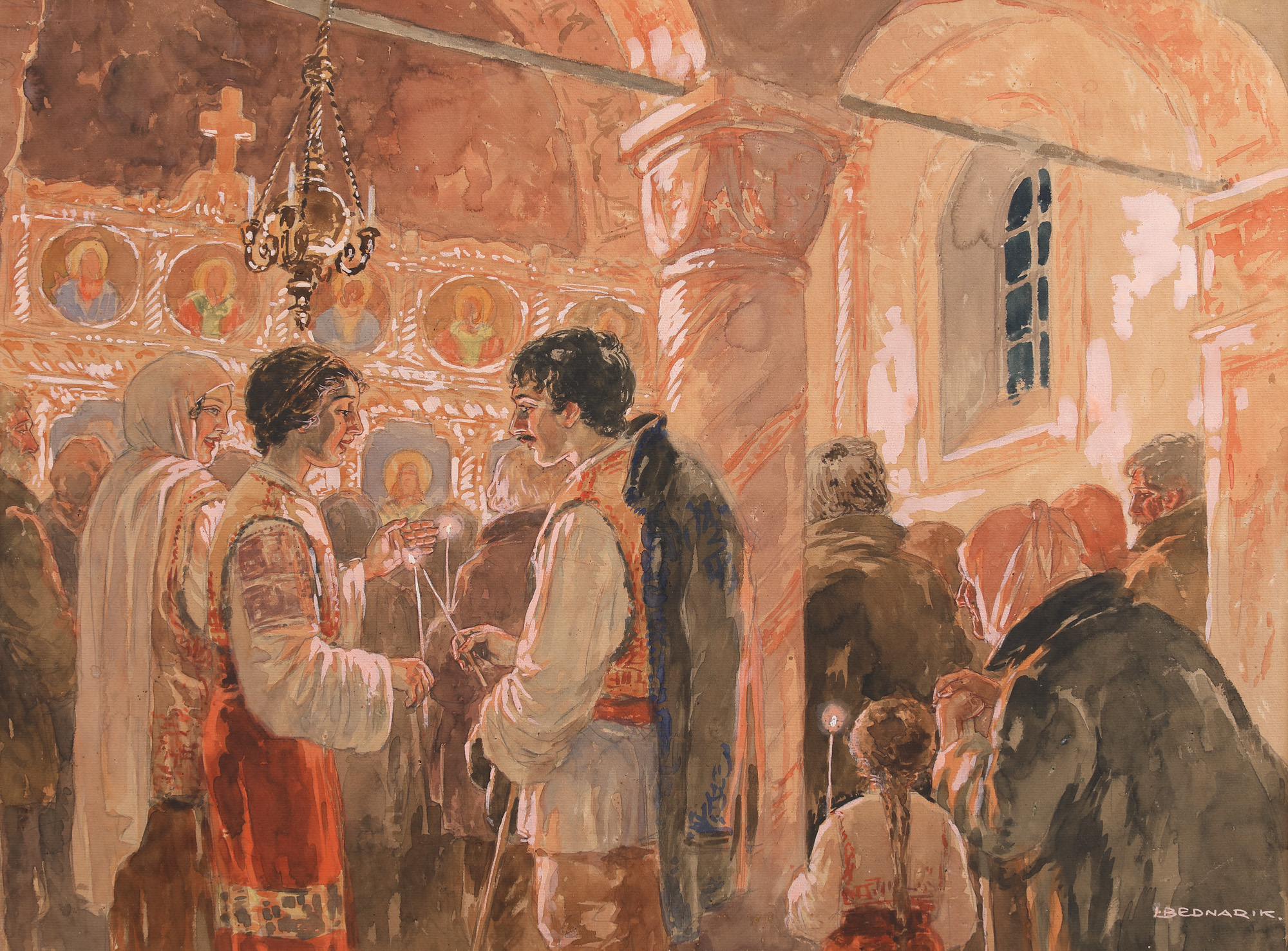 semnat dreapta jos, cu alb, ”I. BEDNARIK”