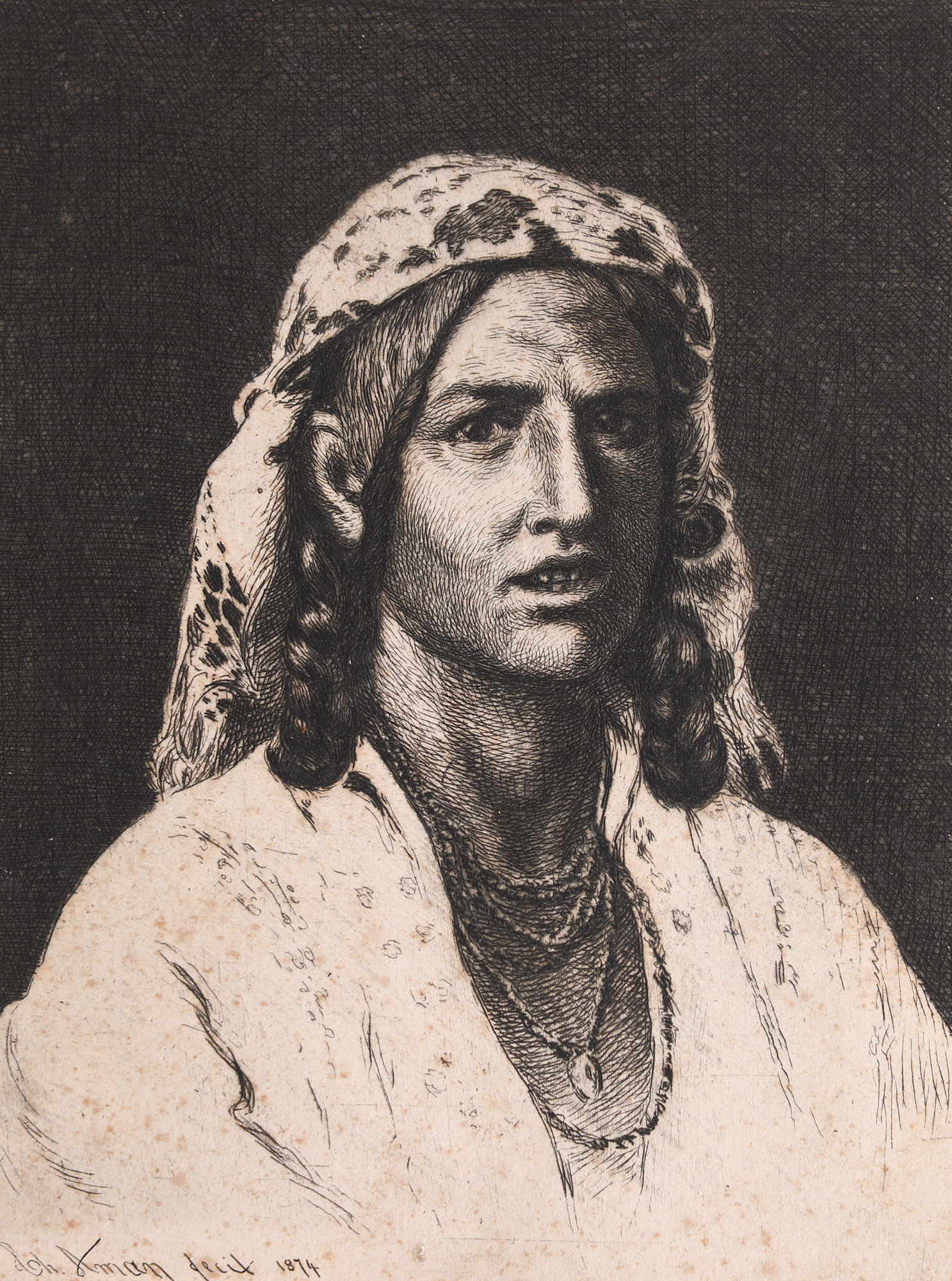 semnat și datat, gravat, stânga jos, în placă, "Th. Aman, 1874"
