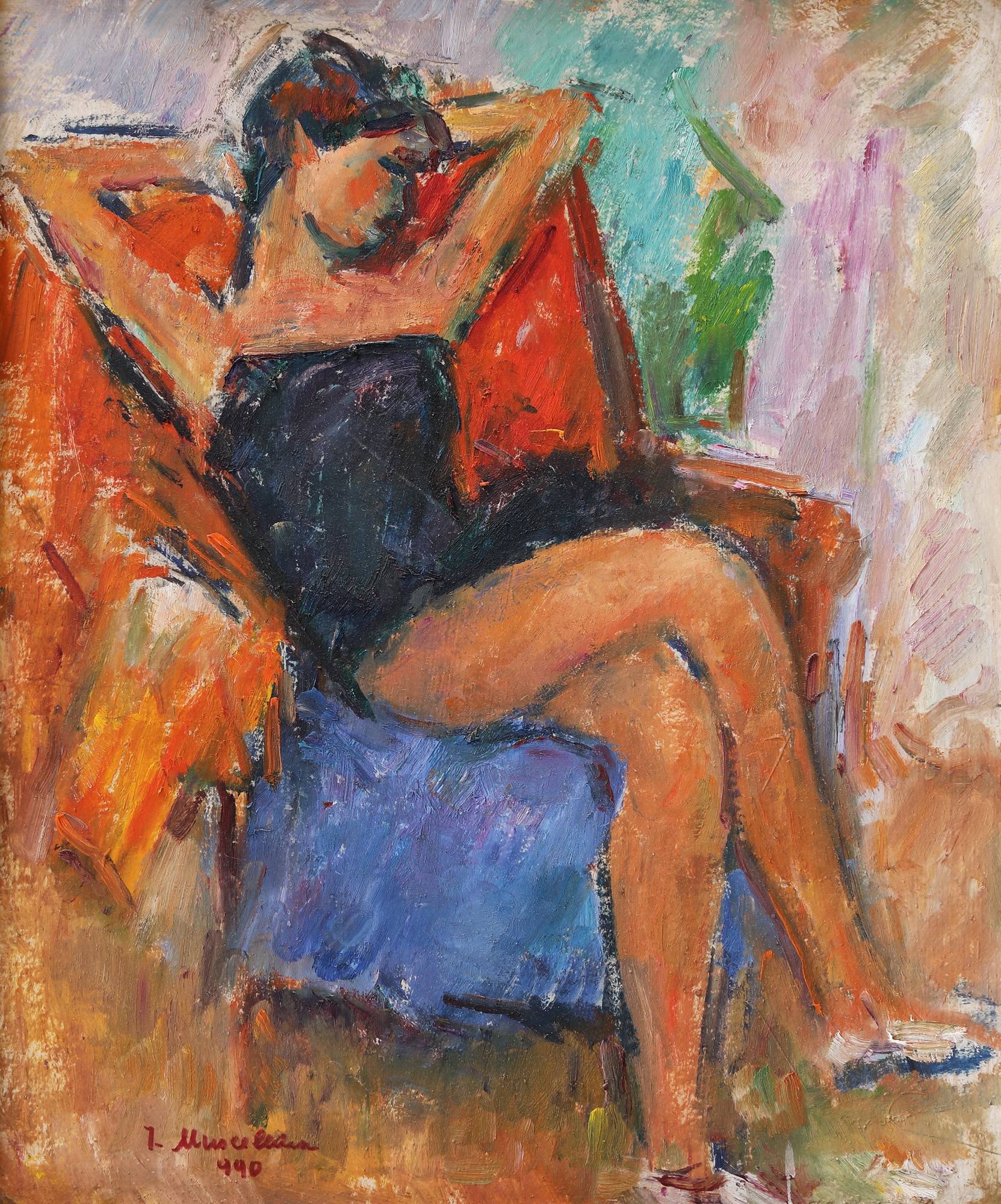 semnat și datat stânga jos, cu roșu, ”I. Musceleanu, (1)990”