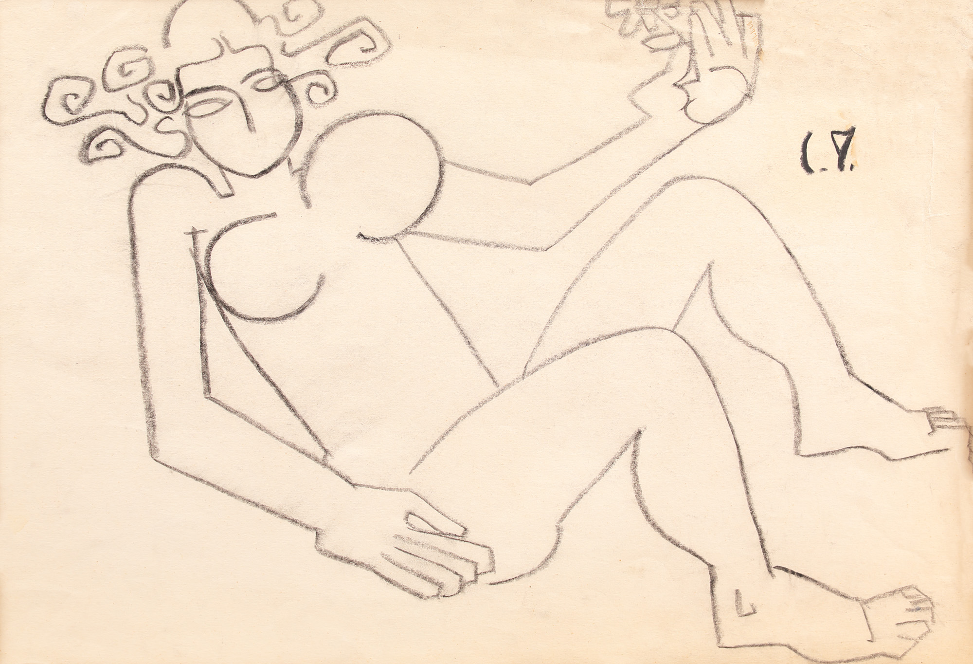semnat dreapta sus, în cărbune, "C.P."
