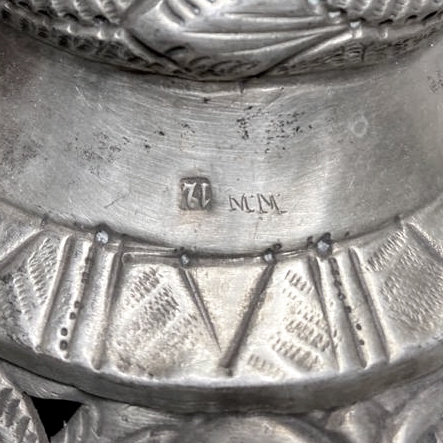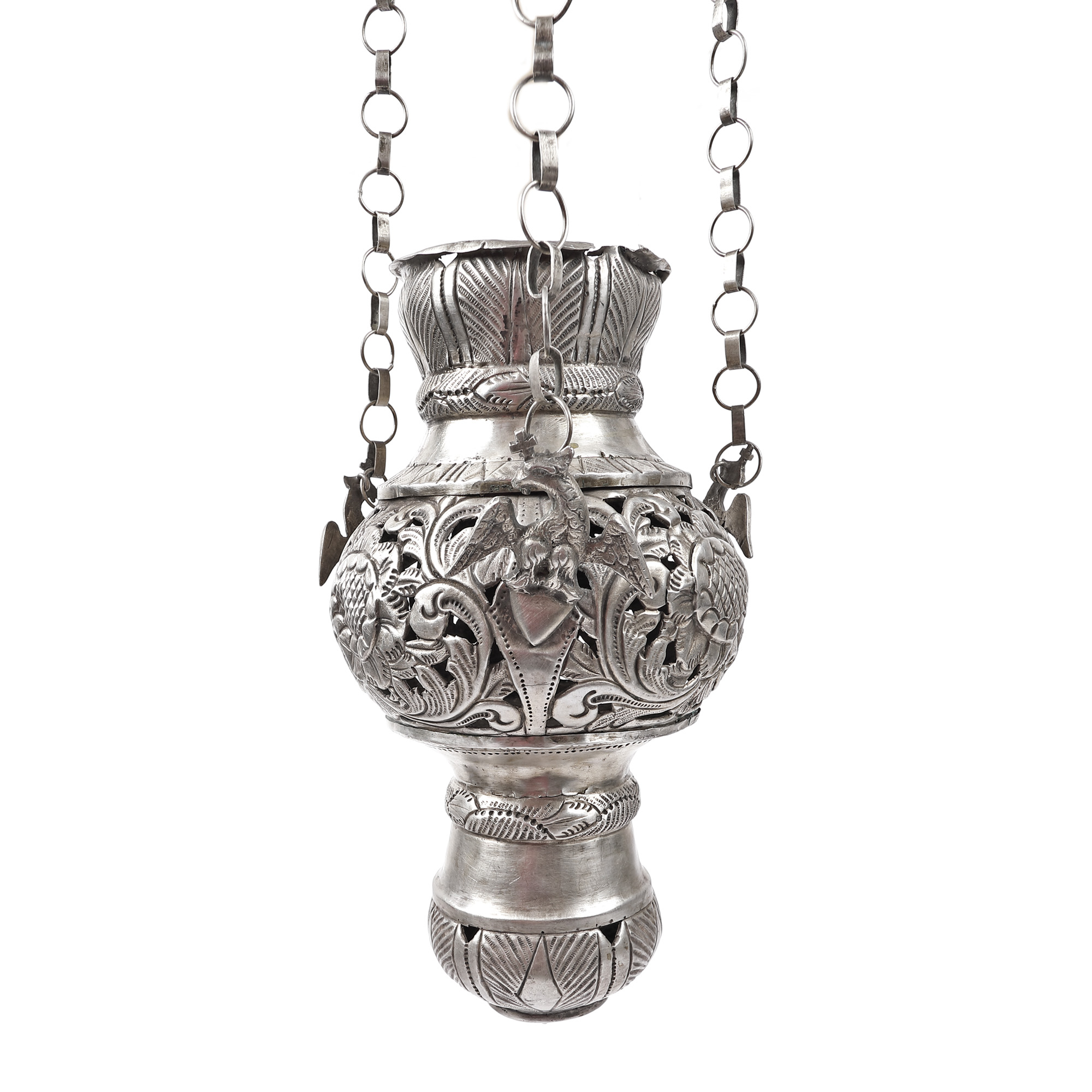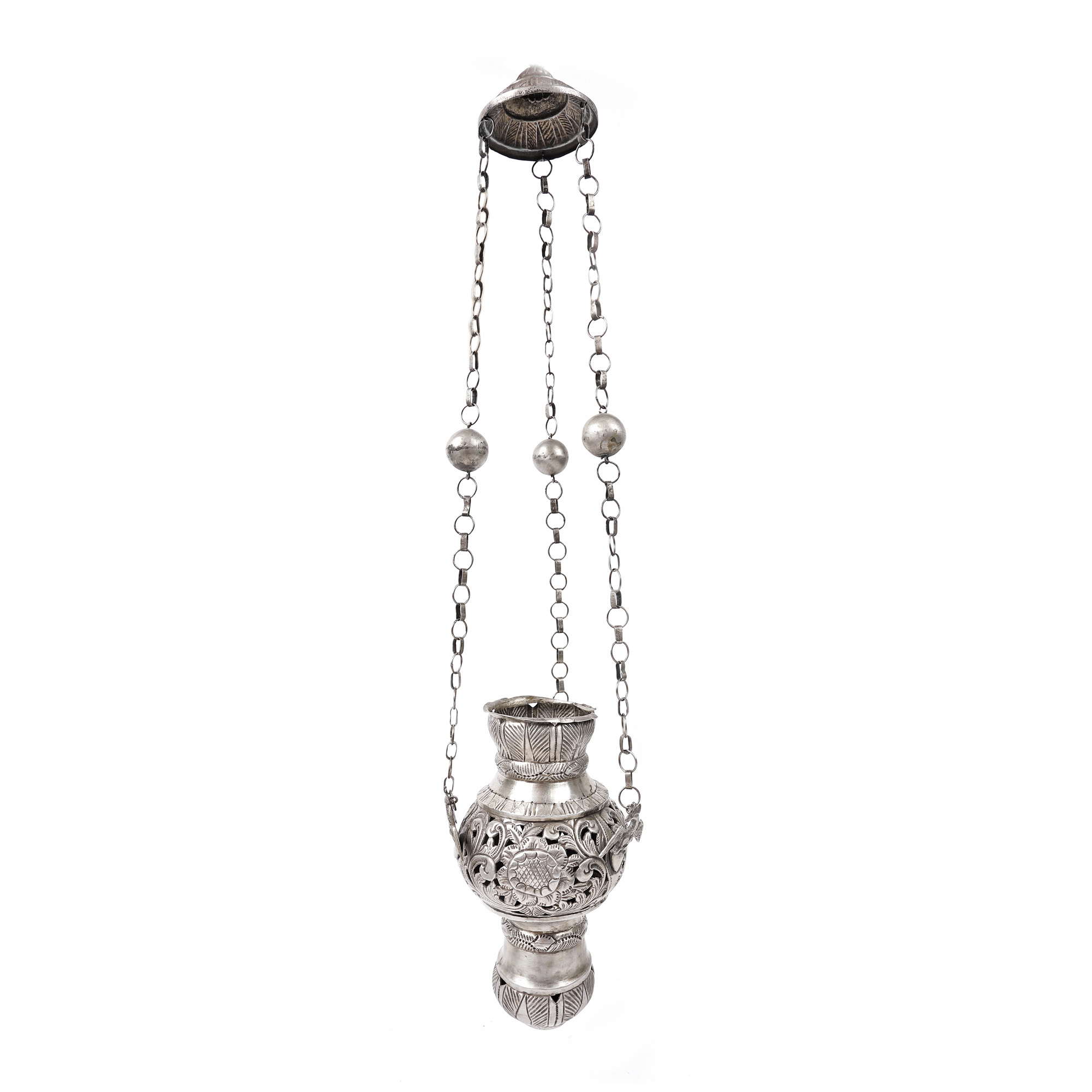 61. Candelă din argint decorată cu acvila cruciată din stema Țării Românești și floare de dovleac, prima jumătate a sec. XIX