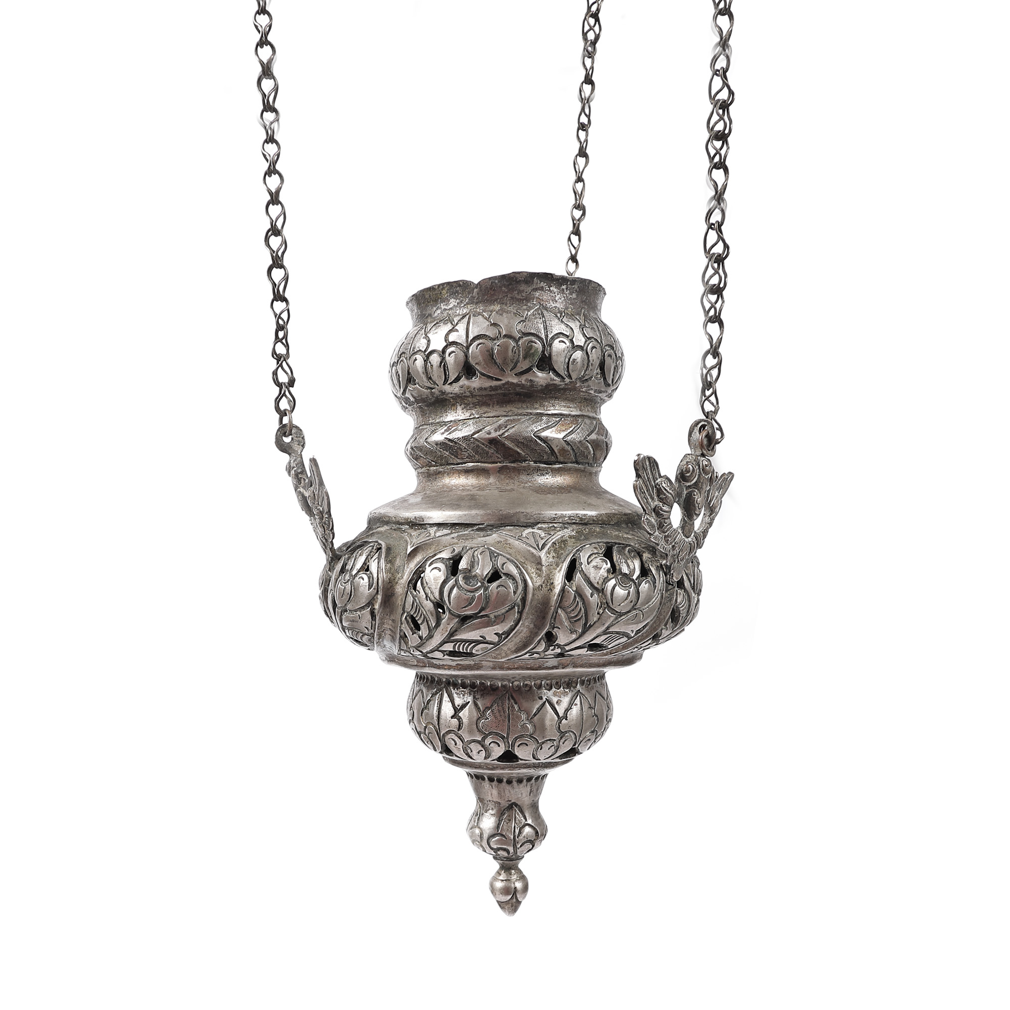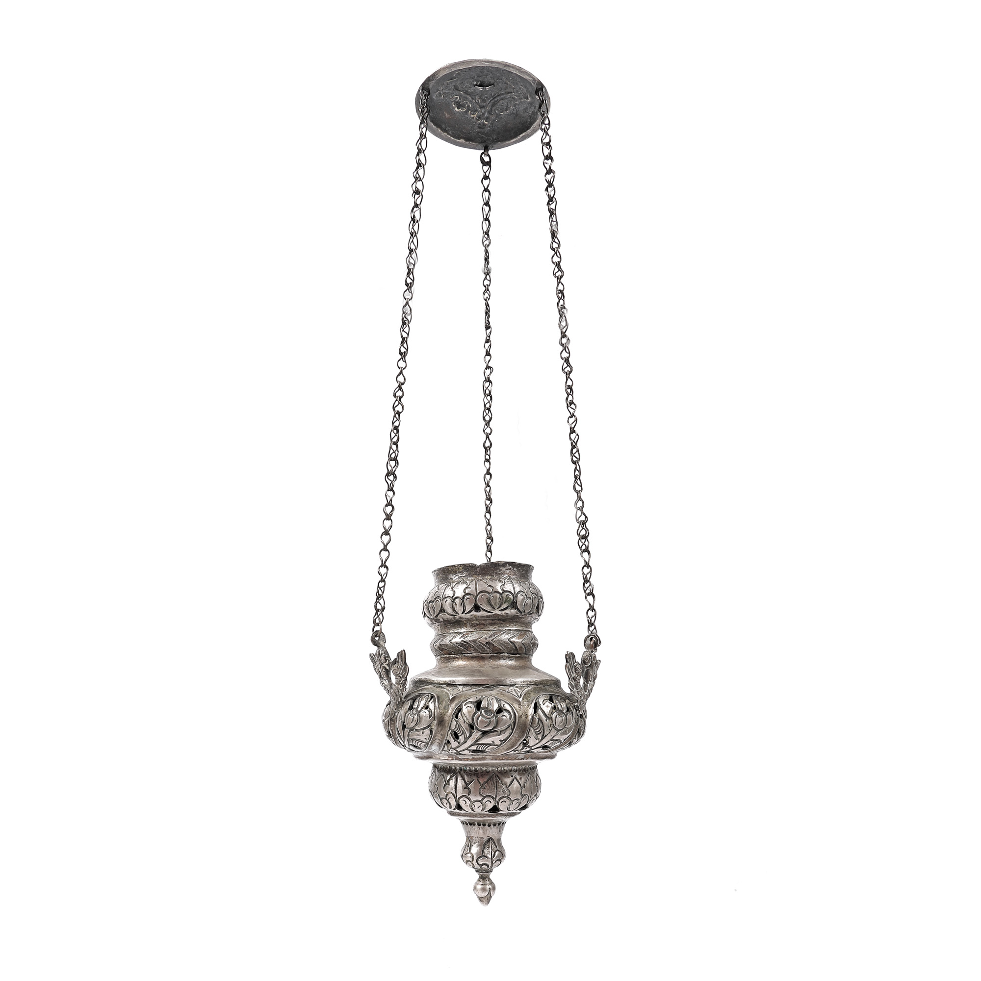 63. Candelă din argint, decorată cu flori de bujor, sec. XIX