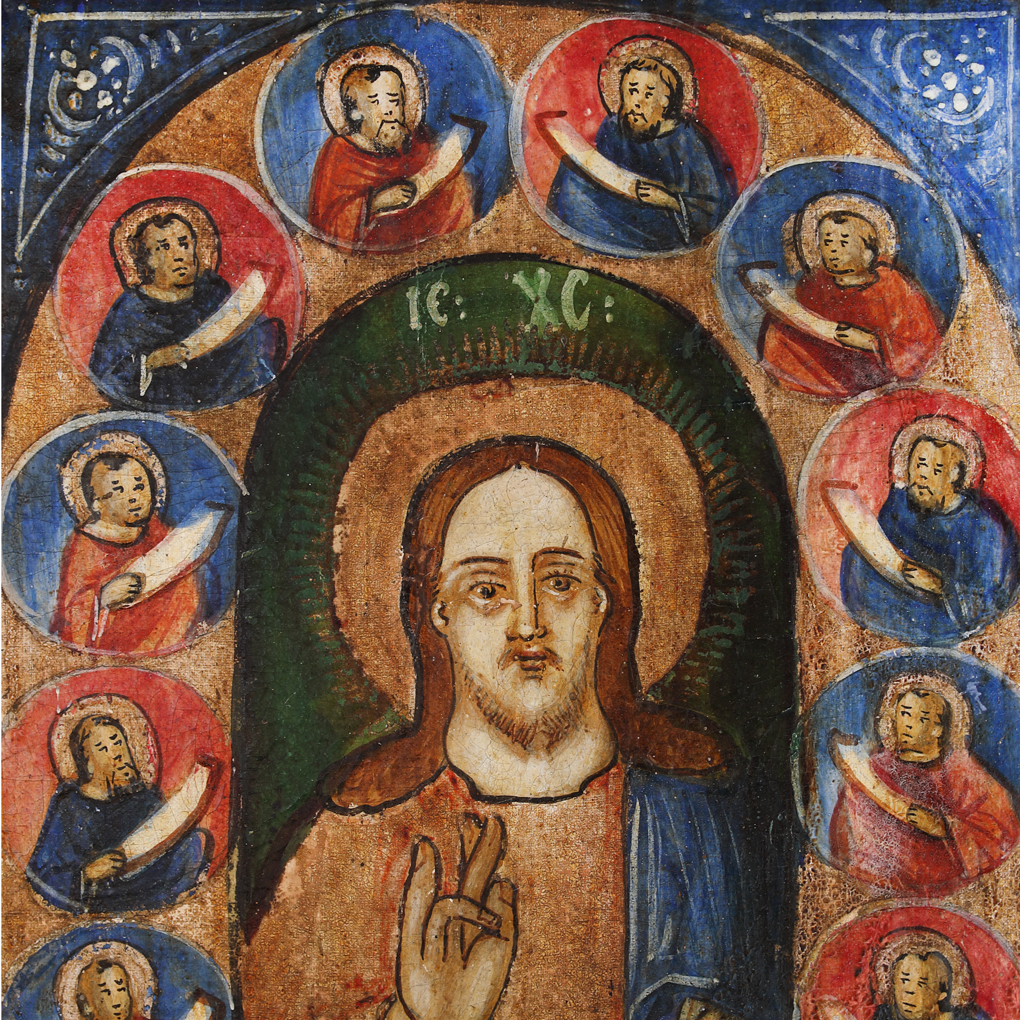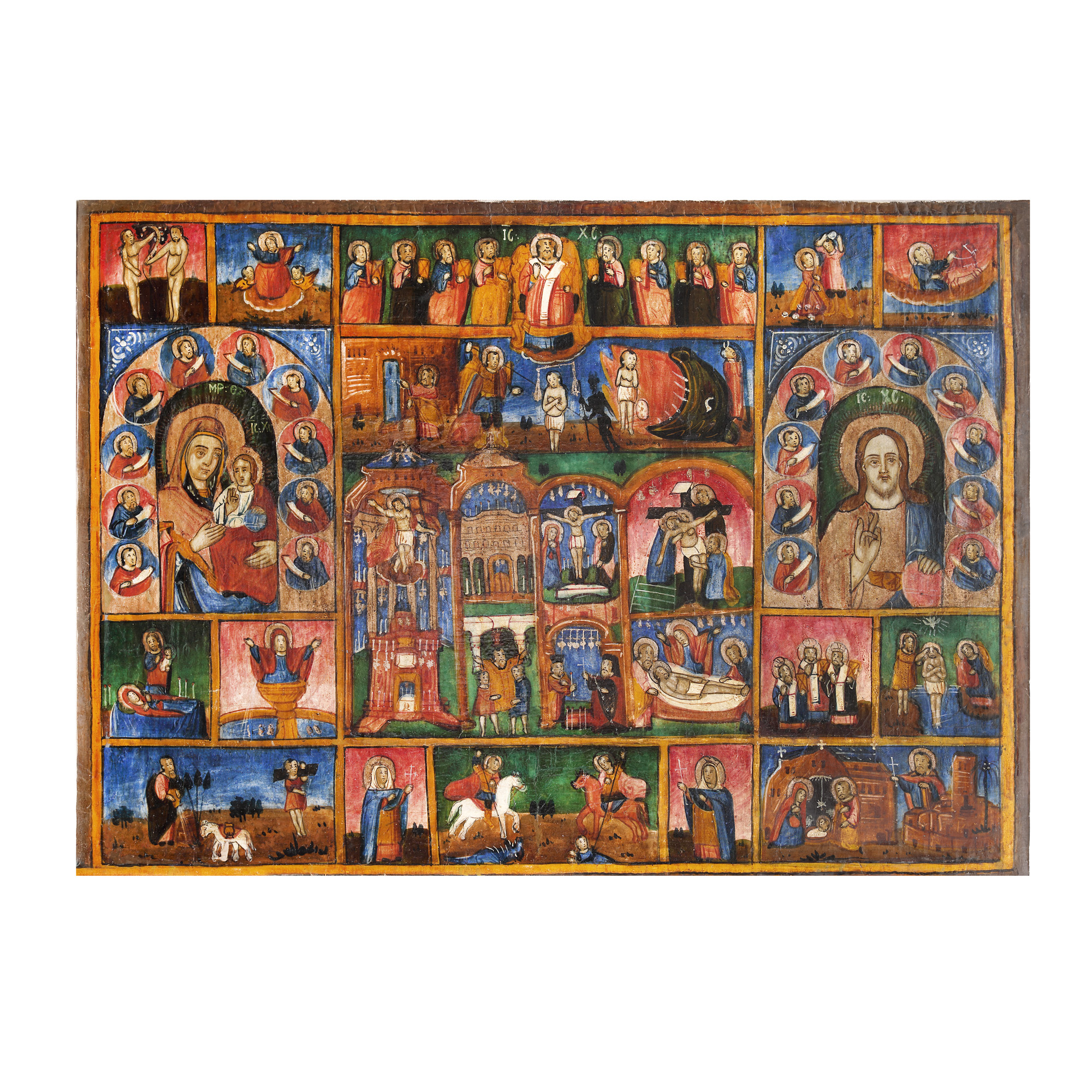 Central este reprezentată scena Sfântului Mormânt din Ierusalim, lateral stânga-dreapta Maica Domnului cu Pruncul și Iisus Pantocrator, înconjurați de scene din viața acestora.