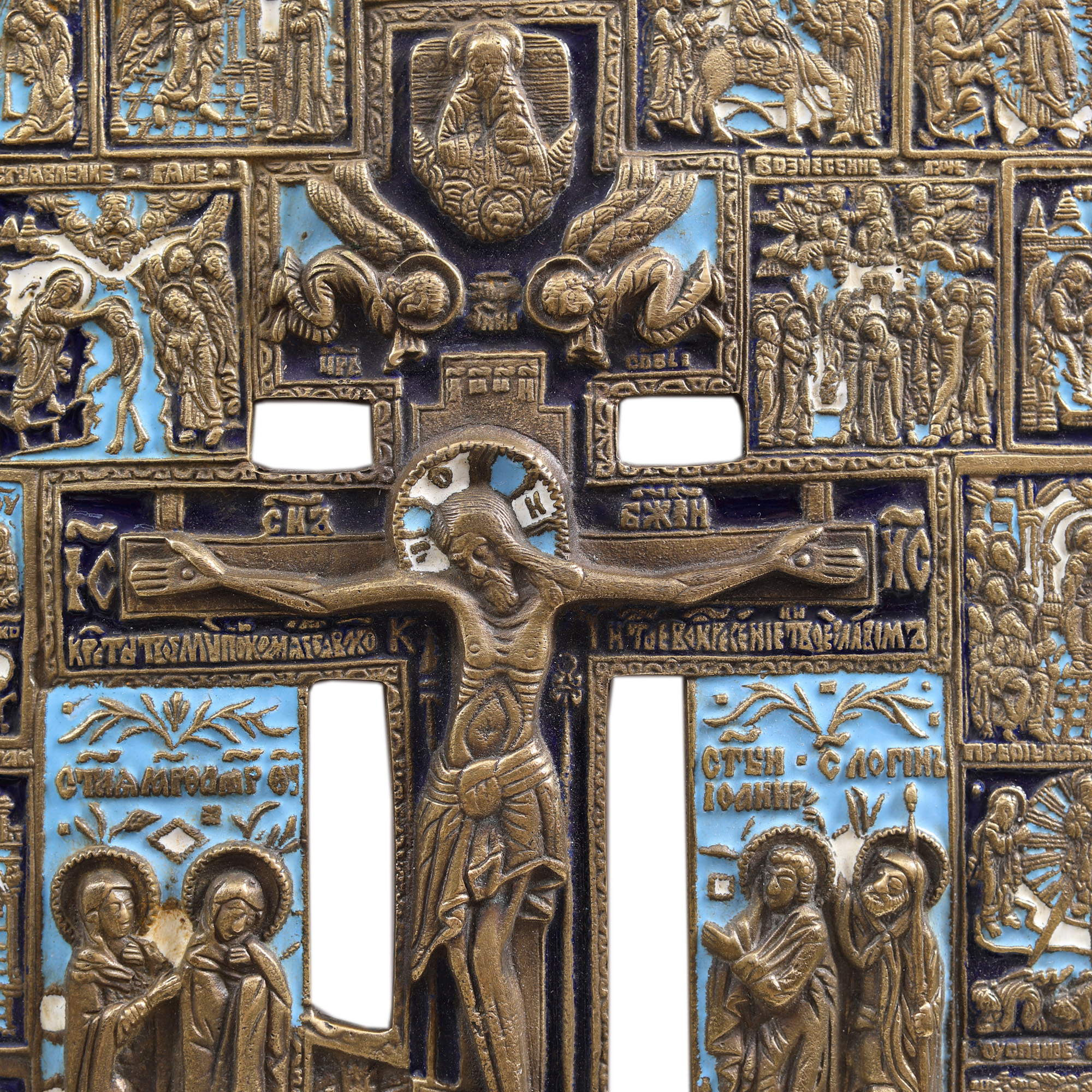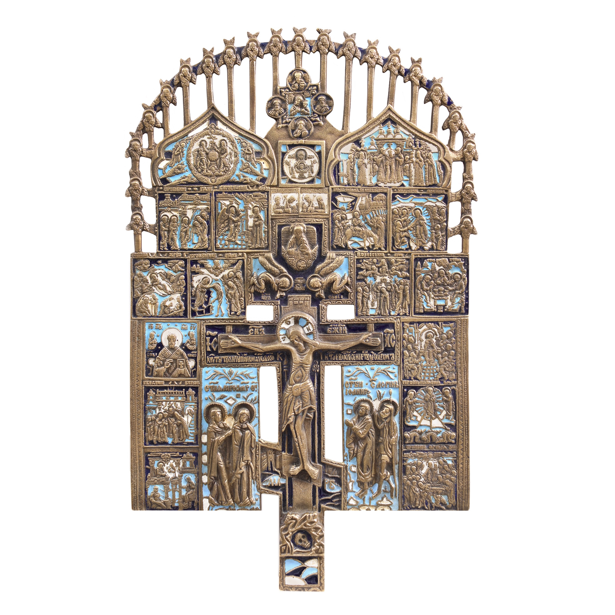 65. Icoană din alamă cu email, ”Răstignirea Domnului”, școală rusească, sec. XIX, piesă rară, de colecție