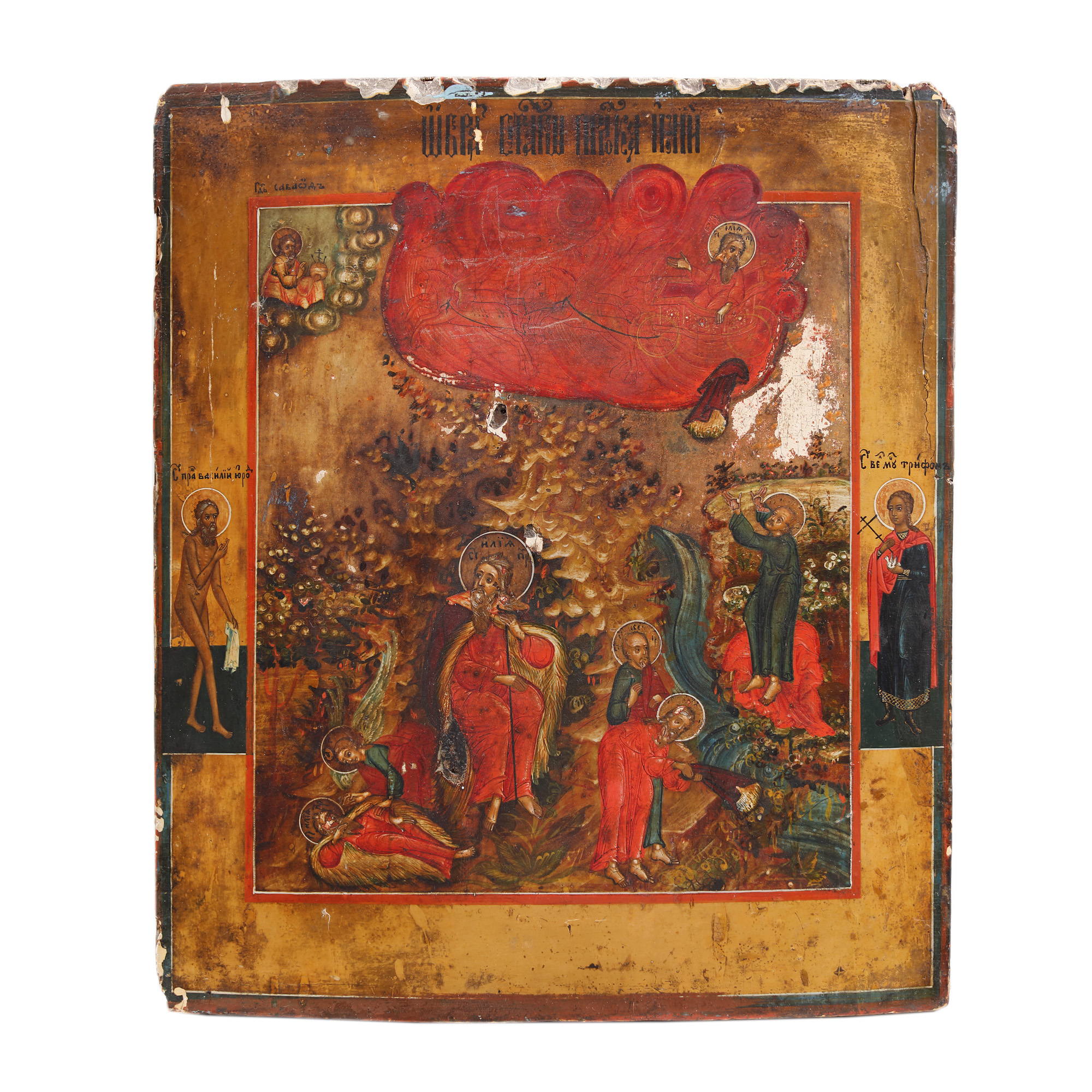 85. Icoană pe lemn, ”Înălțarea la cer a Sfântului Prooroc Ilie și scene din viața sa”, școală rusească, începutul sec. XIX