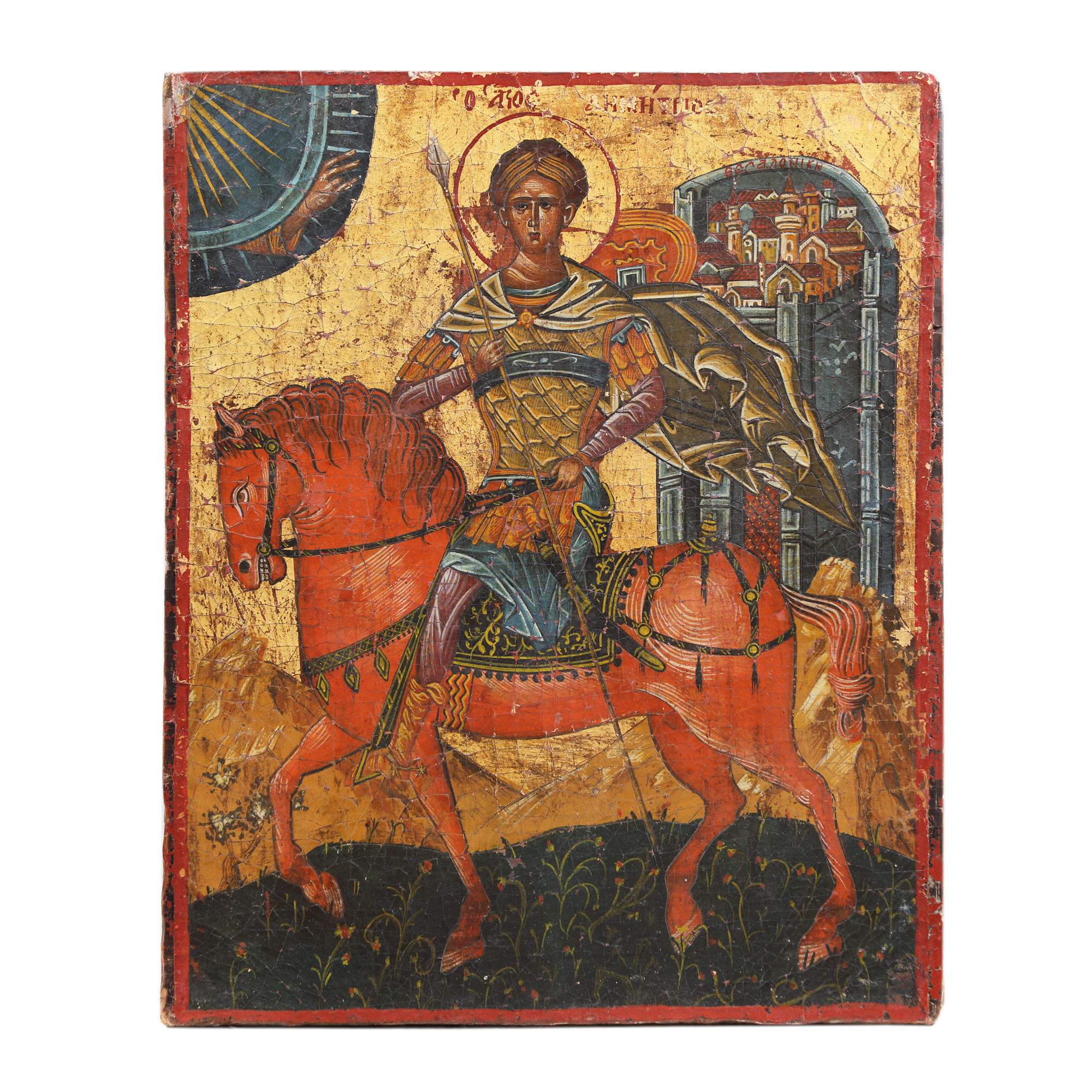 98. Icoană pe lemn, ”Sfântul Mare Mucenic Dimitrie din Tesalonic”, școală grecească