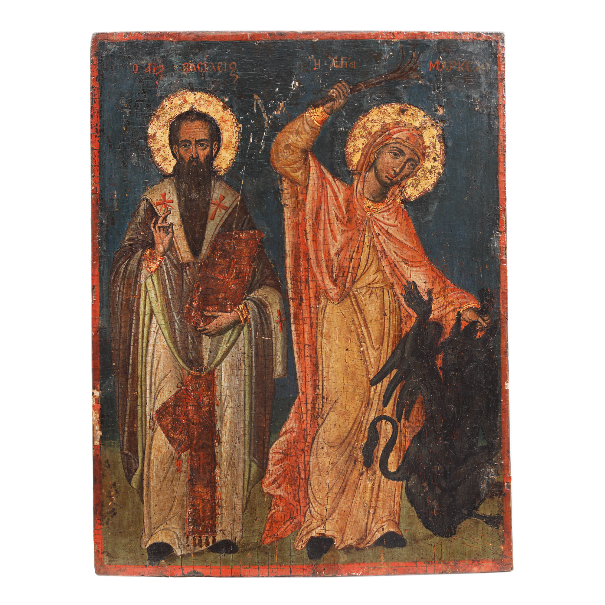 97. Icoană pe lemn, ”Sfântul Vasile și Sfânta Marina”, școală grecească, sfârșitul sec. XVIII