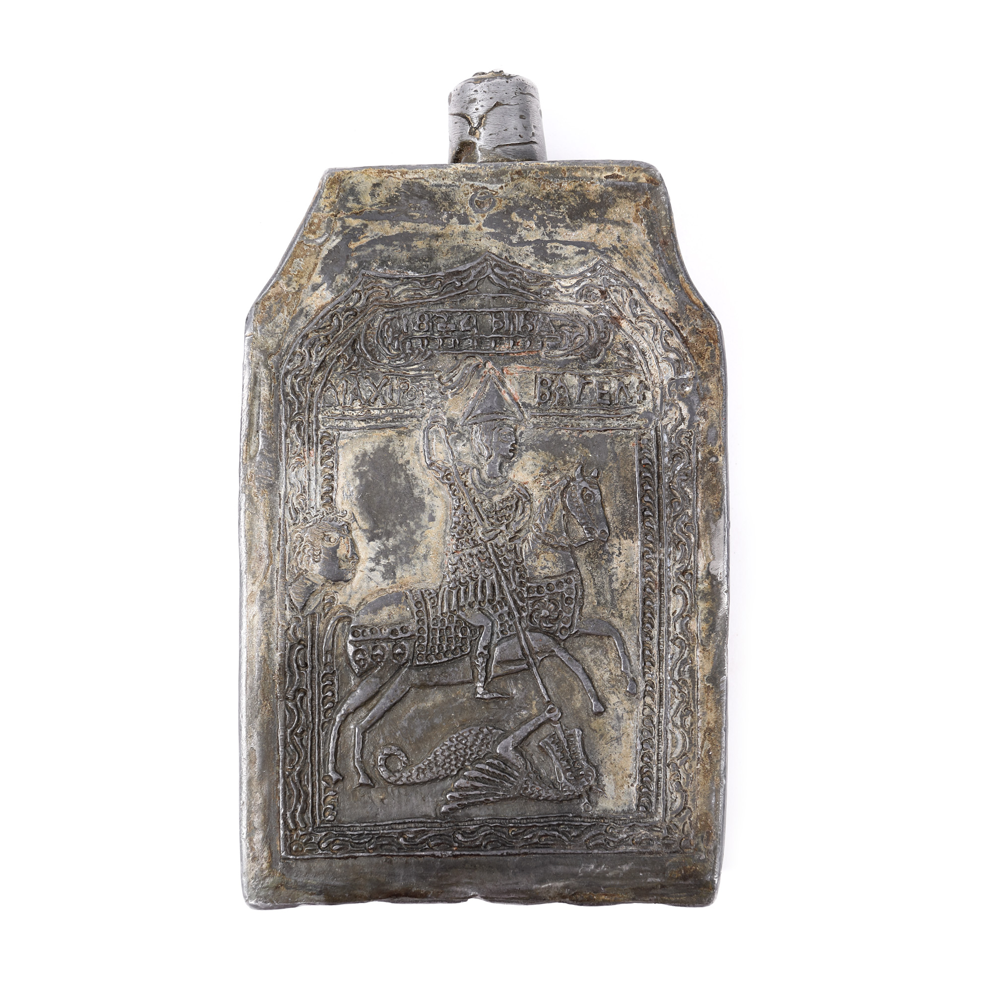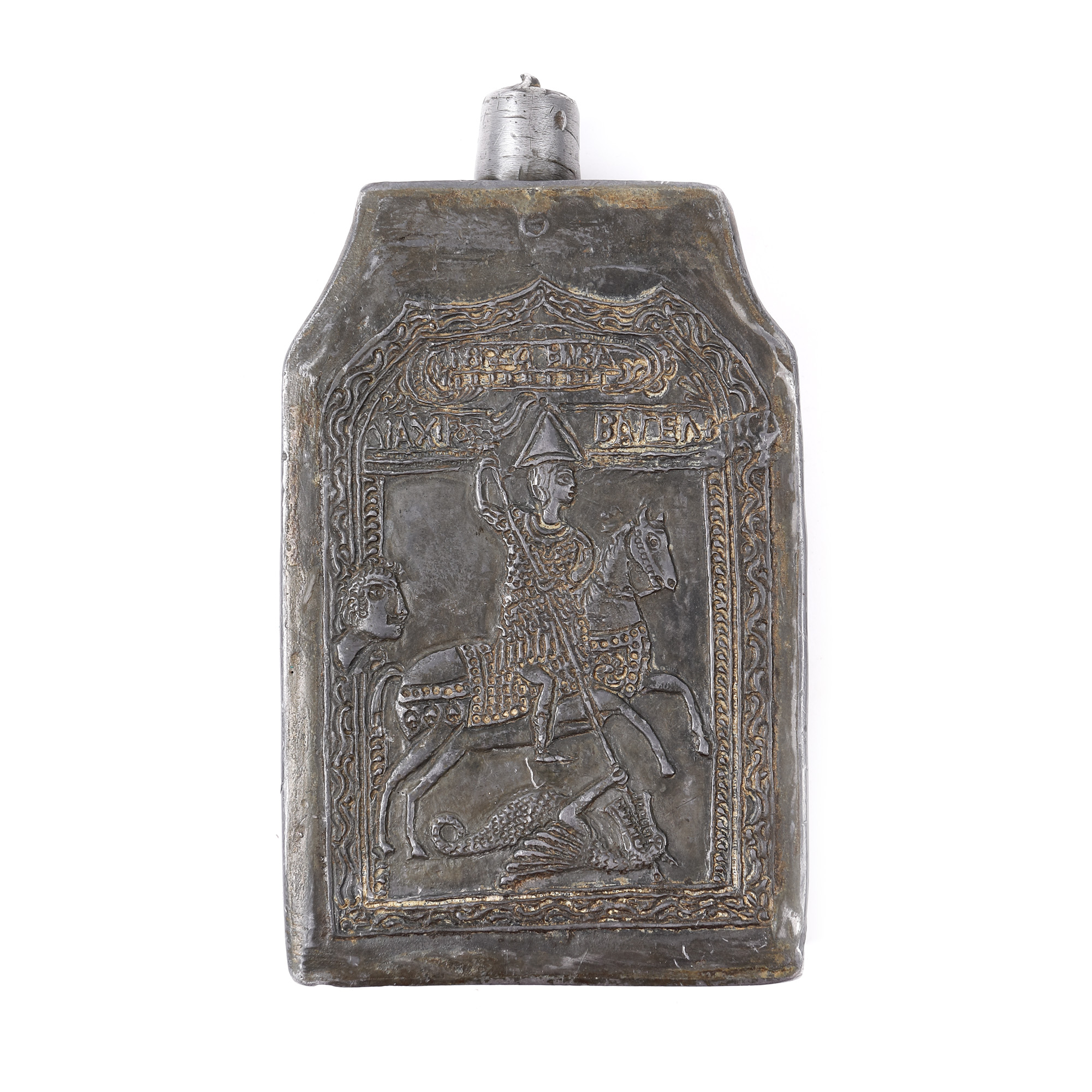 66. Recipient pentru lichide (butelcă de egumen), decorat cu scena "Sfântul Gheorghe omorând balaurul", 1824, piesă de colecție