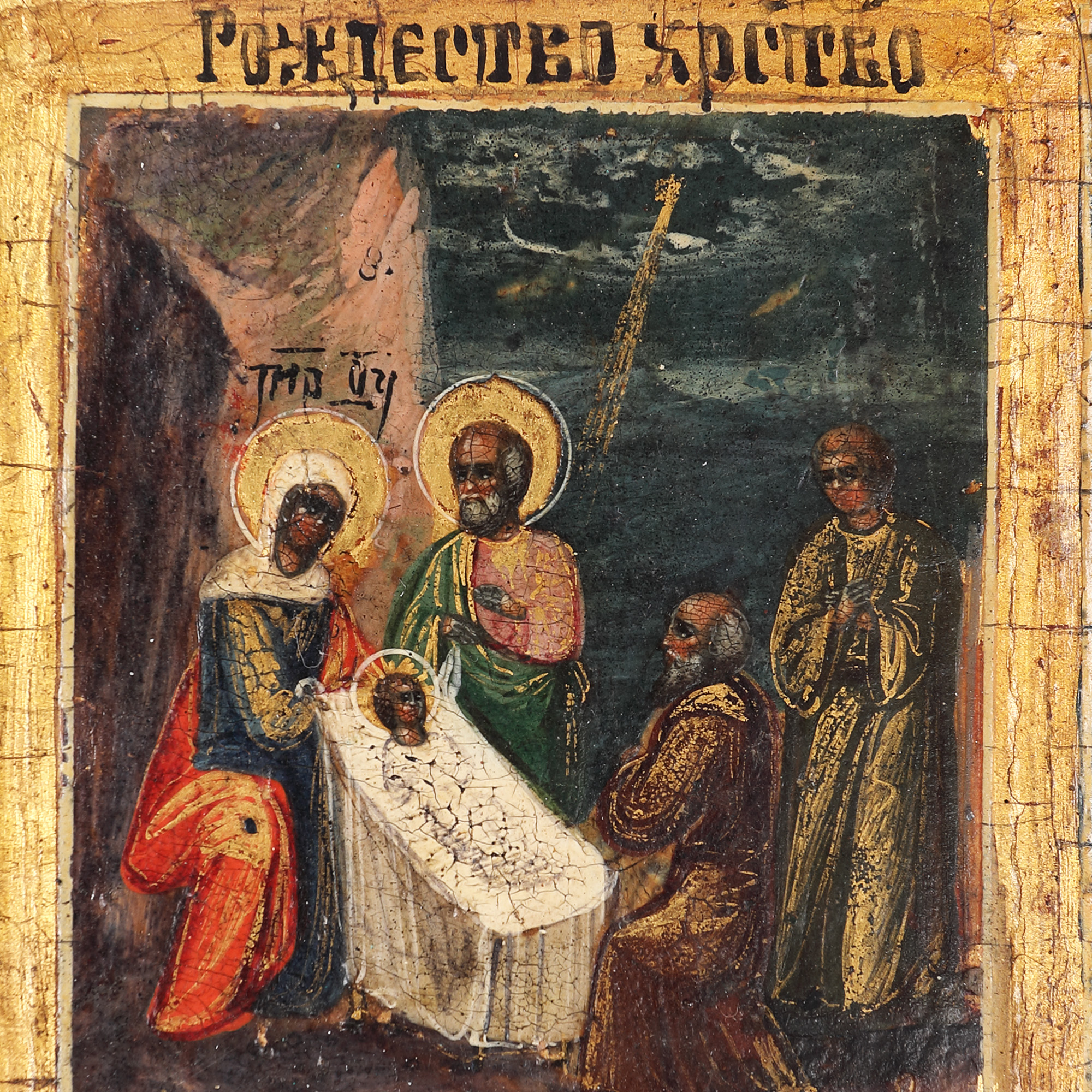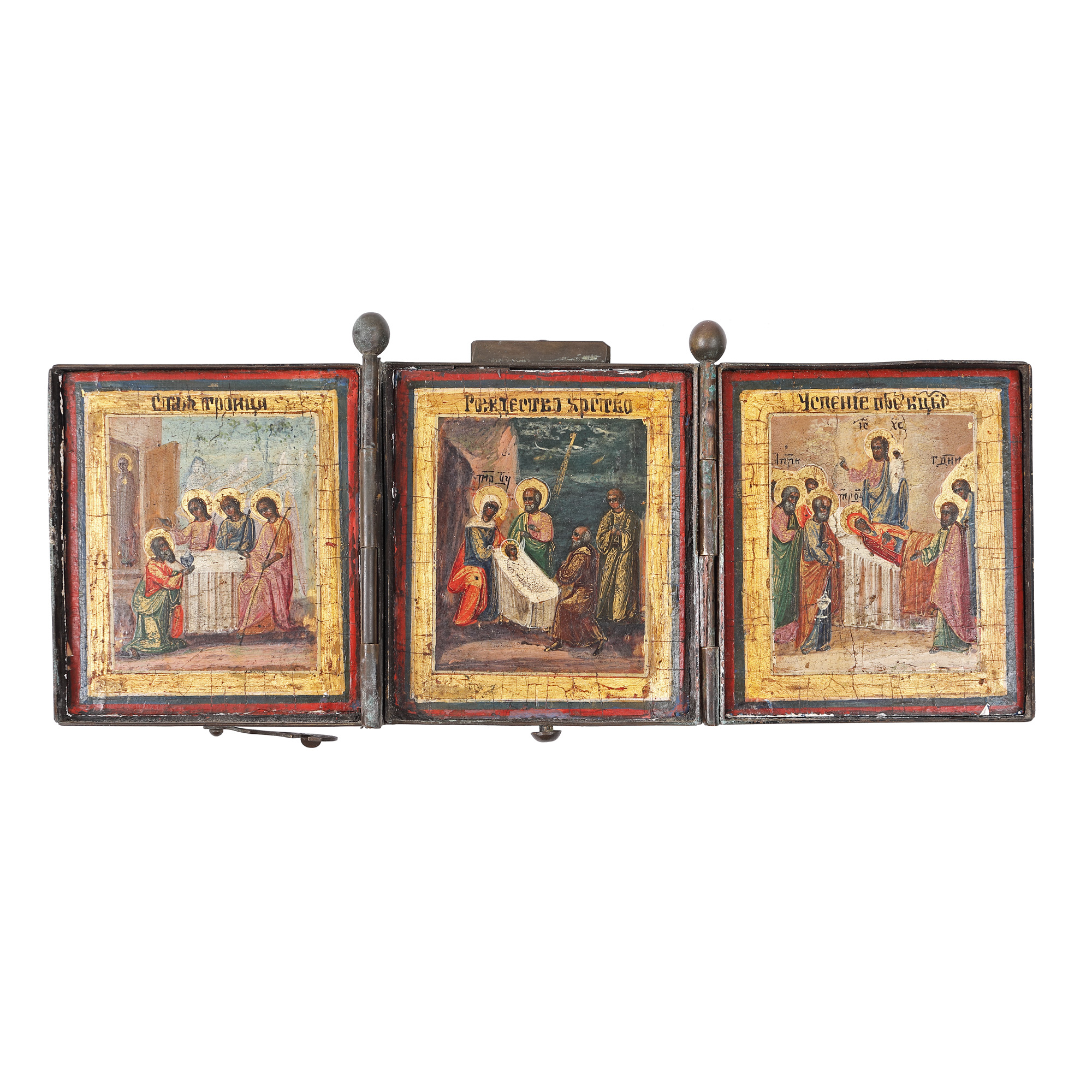 83. Triptic, ”Sfânta Treime, Nașterea Domnului și Adormirea Maicii Domnului”, școală rusească, prima jumătate a sec. XIX, de colecție