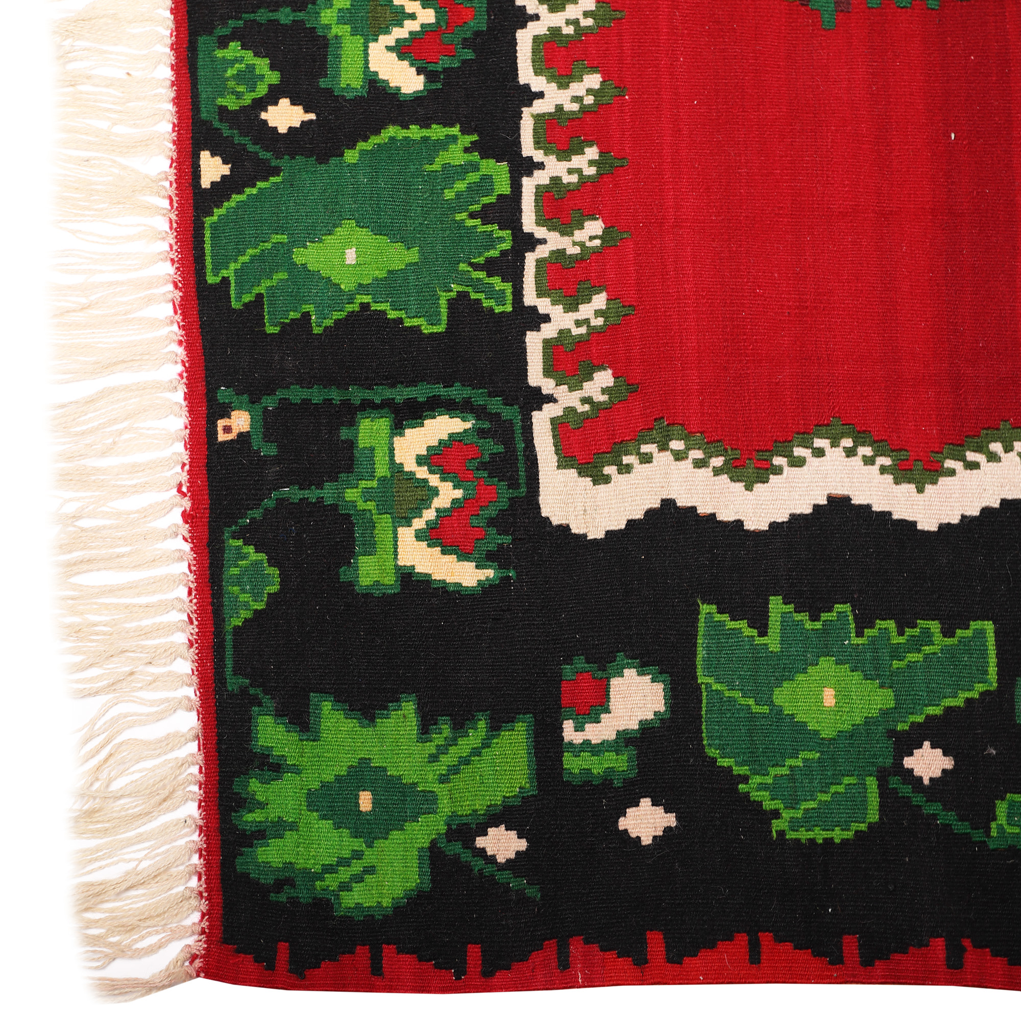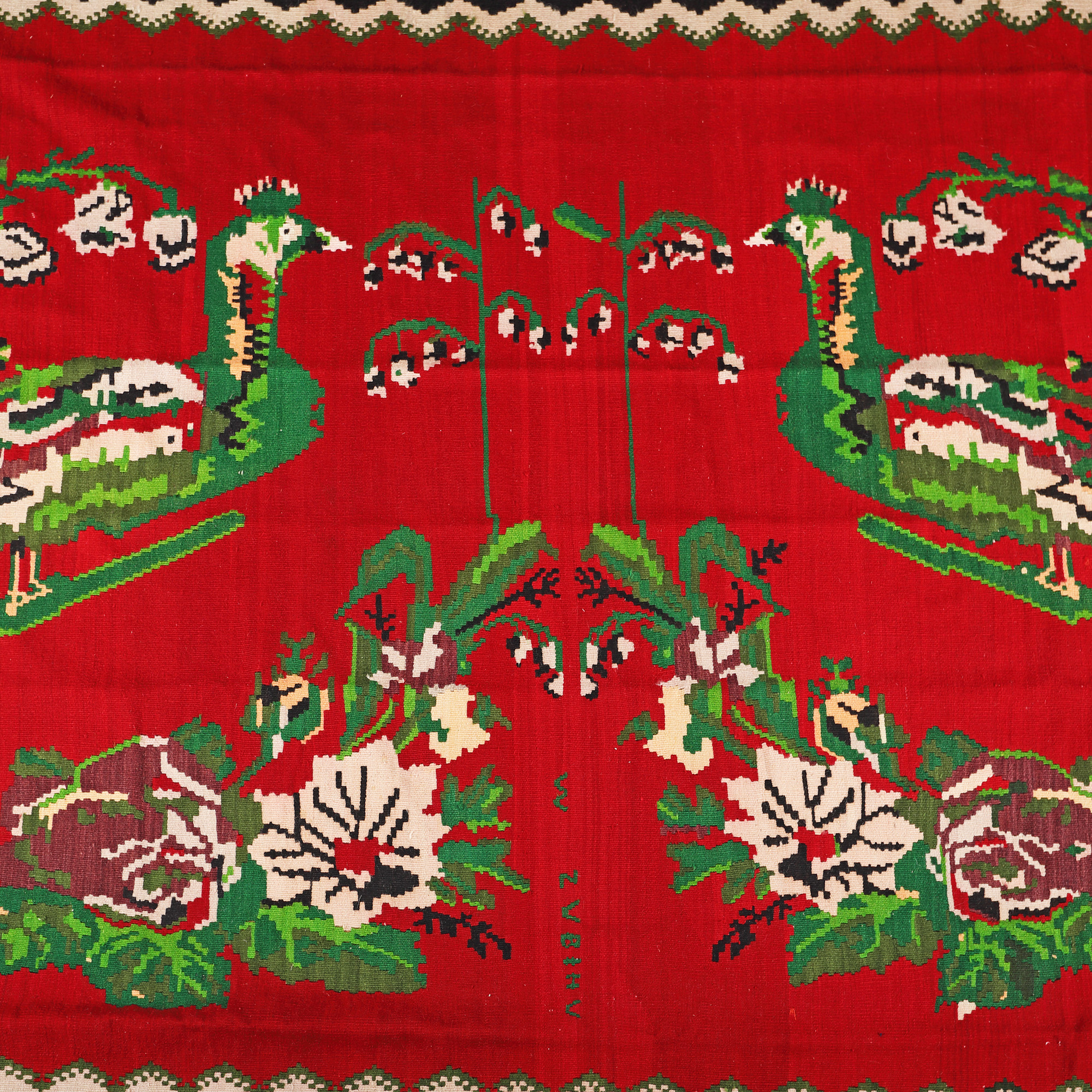 88. Covor basarabean, decorat cu flori și păuni, semnat ”M. Sabina”, prima jumătate a sec. XX