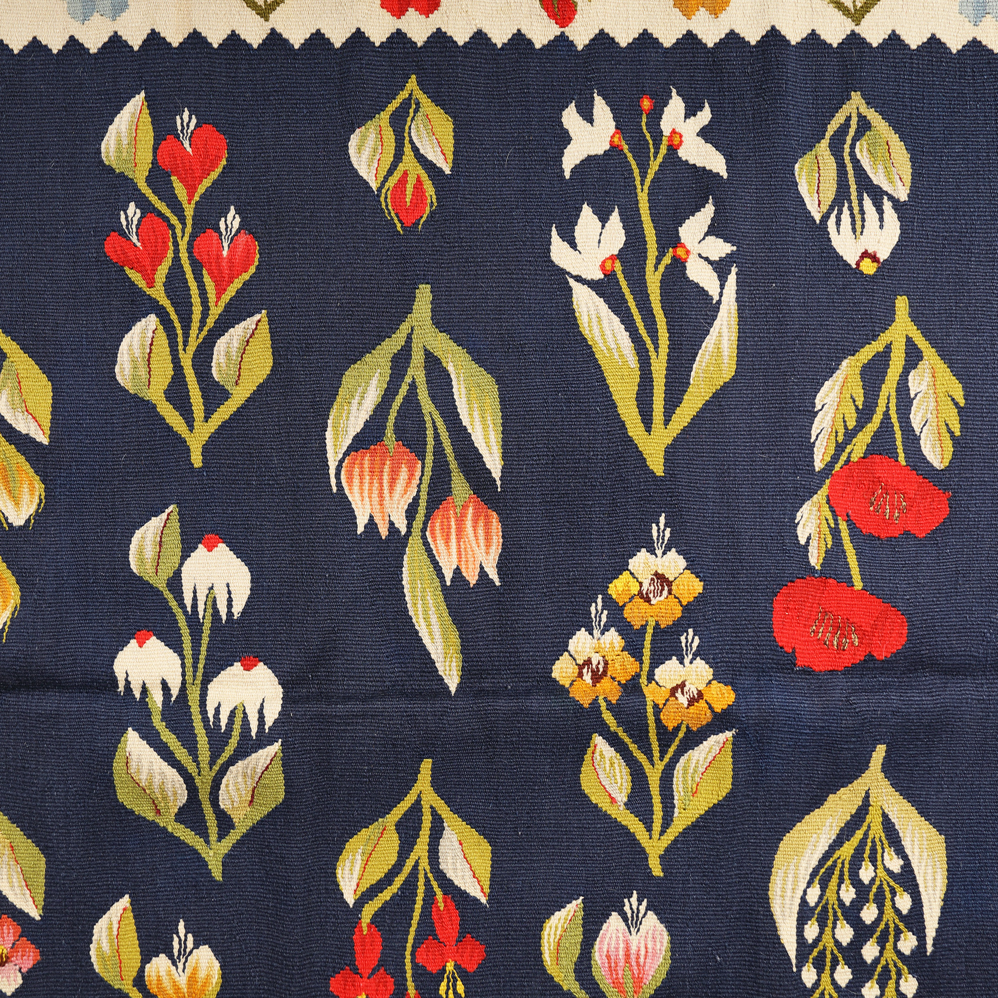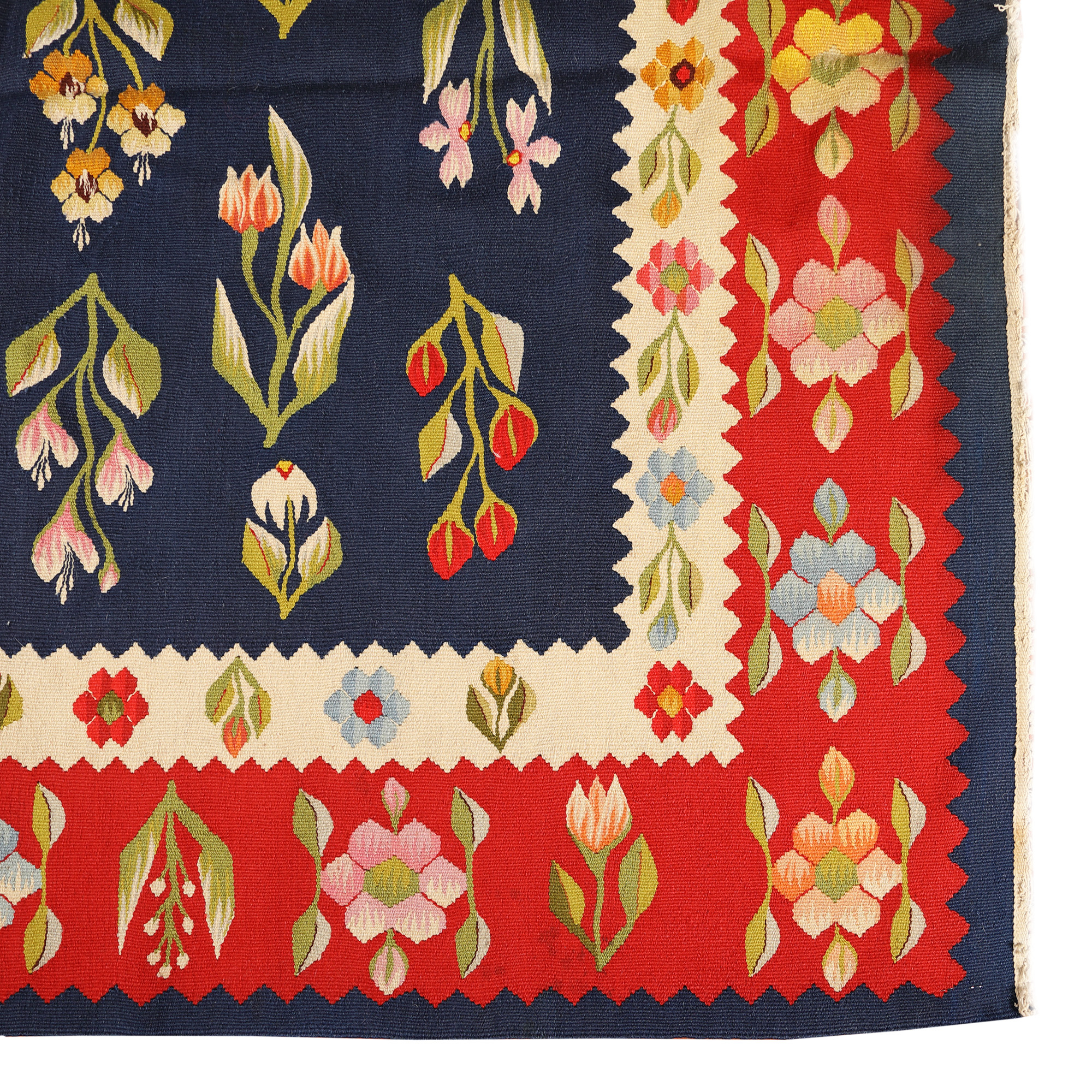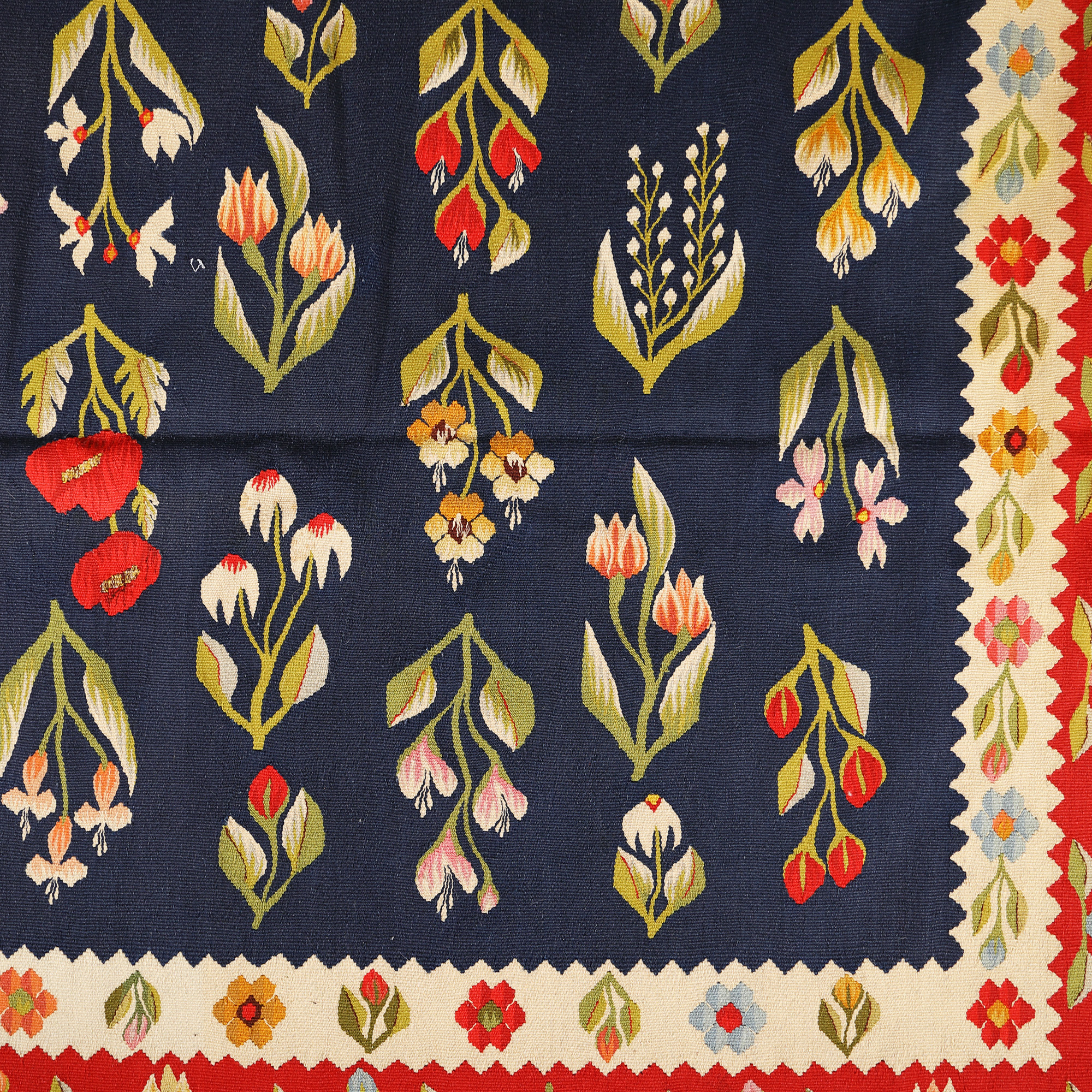 127. Covor oltenesc din lână, decorat cu maci și narcise, prima jumătate a sec. XX