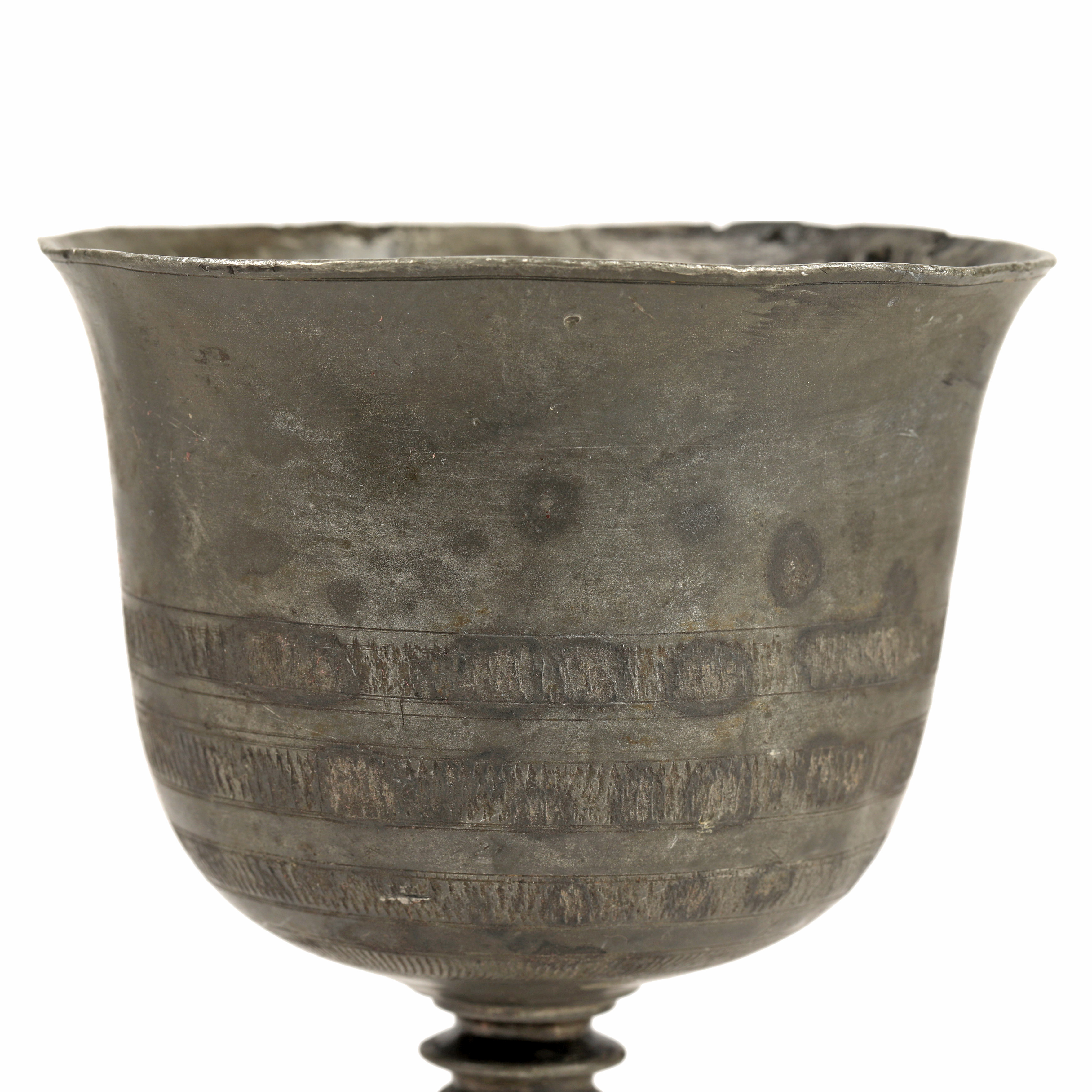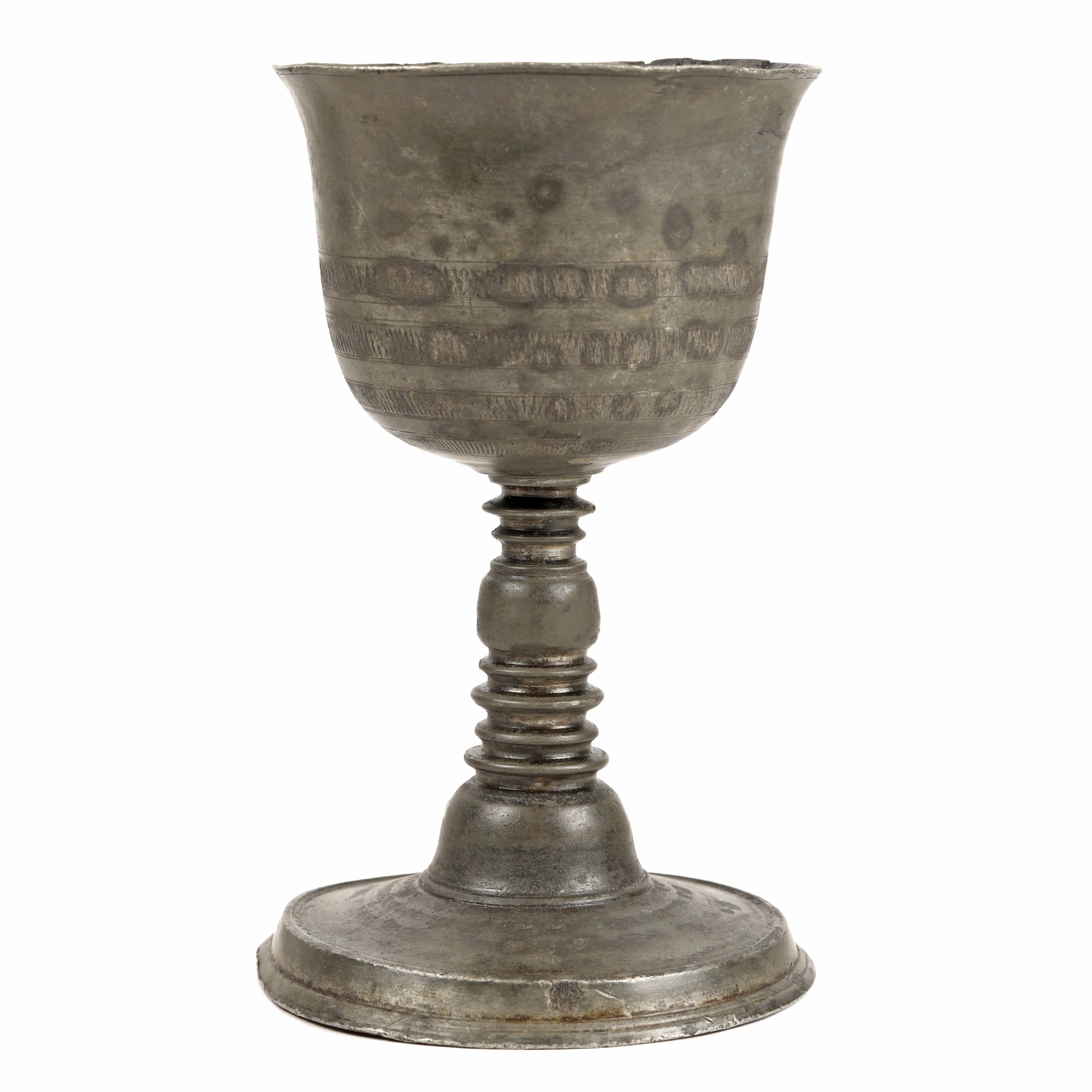 76. Cupă transilvăneană din cositor, purtând marcajul specific orașului Sighișoara, sec. XVII
