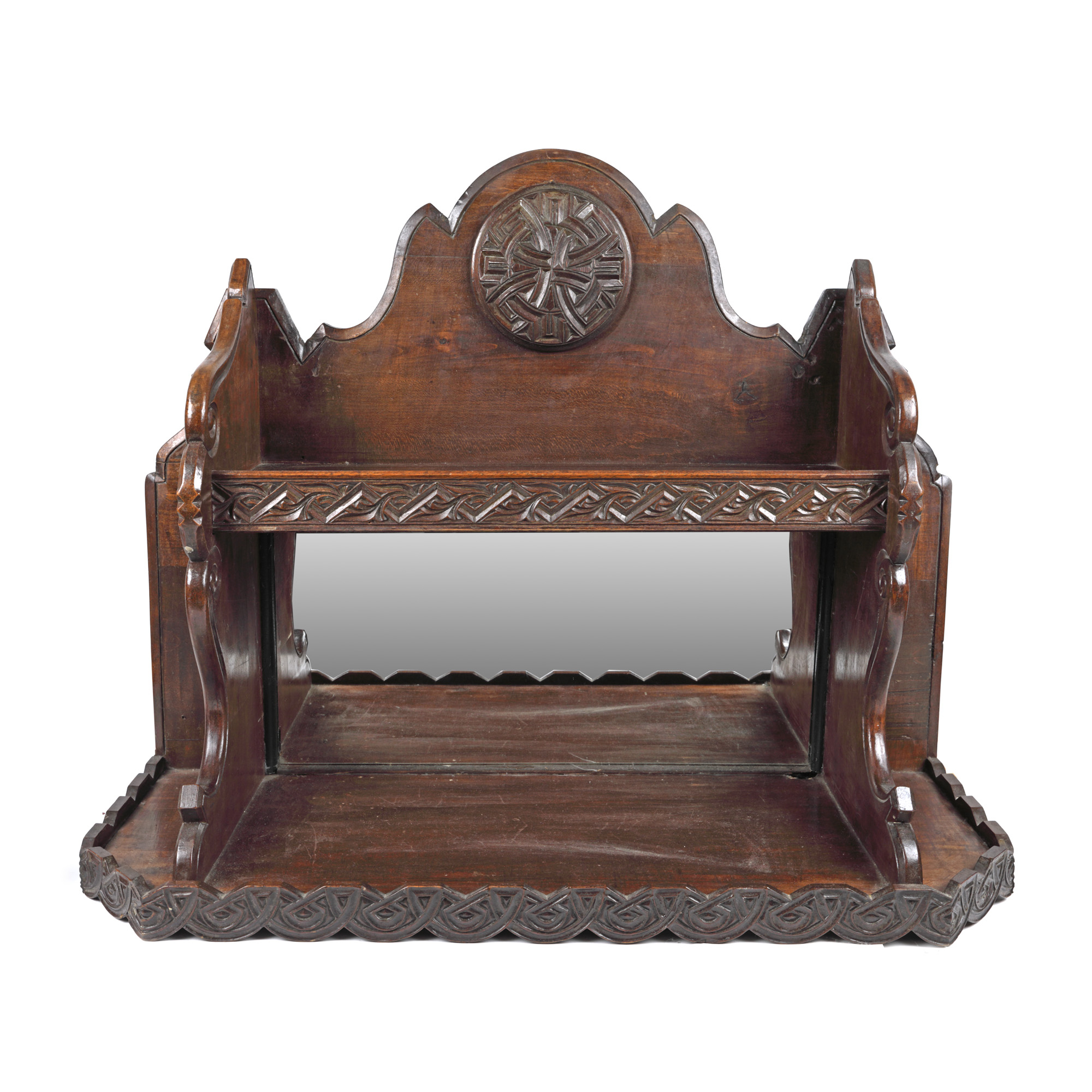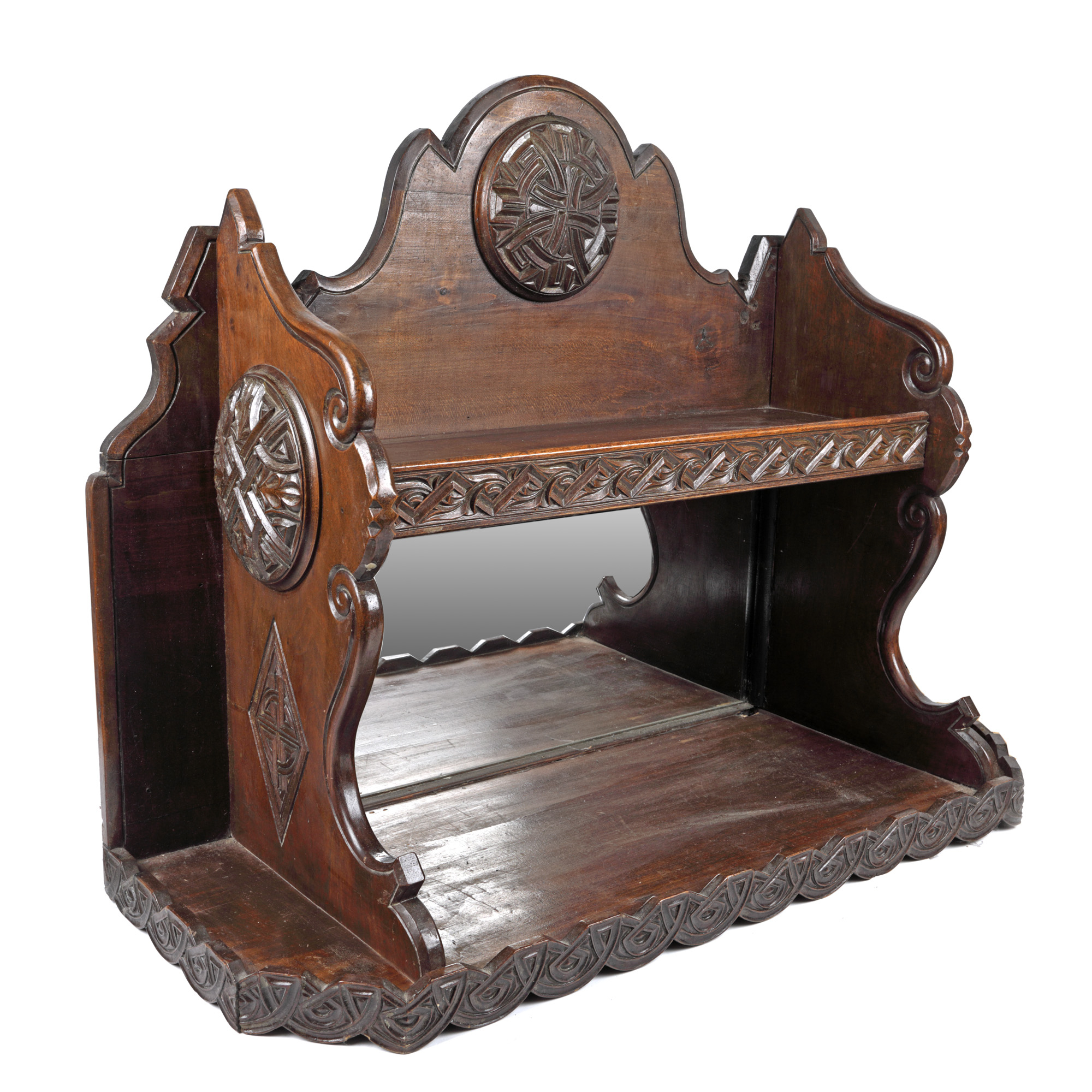 48. Etajeră din lemn, cu decor de inspirație Neo-Românească, mijlocul sec. XX