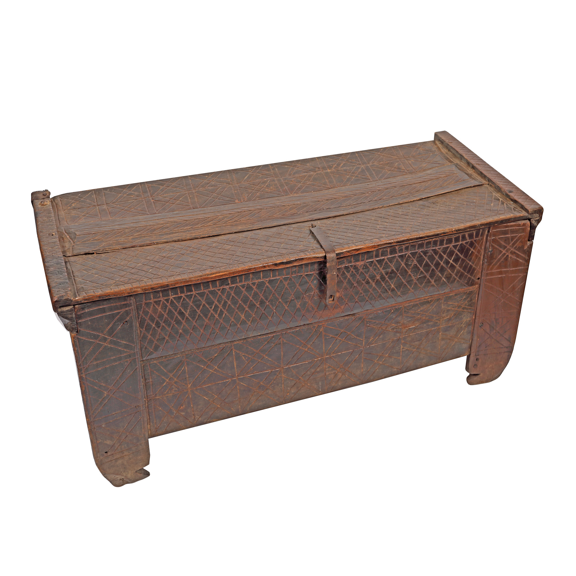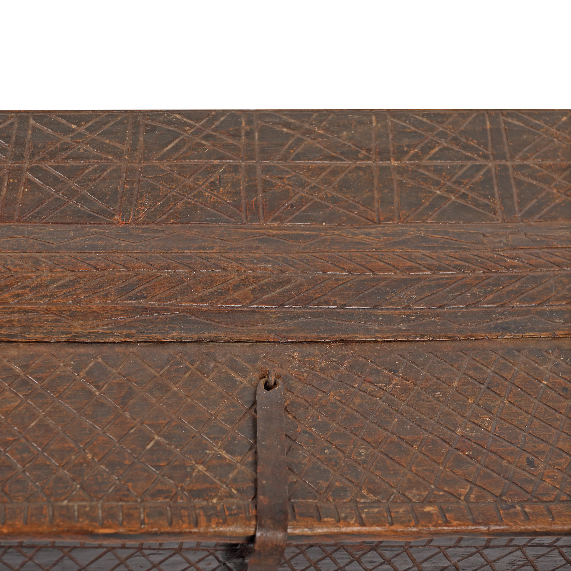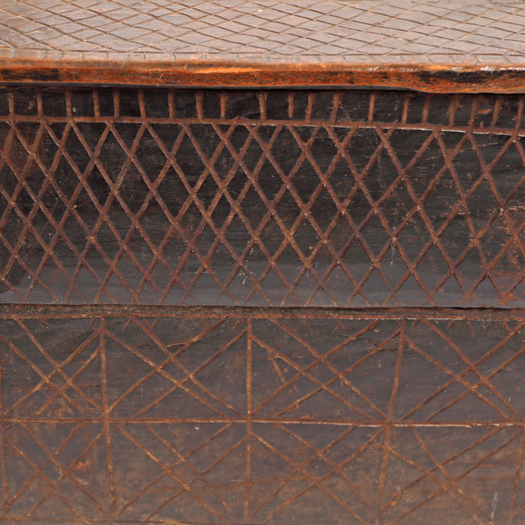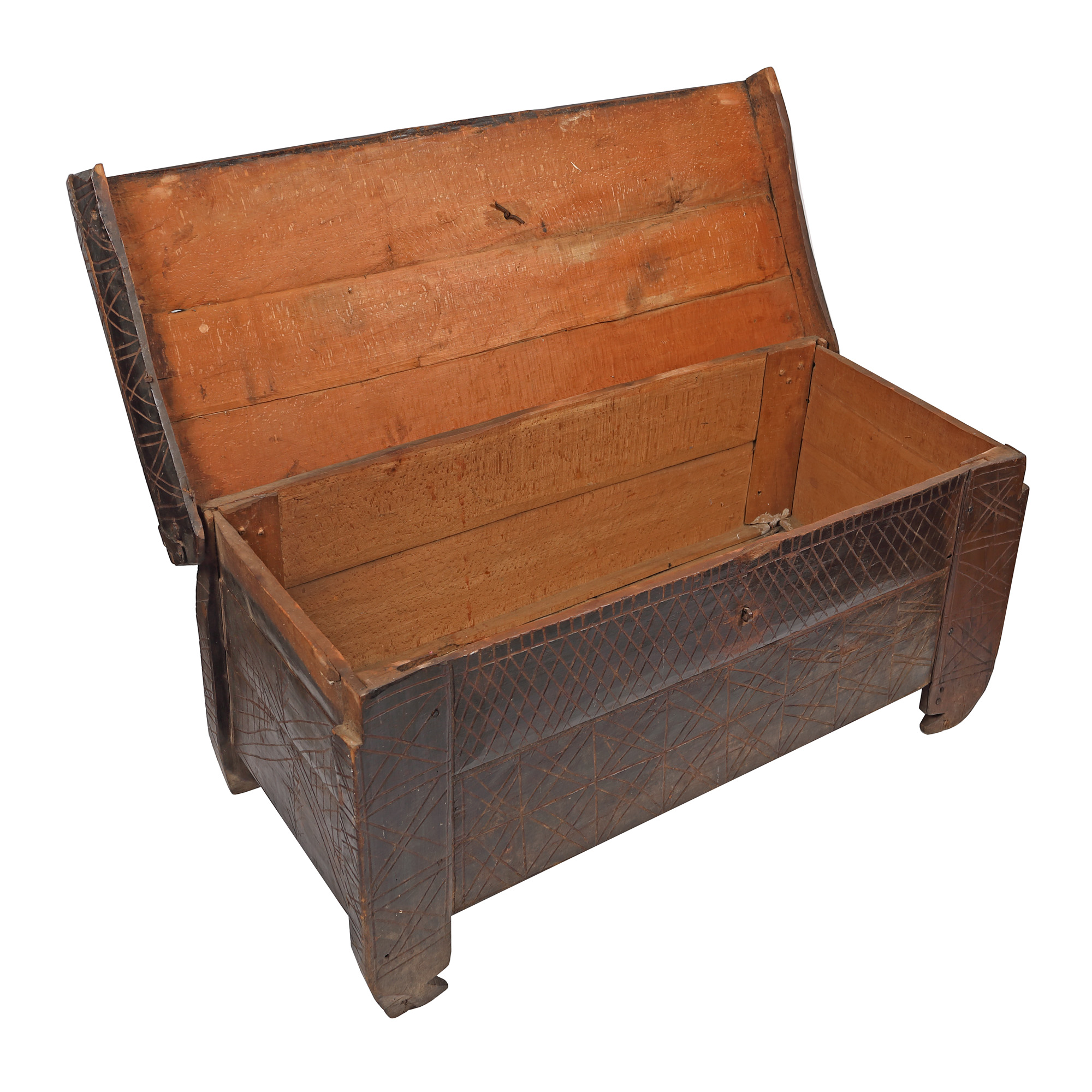 60. Ladă de zestre, decorată cu motive geometrice specifice, posibil Neamț, prima jumătate a sec. XX