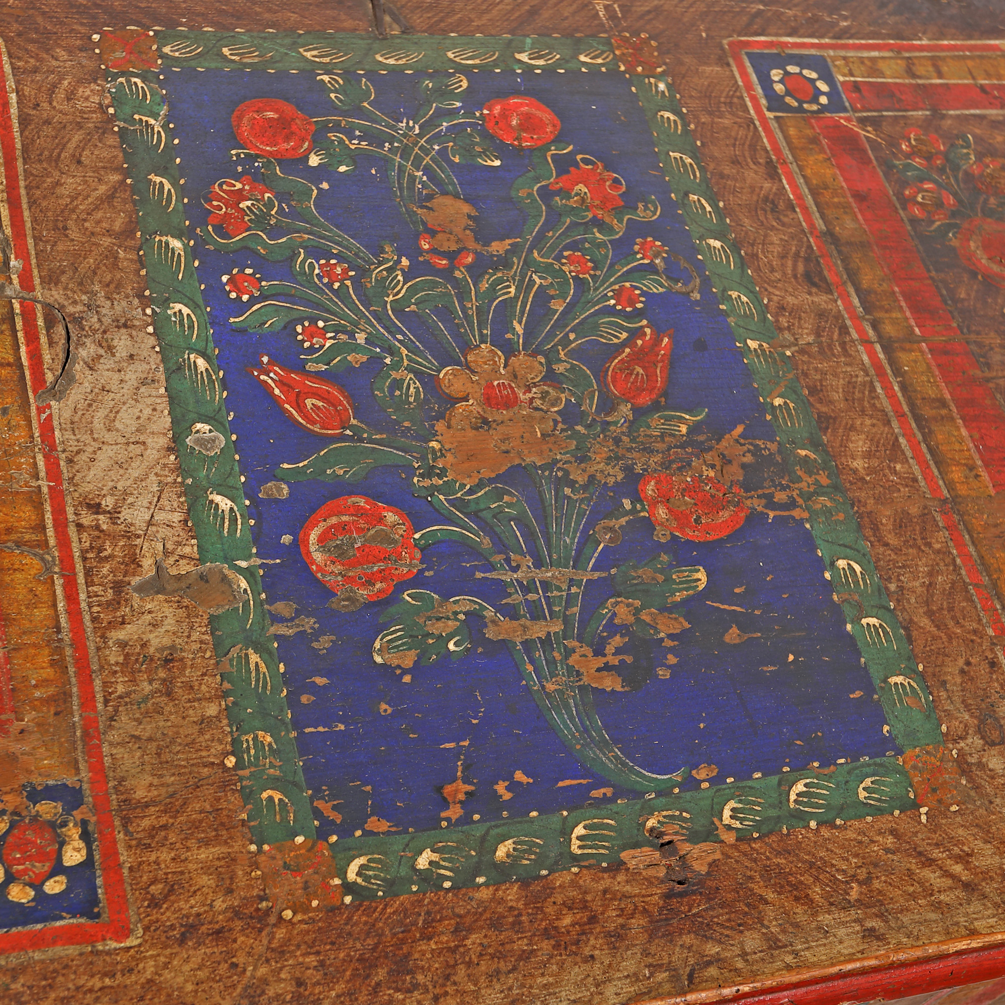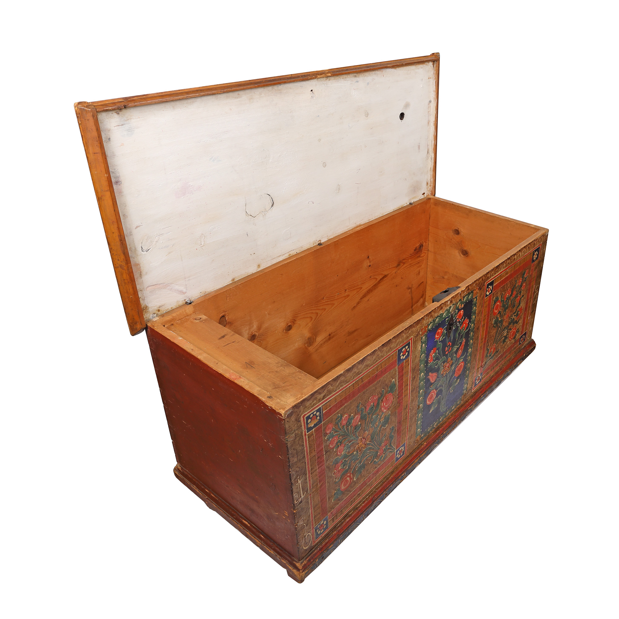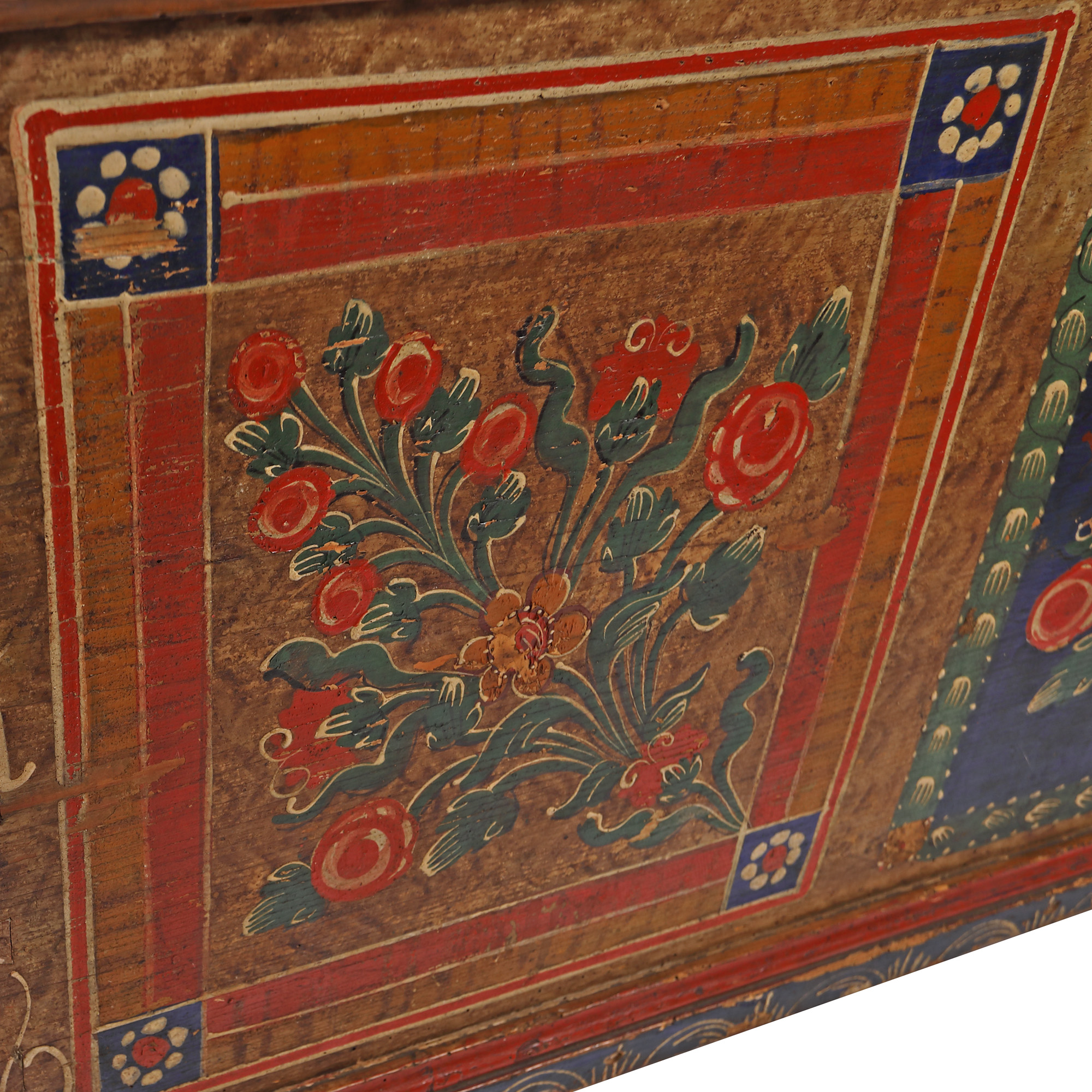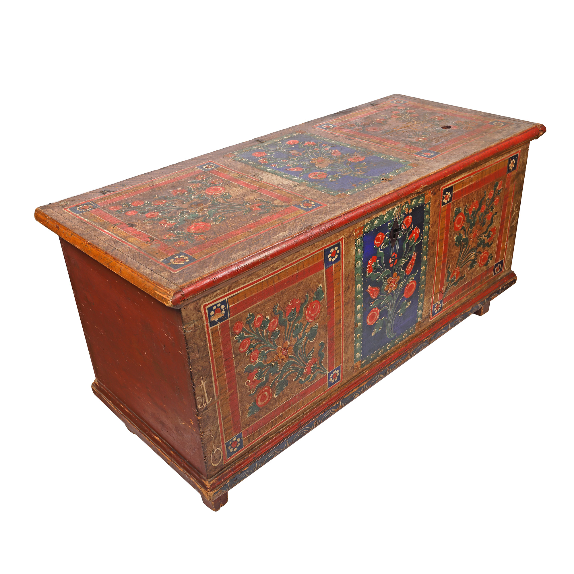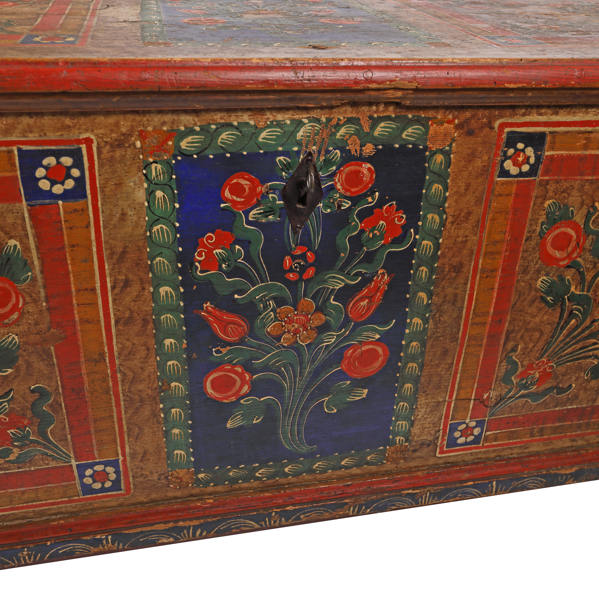 126. Ladă de zestre săsească, decorată cu buchete florale, probabil Mediaș, datată 1866