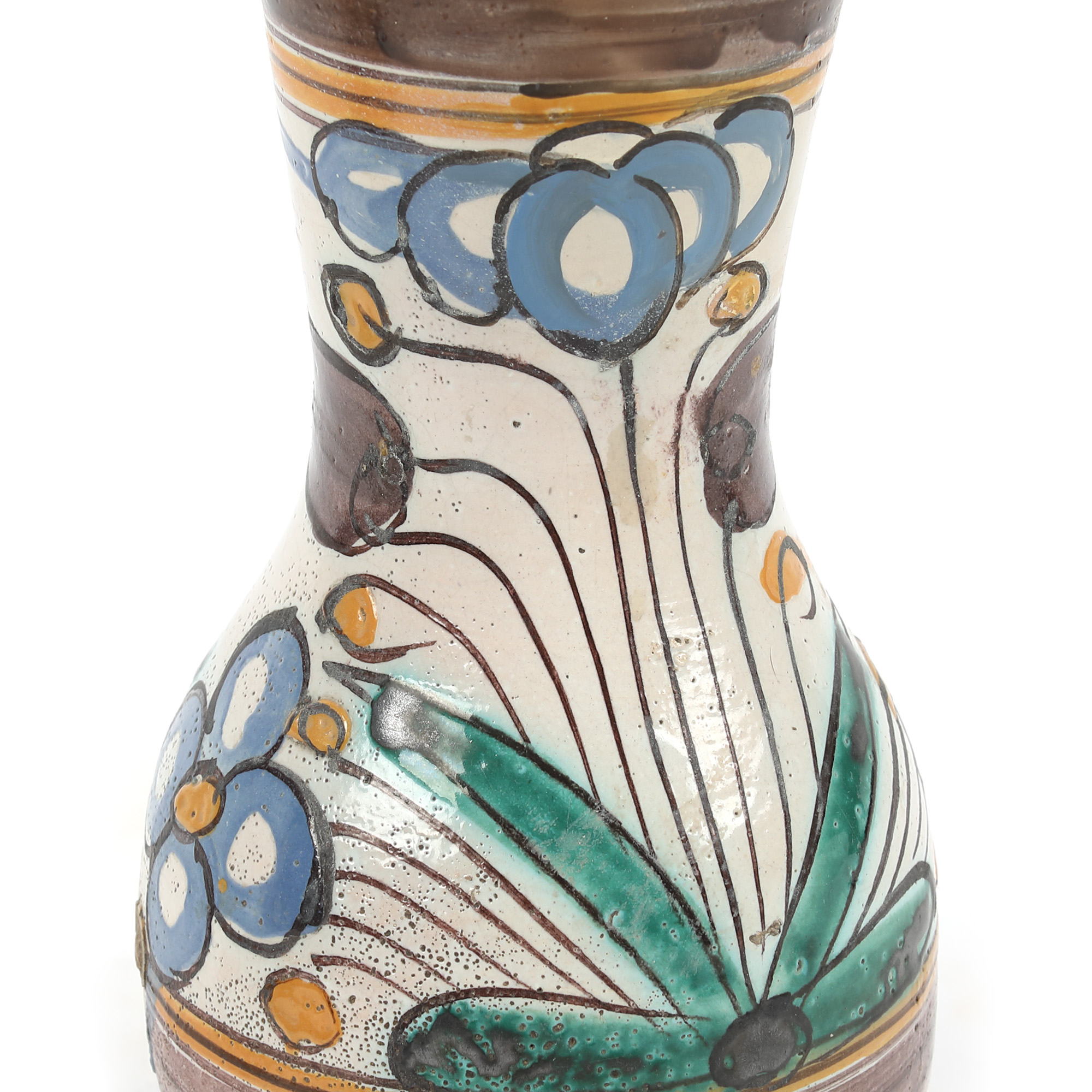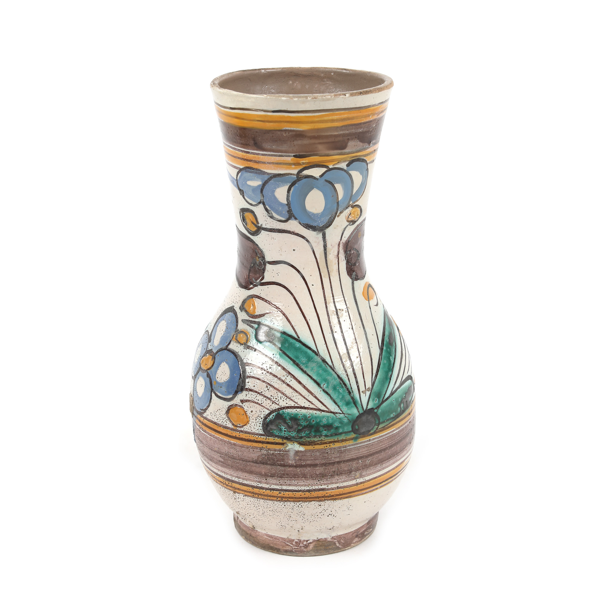 argilă comună, angobă, pigmenți minerali, smalț plombifer