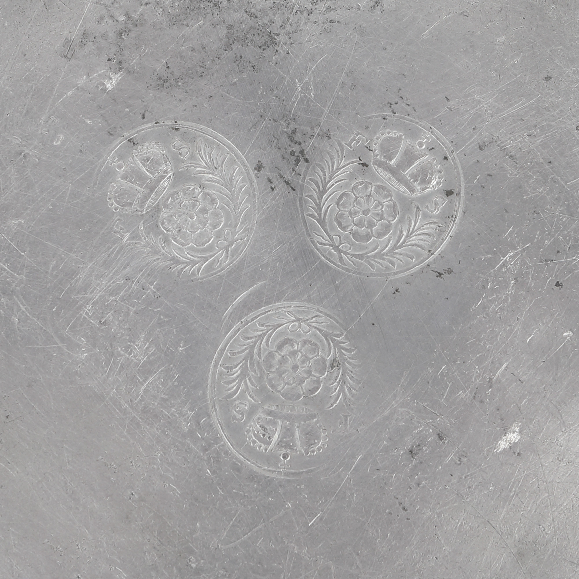 117. Lot format din două farfurii din cositor, atelier transilvănean, sec. XIX