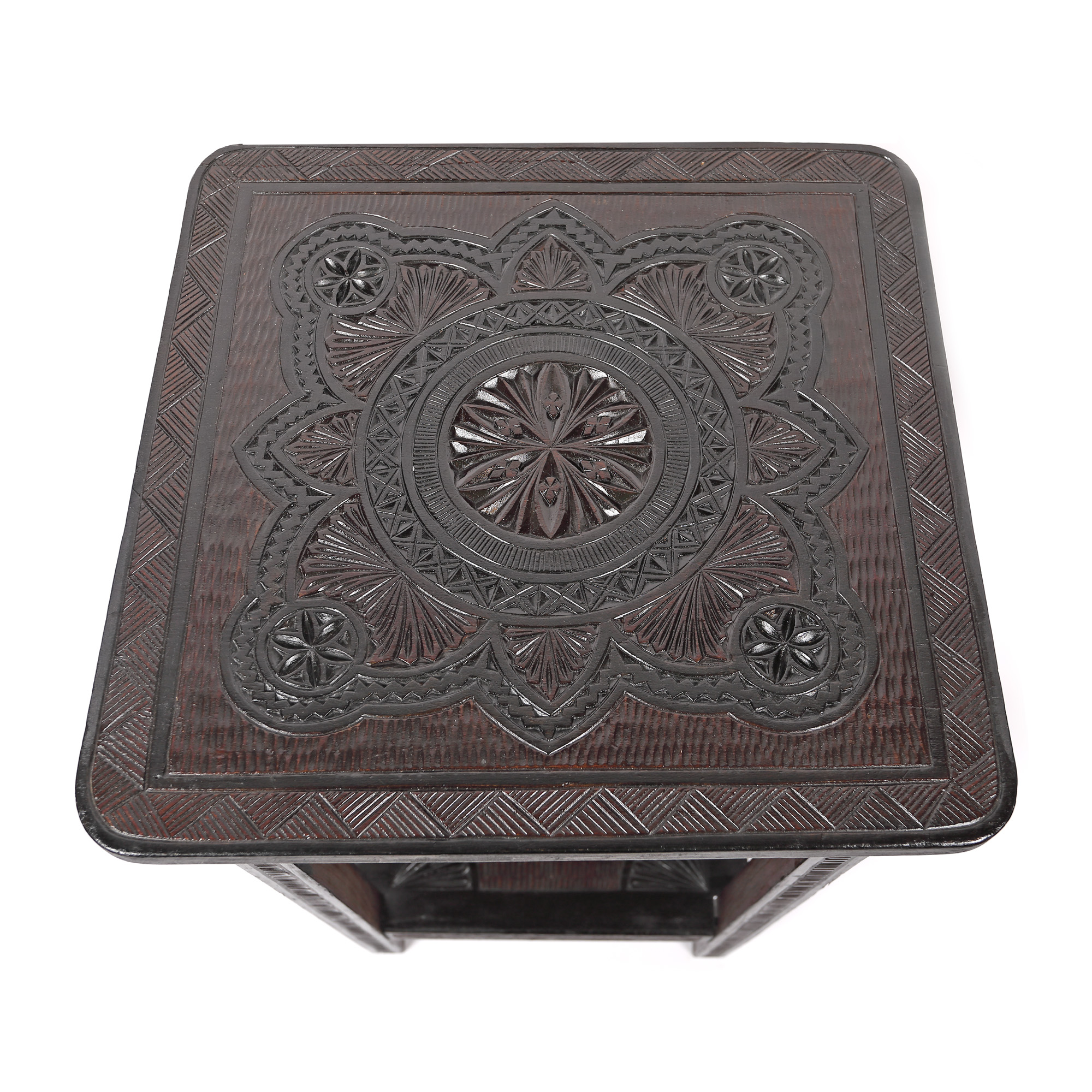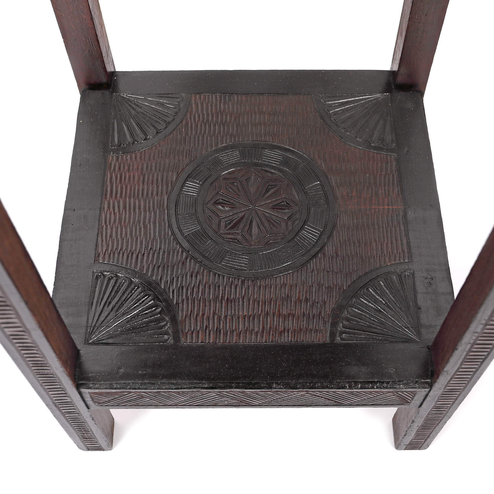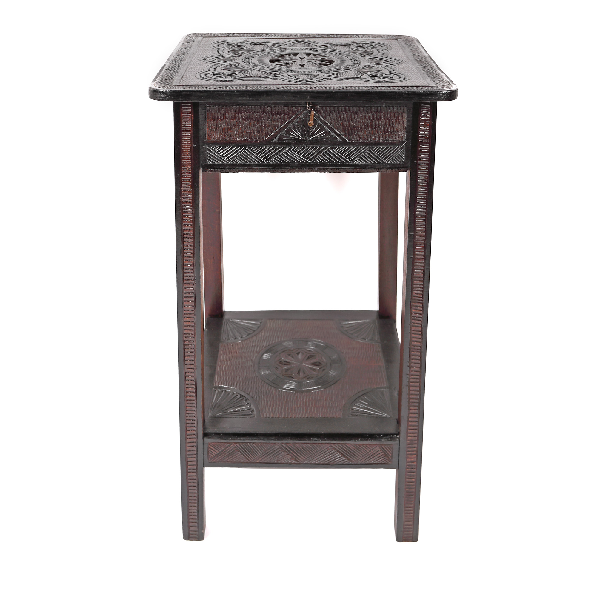 73. Măsuță de cusut, decorată în stil Neo-Româneasc, din lemn de tei, prima jumătate a sec. XX