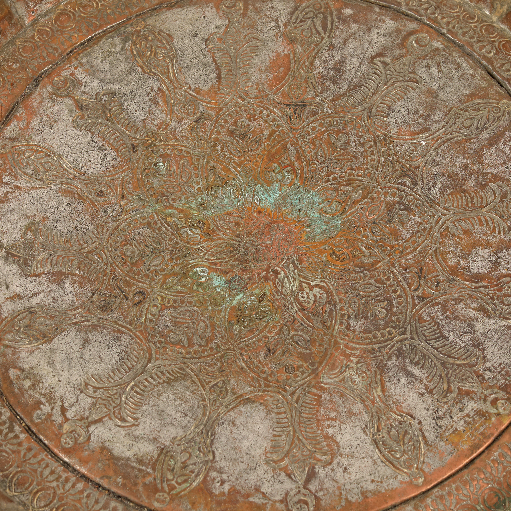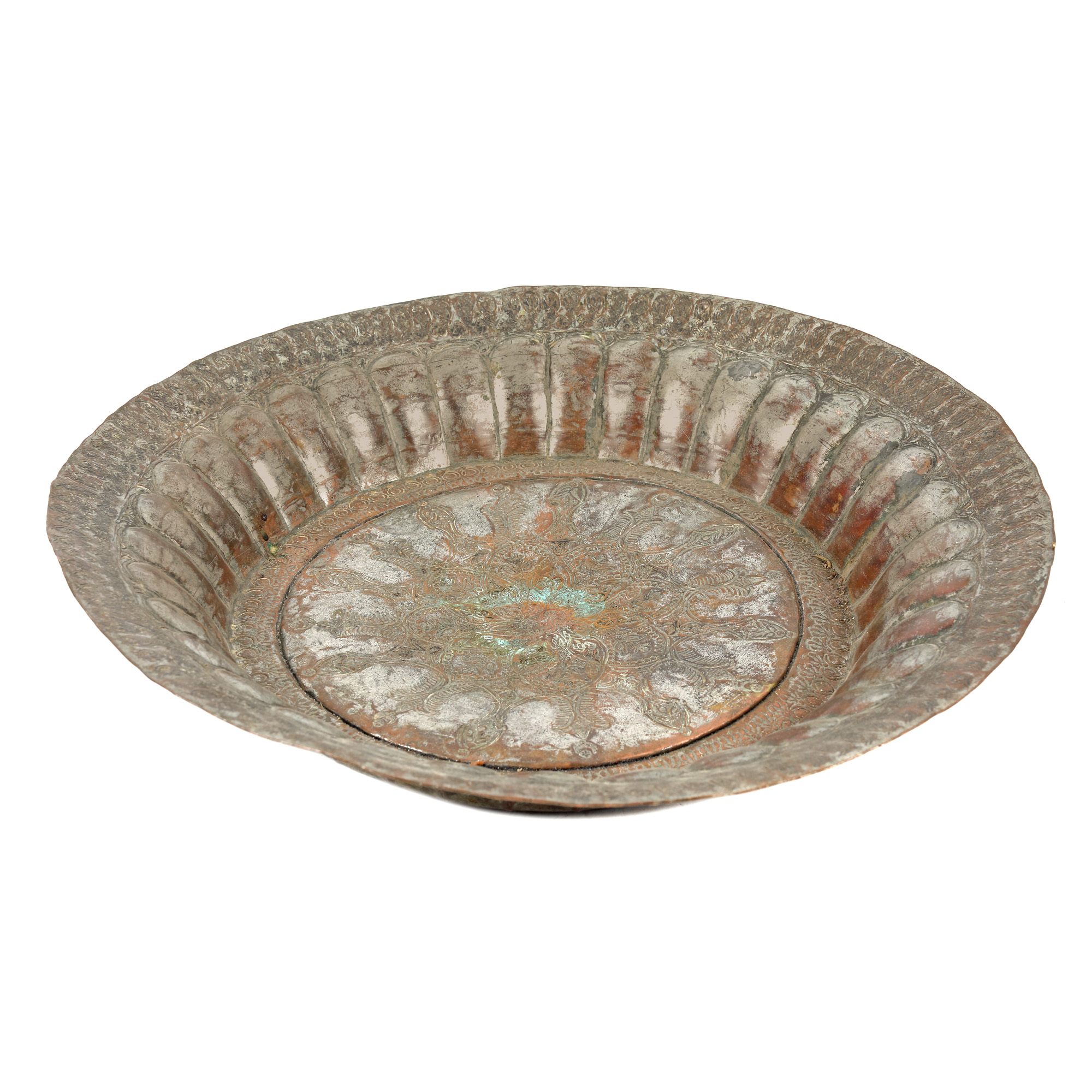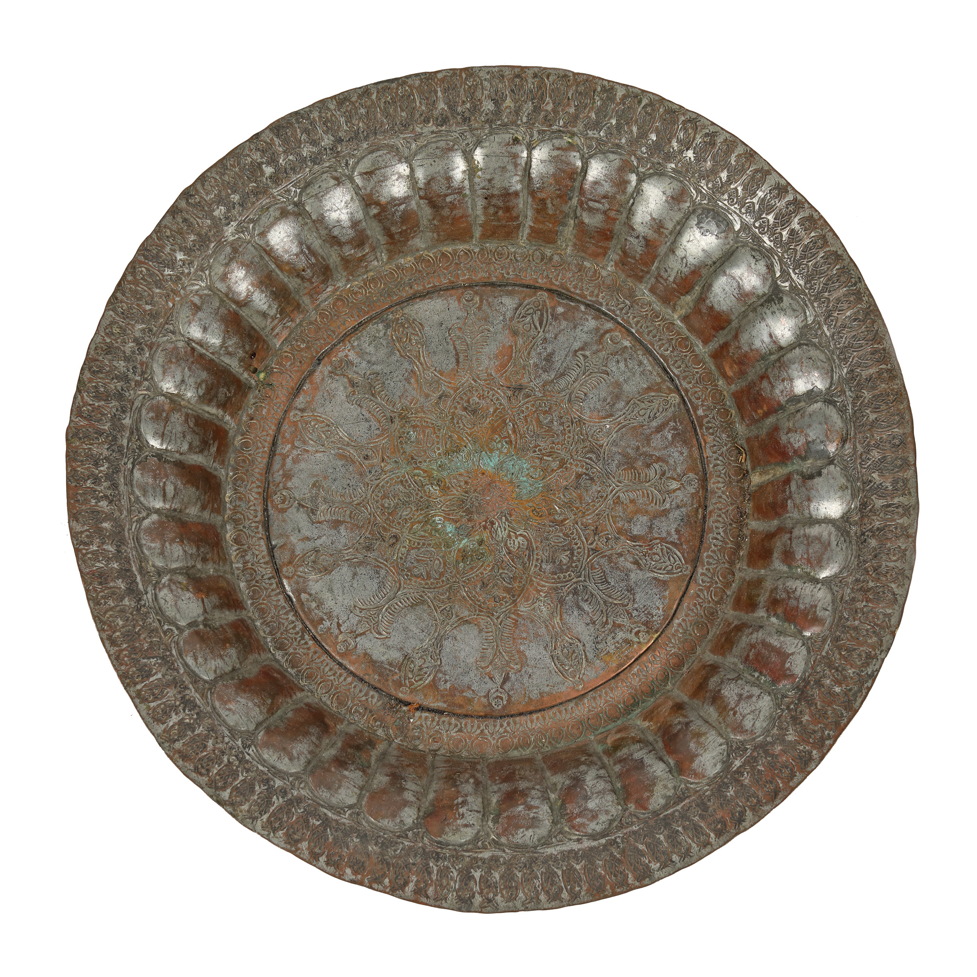 106. Platou din cupru argintat, din insula Ada Kaleh, sfârșitul sec. XVIII, provine din colecția profesorului Vasile Drăguț