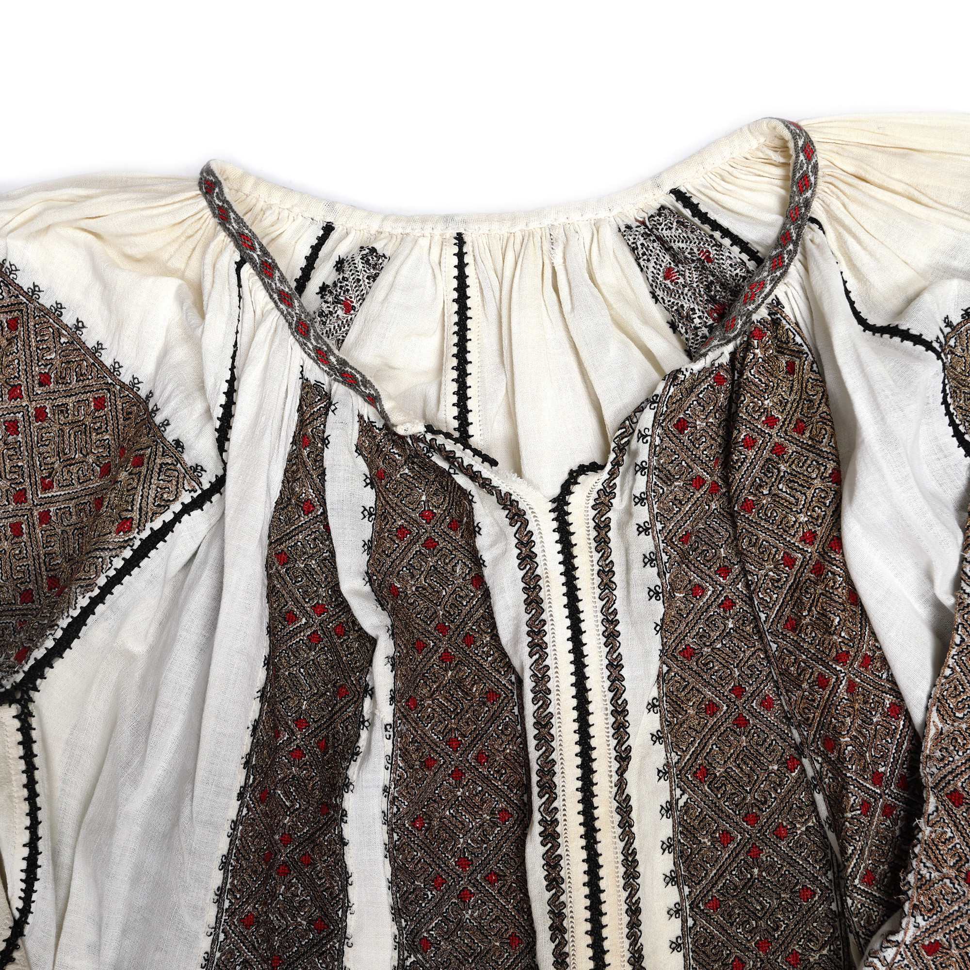 70. Superb costum popular format din camașă brodată cu fir metalic și două oprege cu fir metalic, centrul Muscel, perioada interbelică