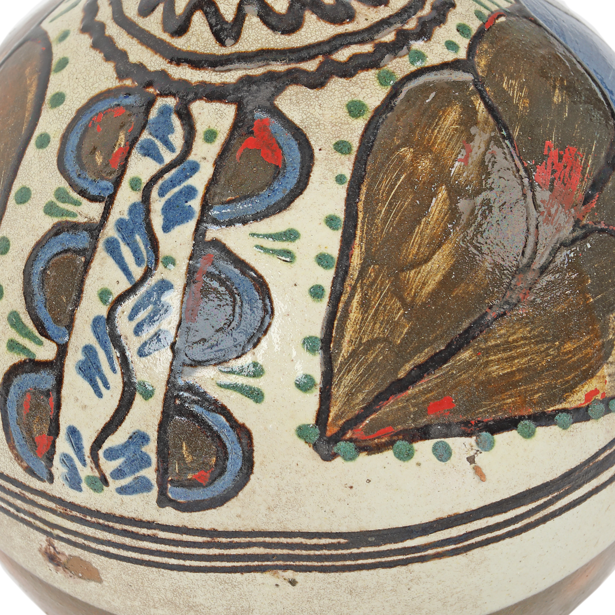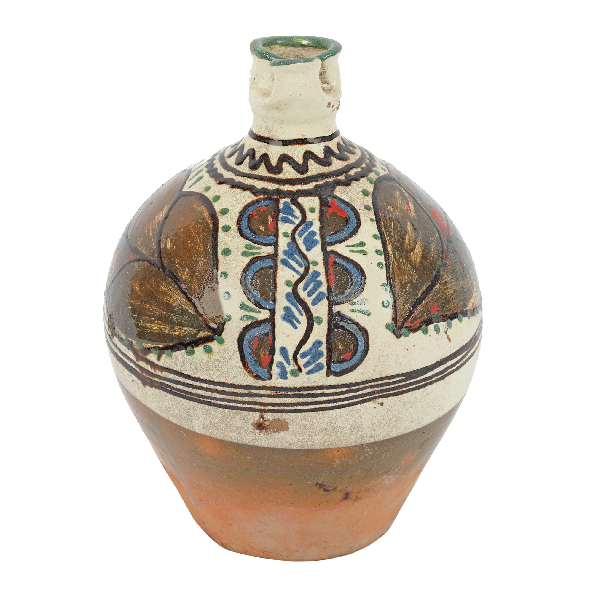 argilă comună, angobă, pigmenți minerali, smalț plombifer