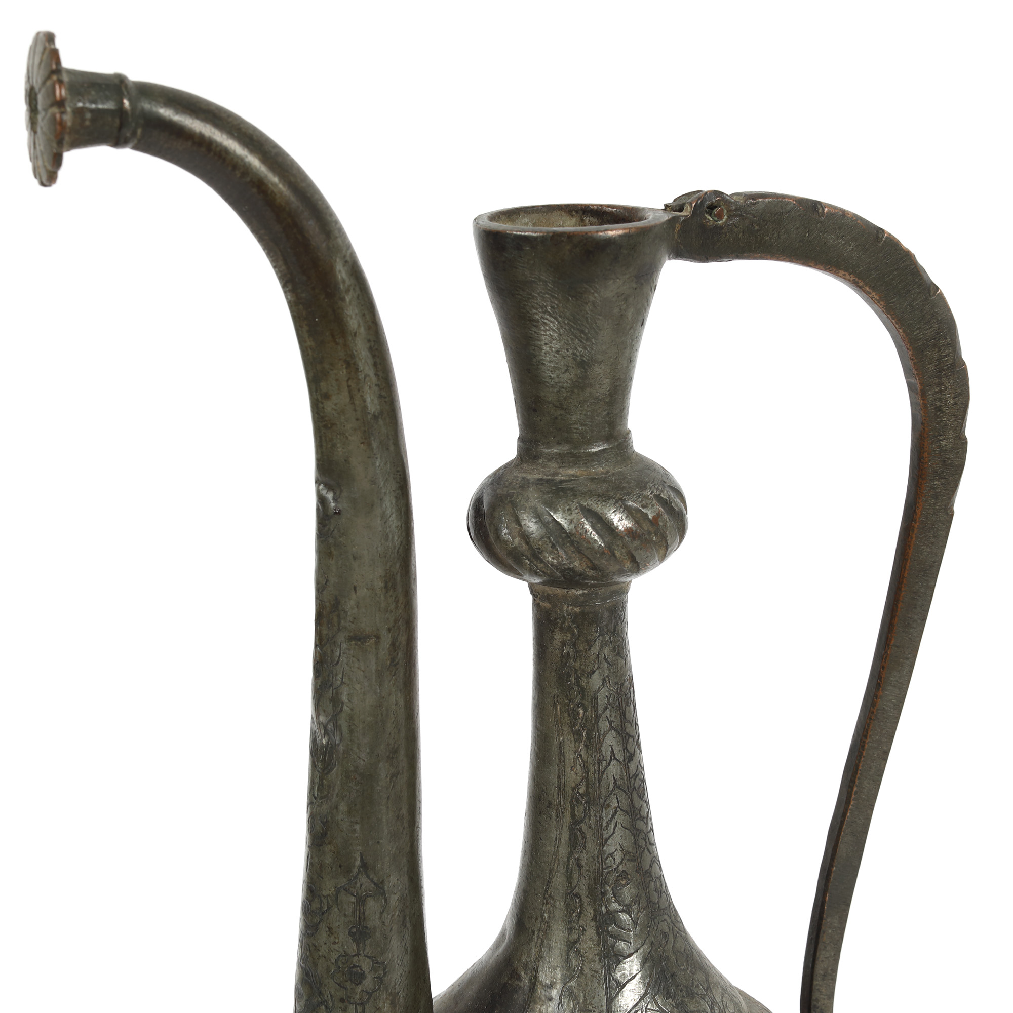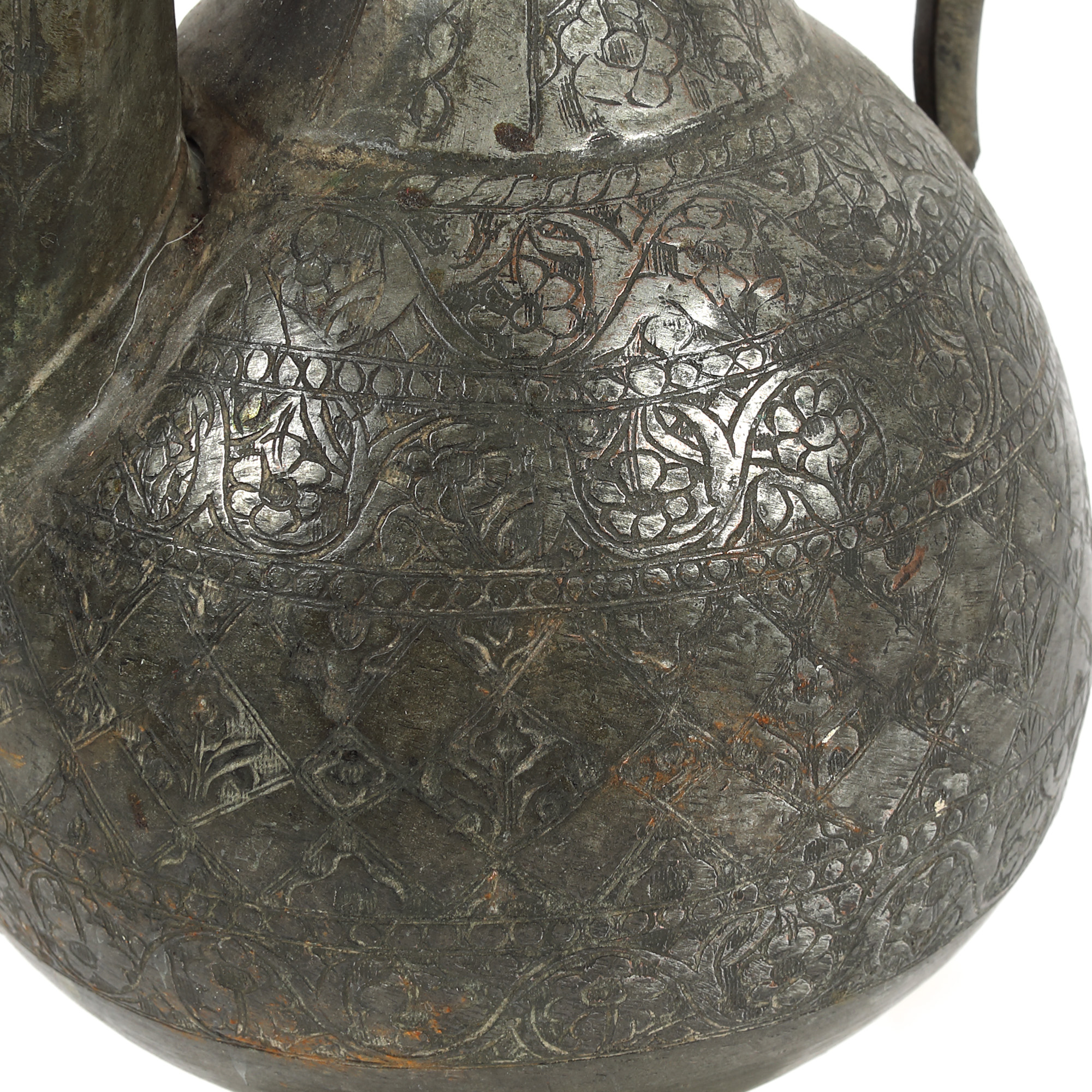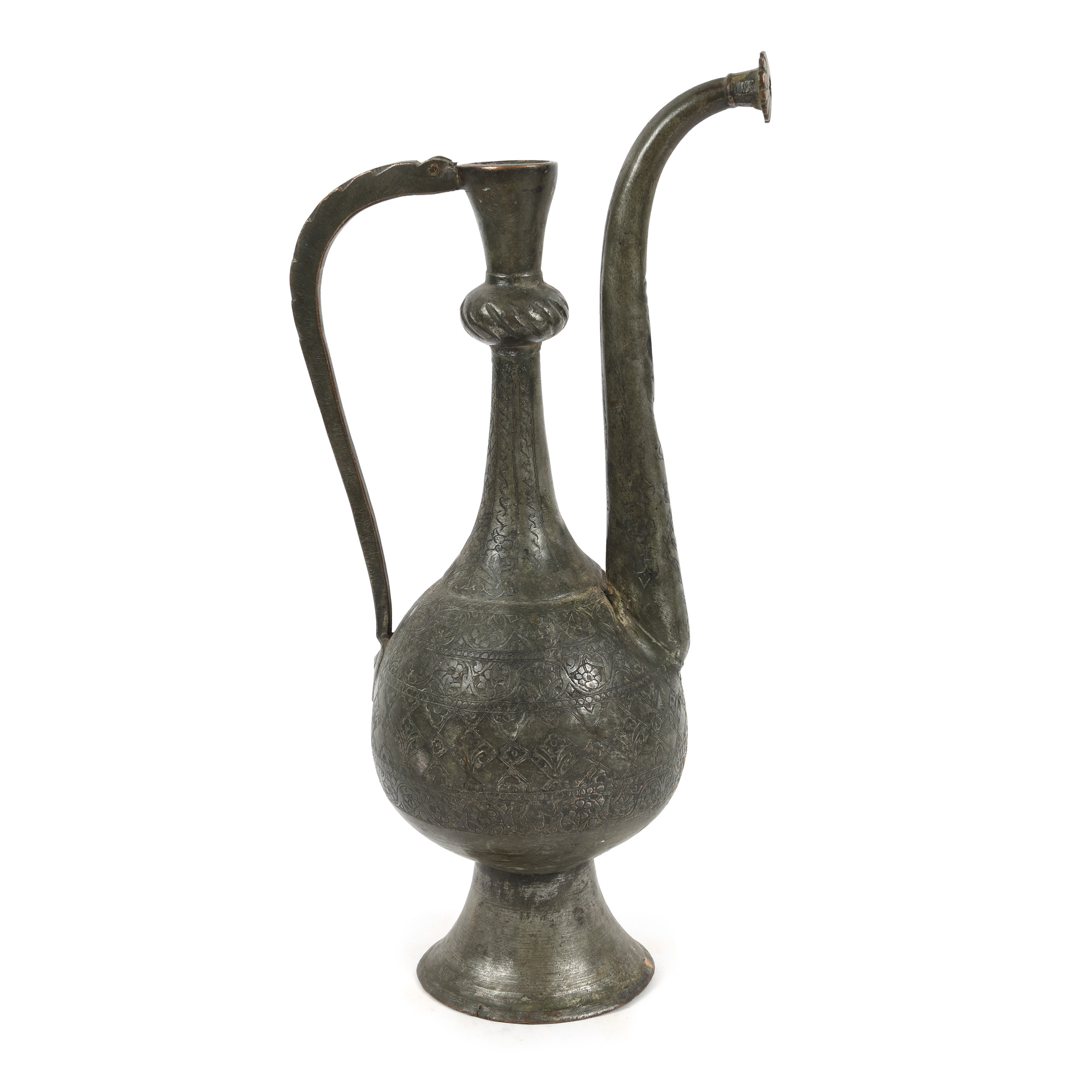 110. Vas dobrogean pentru apă, de factură otomană, din cupru argintat, decorat cu arabescuri și motive florale, sec. XIX