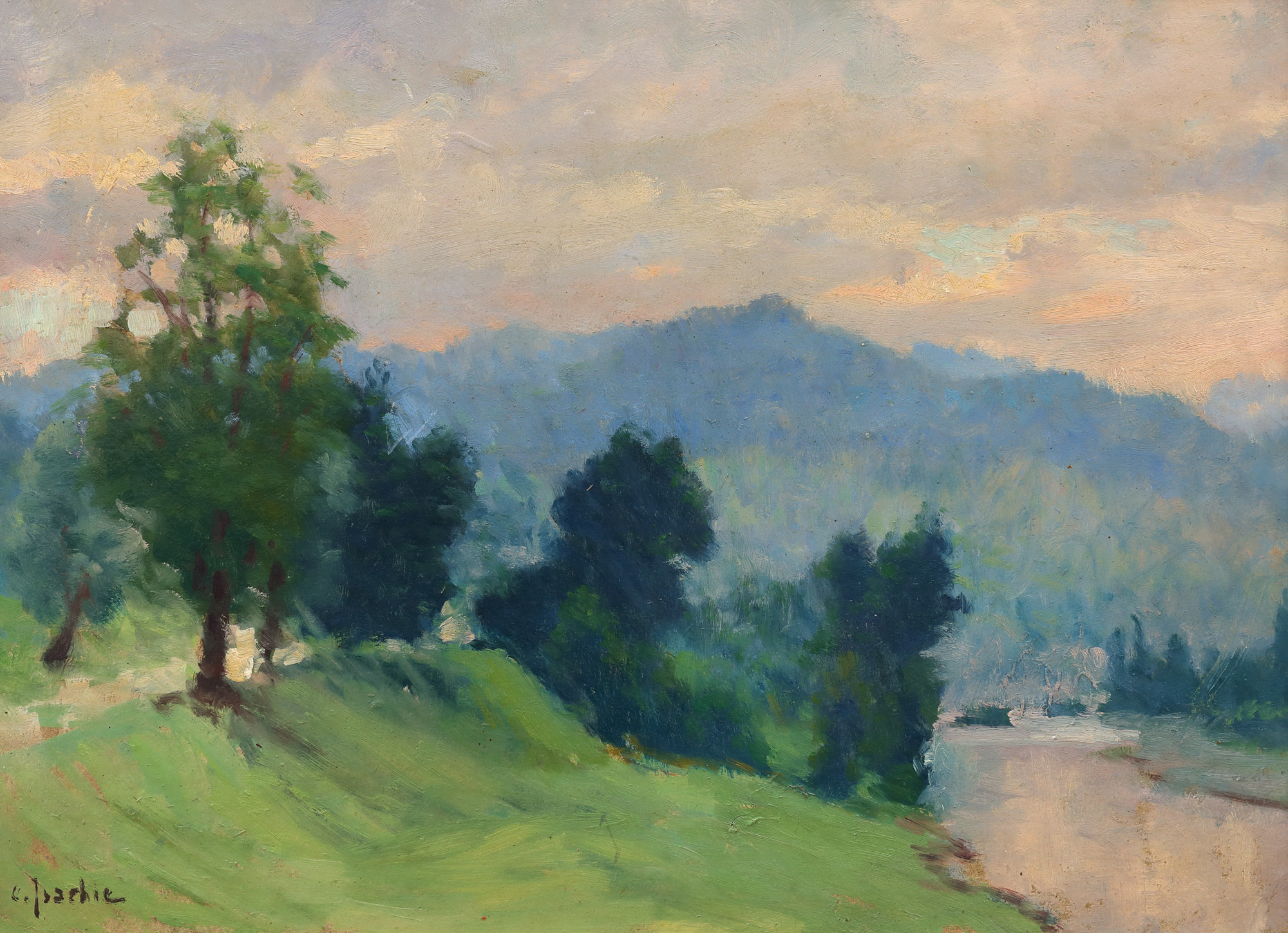 semnat stânga jos, cu brun, ”C. Isachie”
