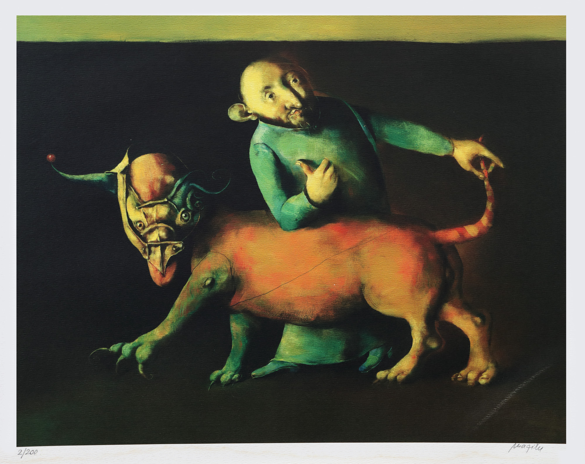 semnat dreapta jos, sub cadru, în creion, ”Mazilu”; numerotat stânga jos, sub cadru, în creion, ”2/200”