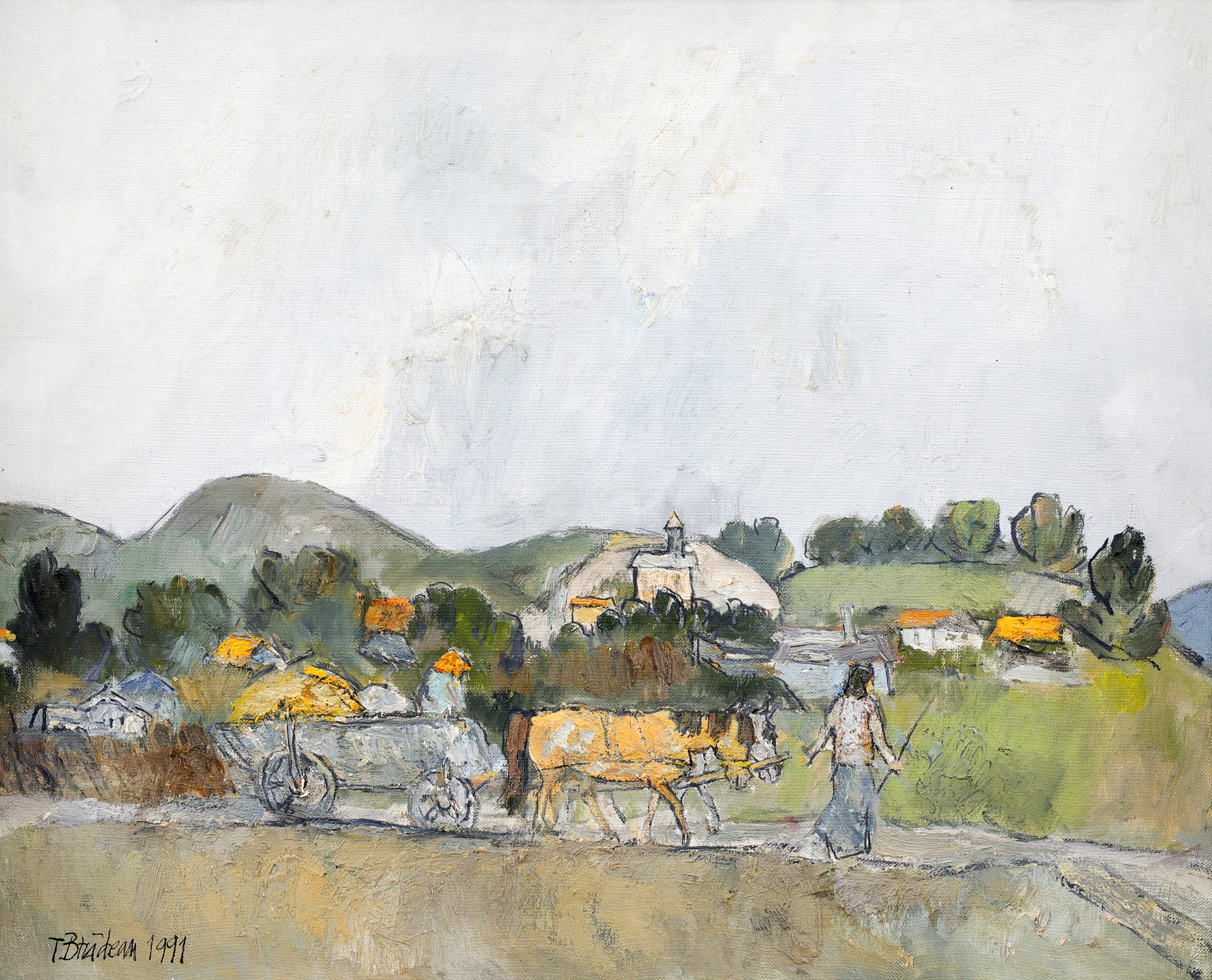 semnat și datat stânga jos, cu negru, ”T. Brădean, 1991”