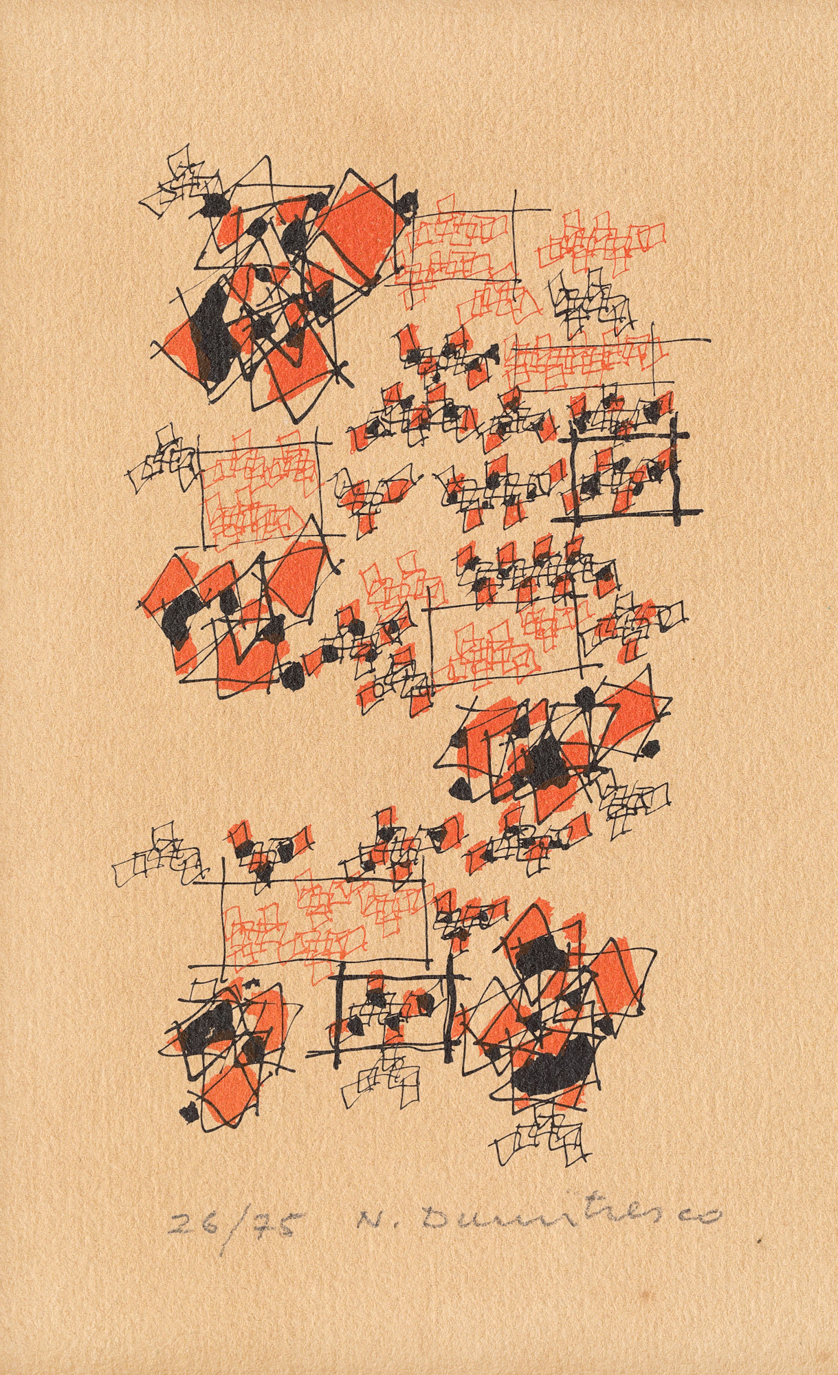 semnat și numerotat central jos, în creion, ”N. Dumitresco, 26/75”