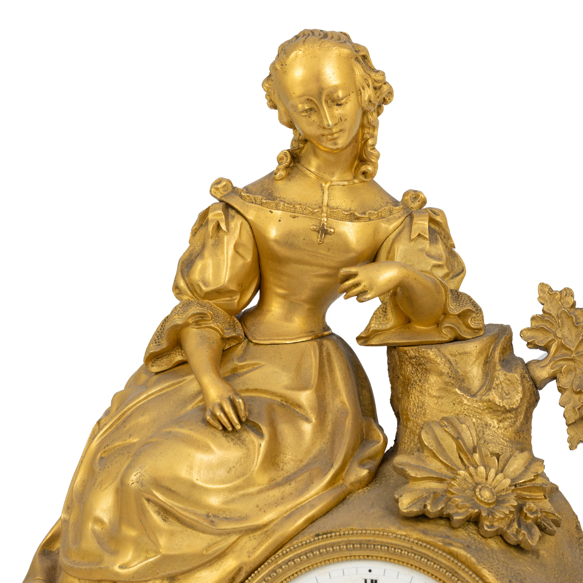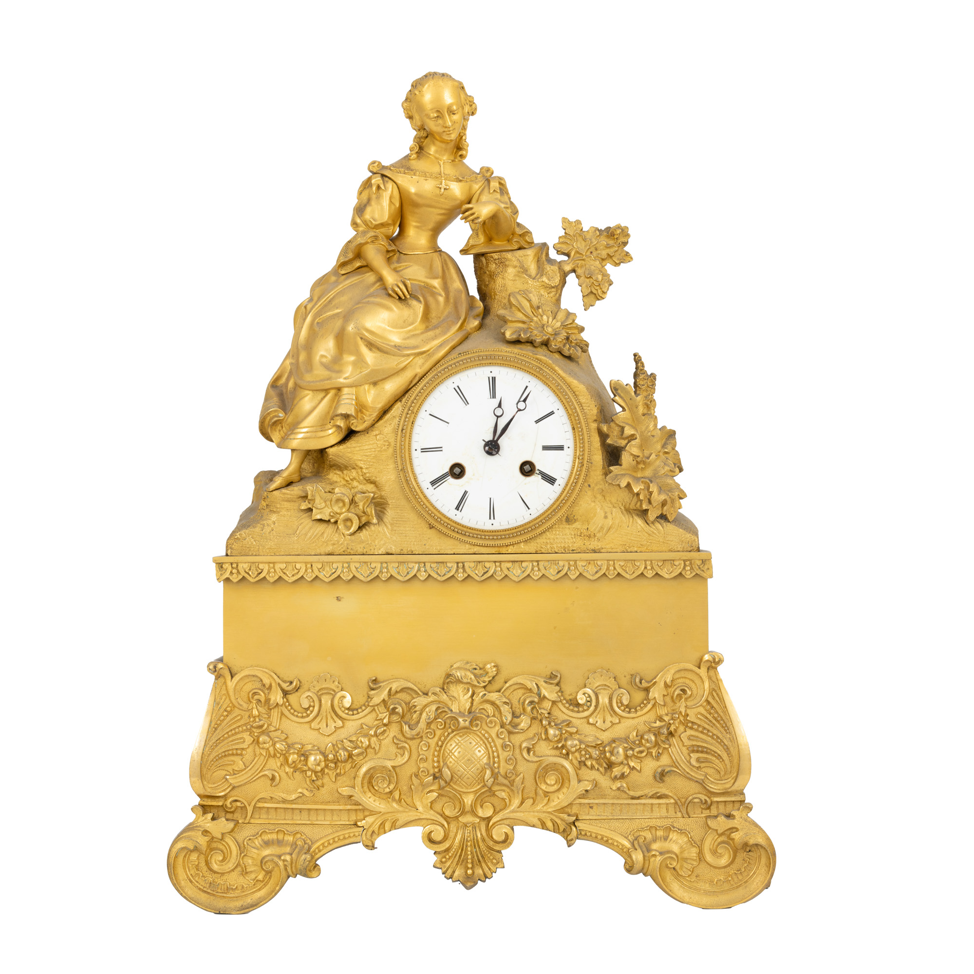 53. Ceas de șemineu, în manieră Neo-Rococo, din bronz doré, ornat cu siluetă feminină, cca. 1870