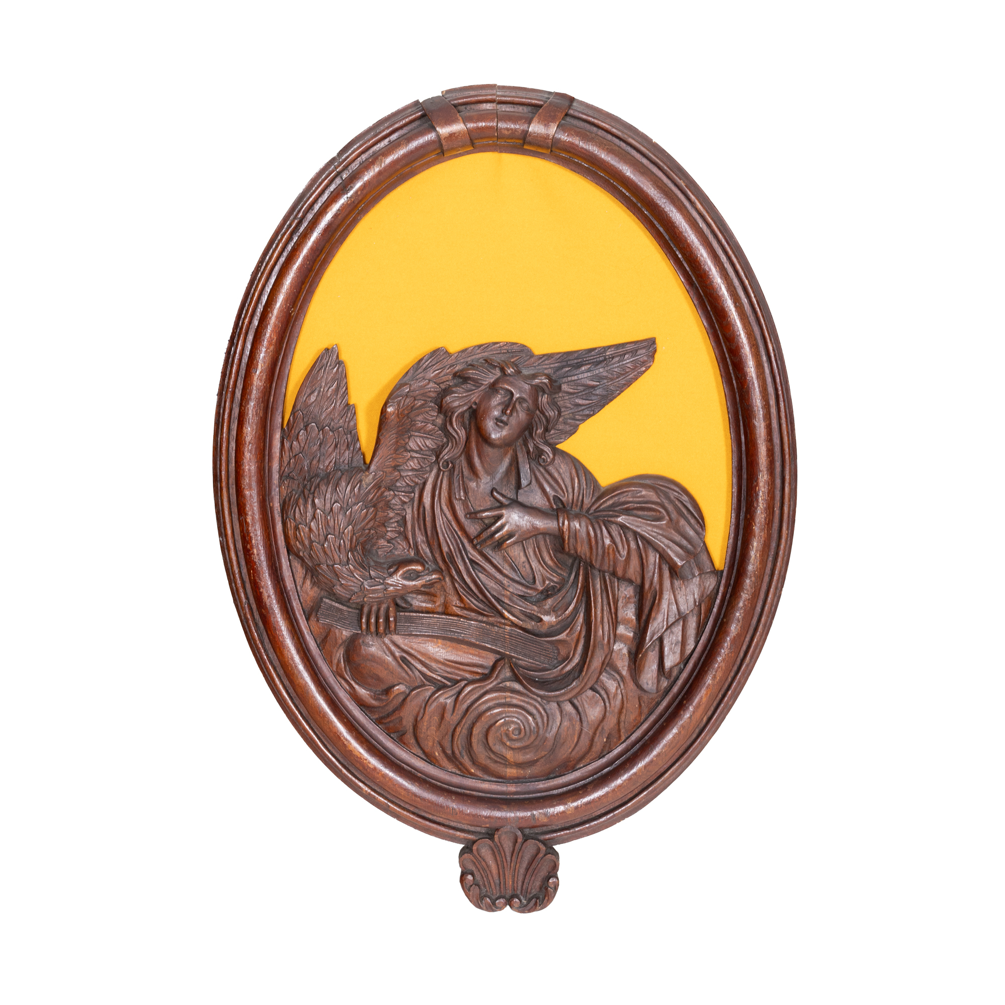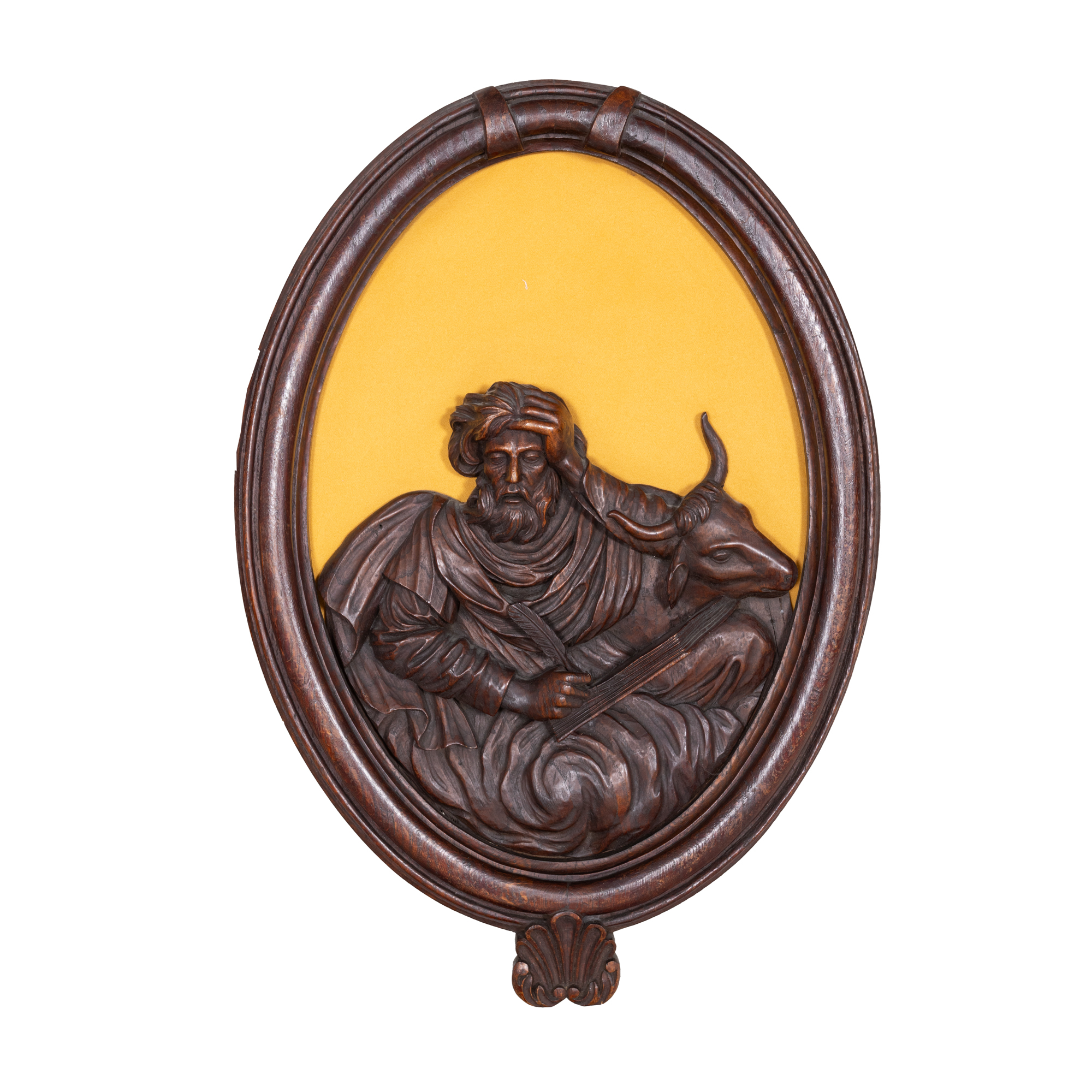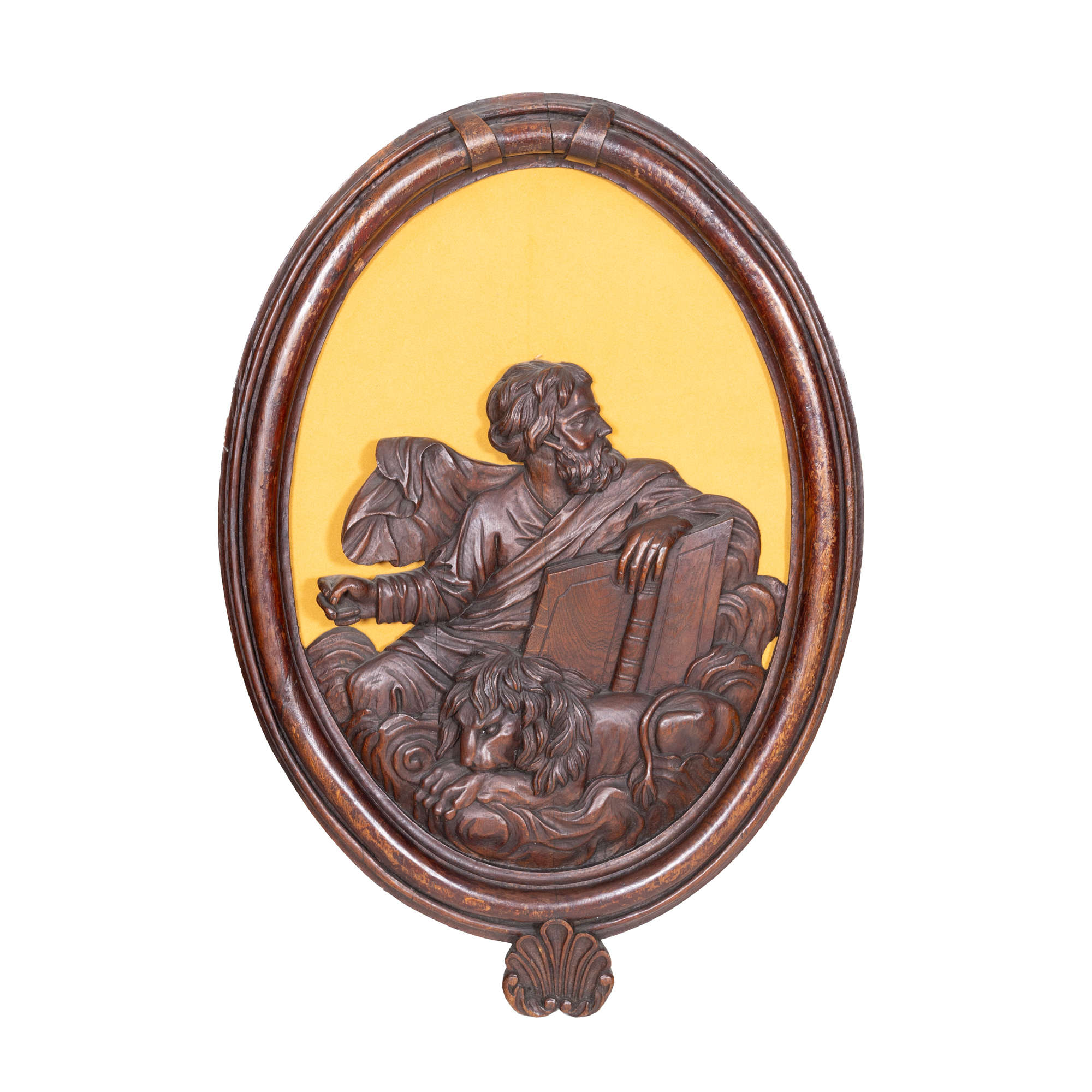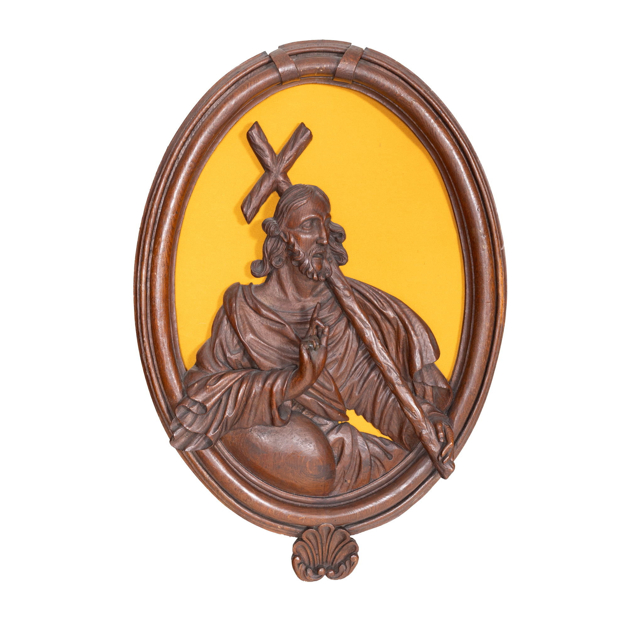 5. Set de patru sculpturi parietale din lemn, înfățisându-i pe Iisus, Marcu, Ioan și Luca