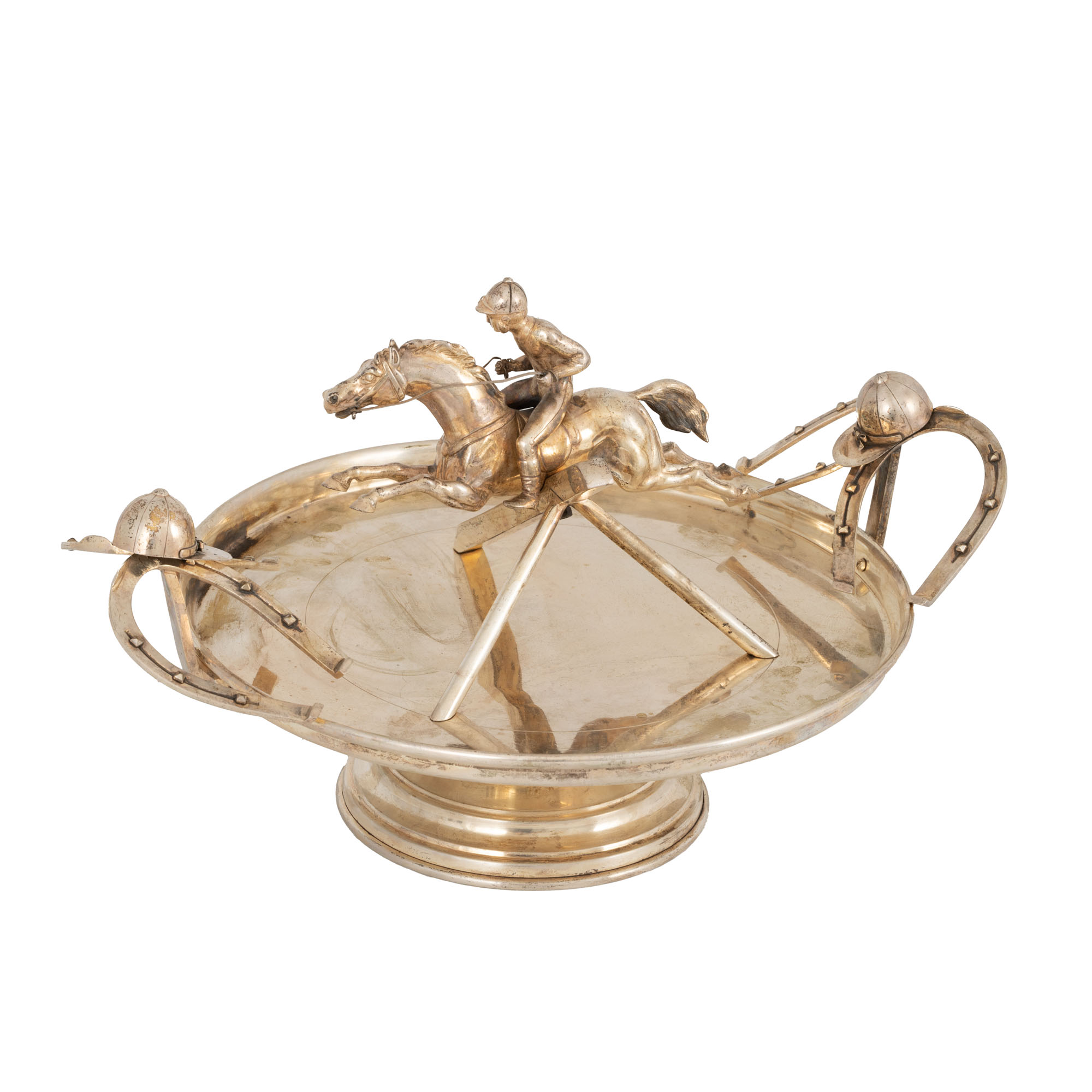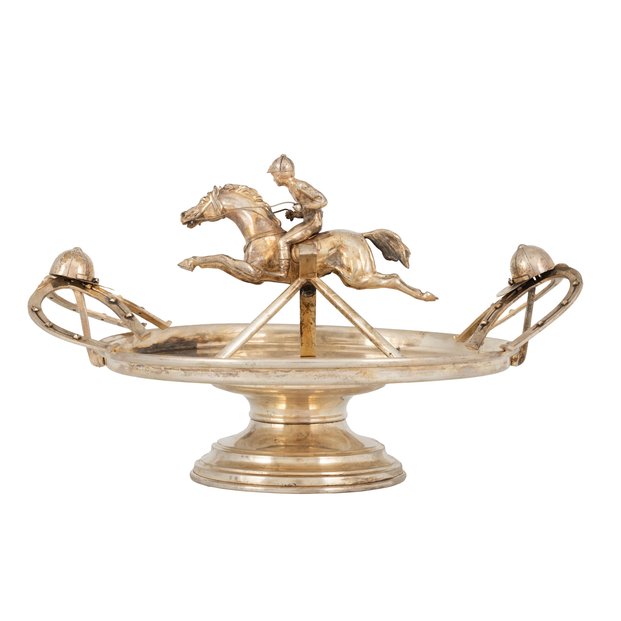 92. Centru de masă din bronz argintat, decorat cu jockey și elemente hipice [mijlocul sec. XX]