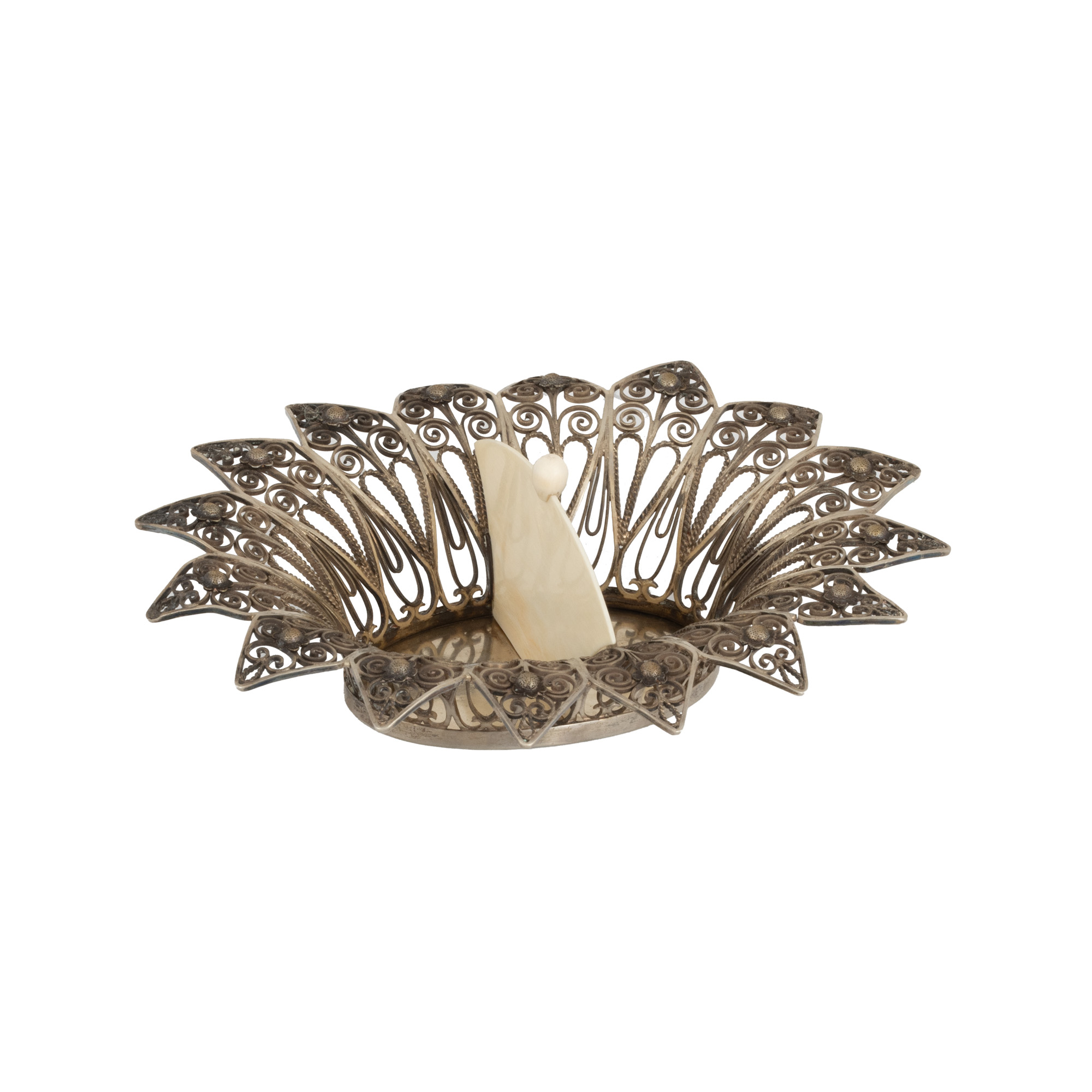 24. Coșuleț din argint și fildeș, parțial filigranat în model floral, cca. 1890