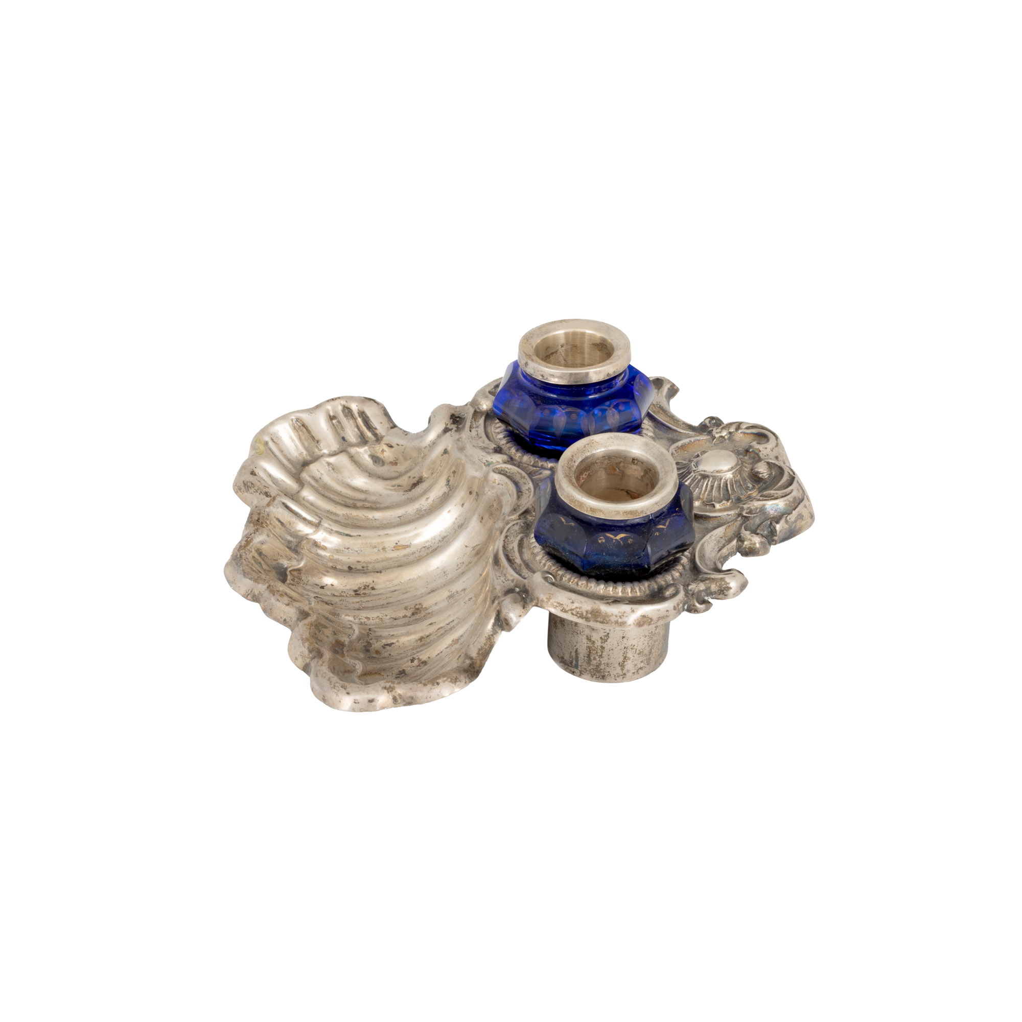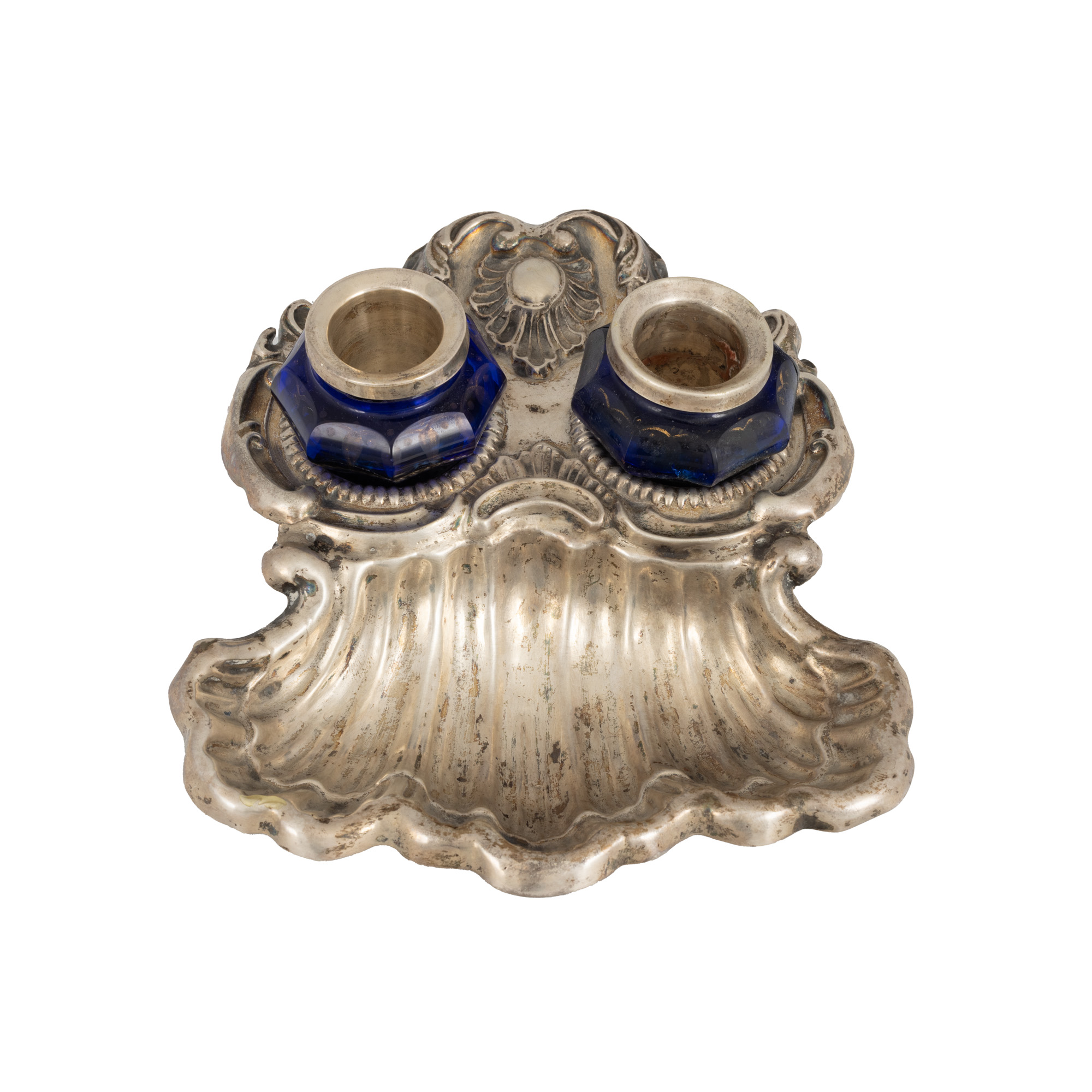 71. Encrieră din argint, cu două călimări din cristal, decorată cu motiv Rocaille, cca. 1900