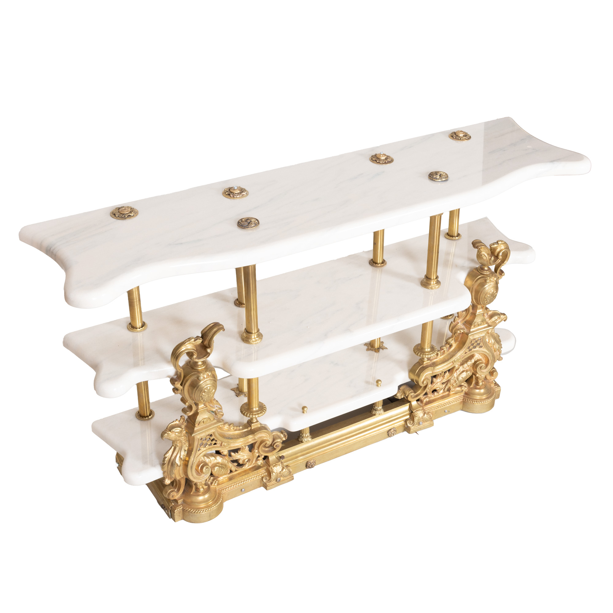 14. Etajeră în manieră Louis XV, din bronz doré cu blaturi din marmură, sfârșit de sec. XIX