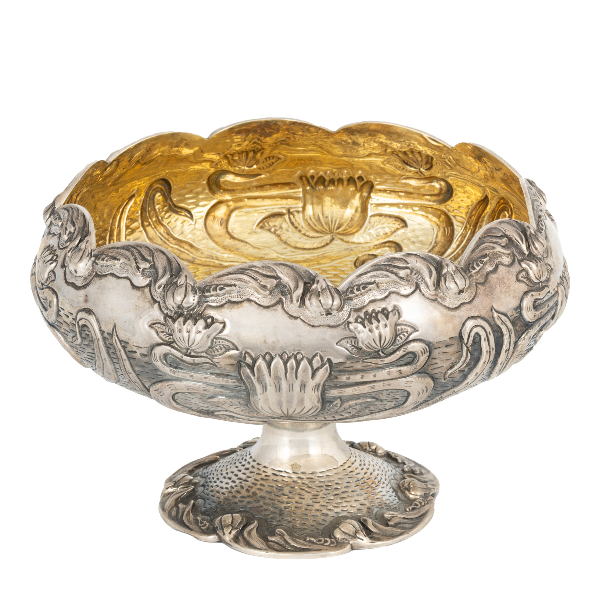 59. Fructieră Art Nouveau, din argint, ornată cu flori de lotus, cca. 1900