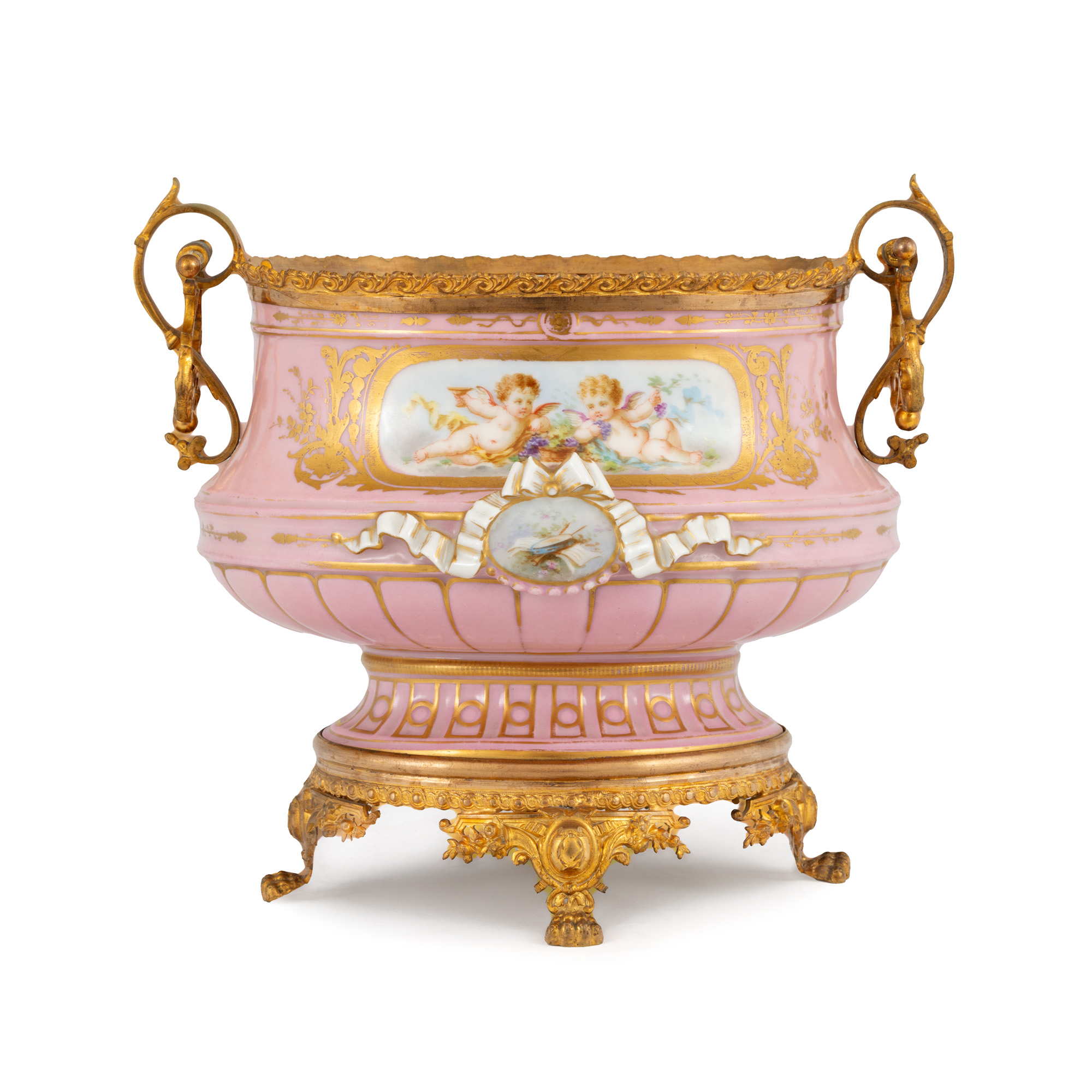 3. Fructieră Sèvres din porțelan pictat, decorată cu montură din bronz doré, cca. 1890