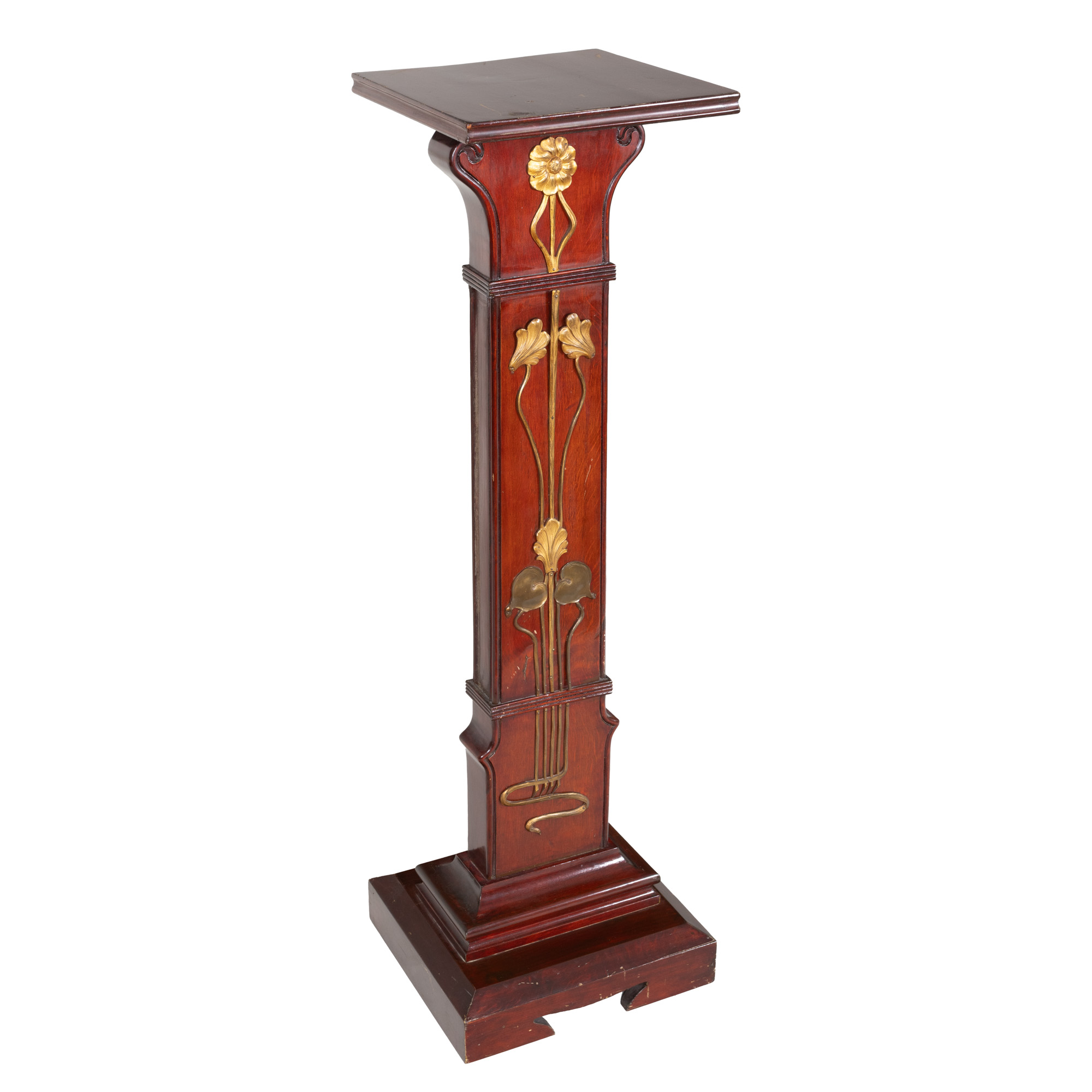 7. Piedestal Art Nouveau, decorat cu elemente din alamă în decor vegetal, cca. 1900