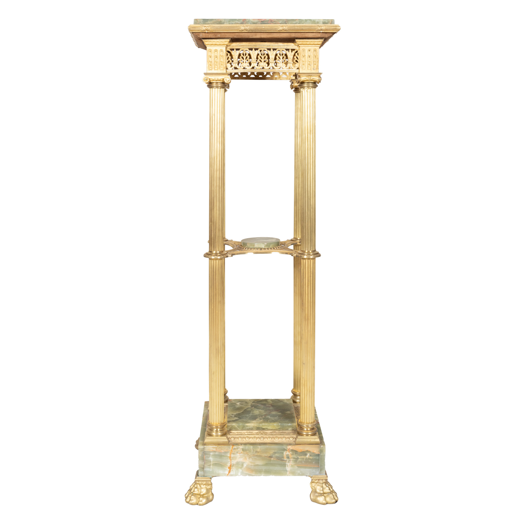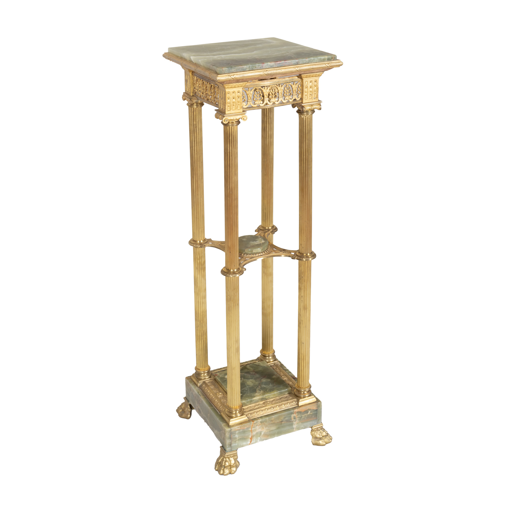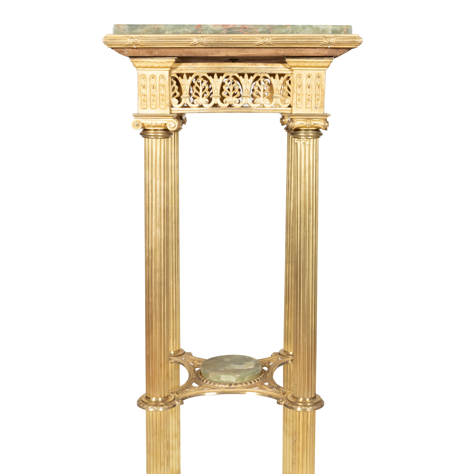 9. Piedestal Louis XVI, din lemn și marmură, ornat cu aplicații din bronz doré, sfârșitul sec. XIX