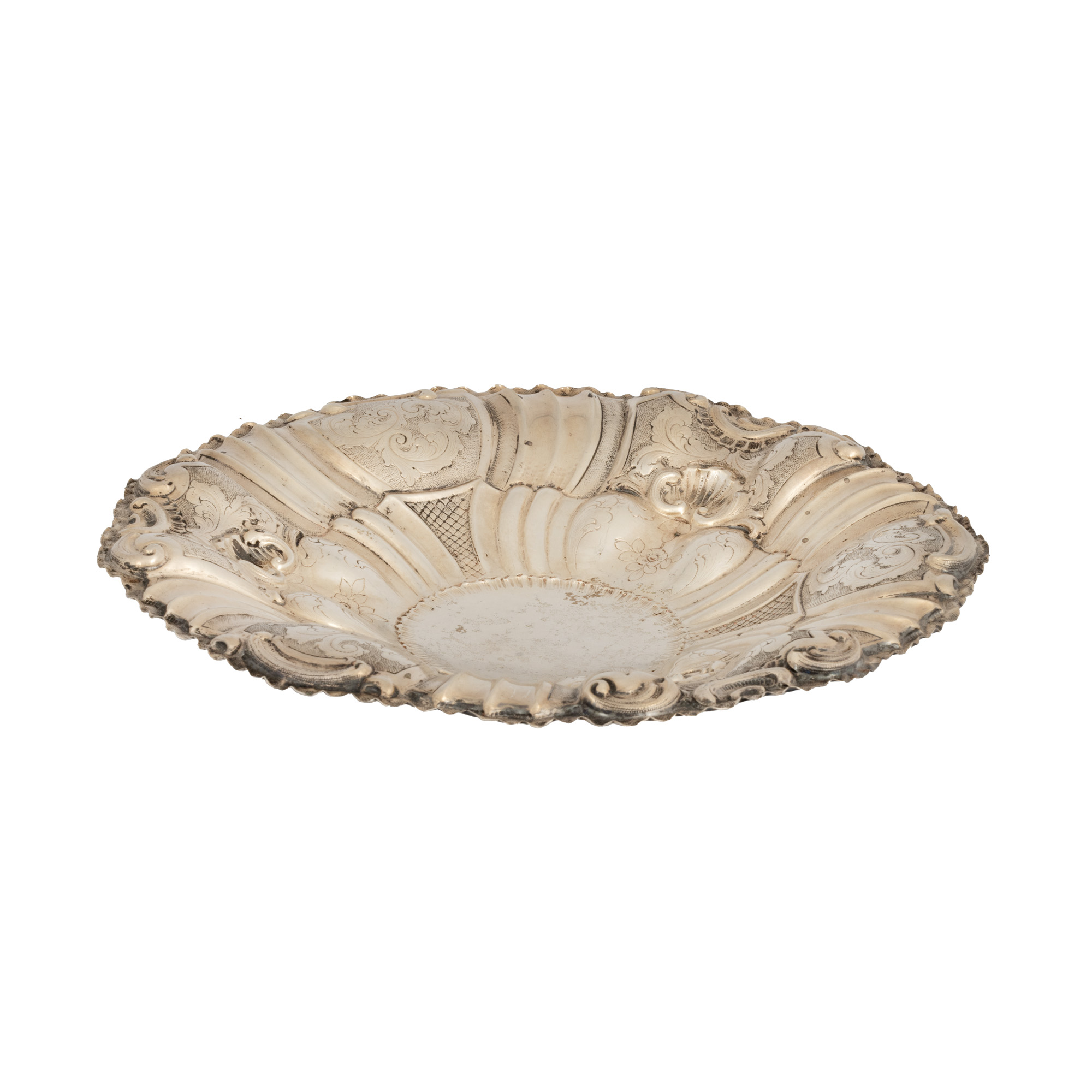 64. Platou din argint, în manieră Neo-Rococo, decorată cu elemente vegetale, începutul sec. XX