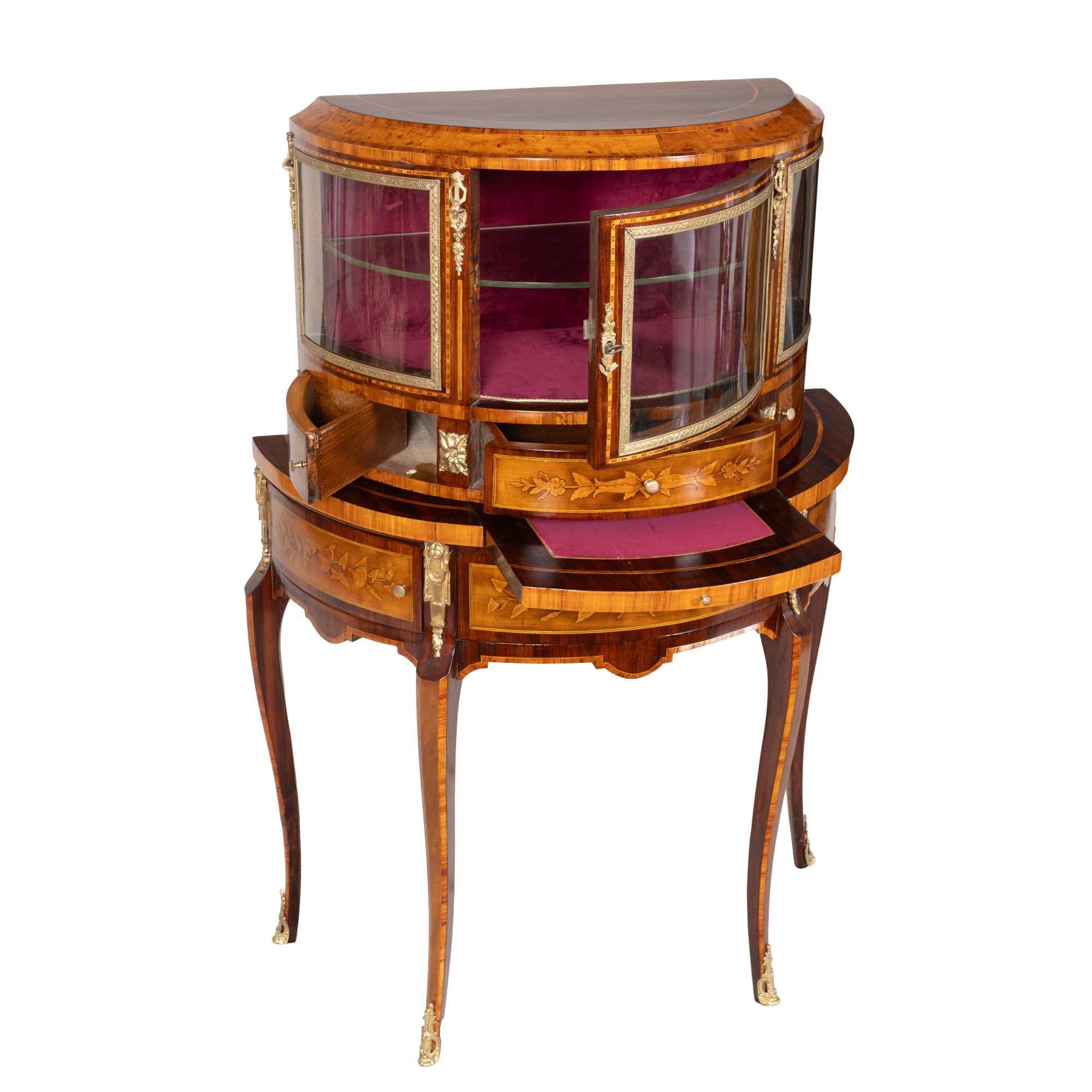 12. Vitrină în manieră Louis XVI, decorată cu marchetărie în motive vegetale, sfârșitul sec. XIX