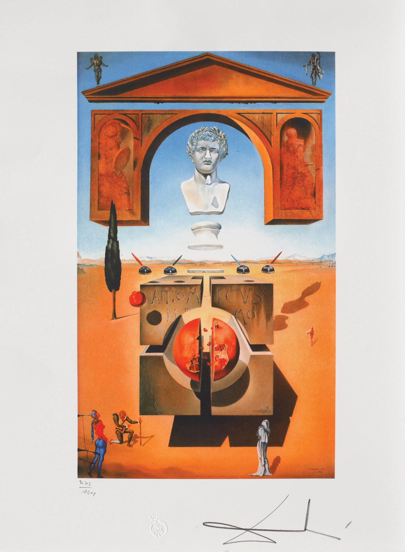 semnat dreapta jos, sub cadru, în cărbune, "Dali"; numerotat stânga jos, sub cadru, în creion, "DXL/MM"; stânga jos, sub cadru, ştampila editurii, "G. Dali"