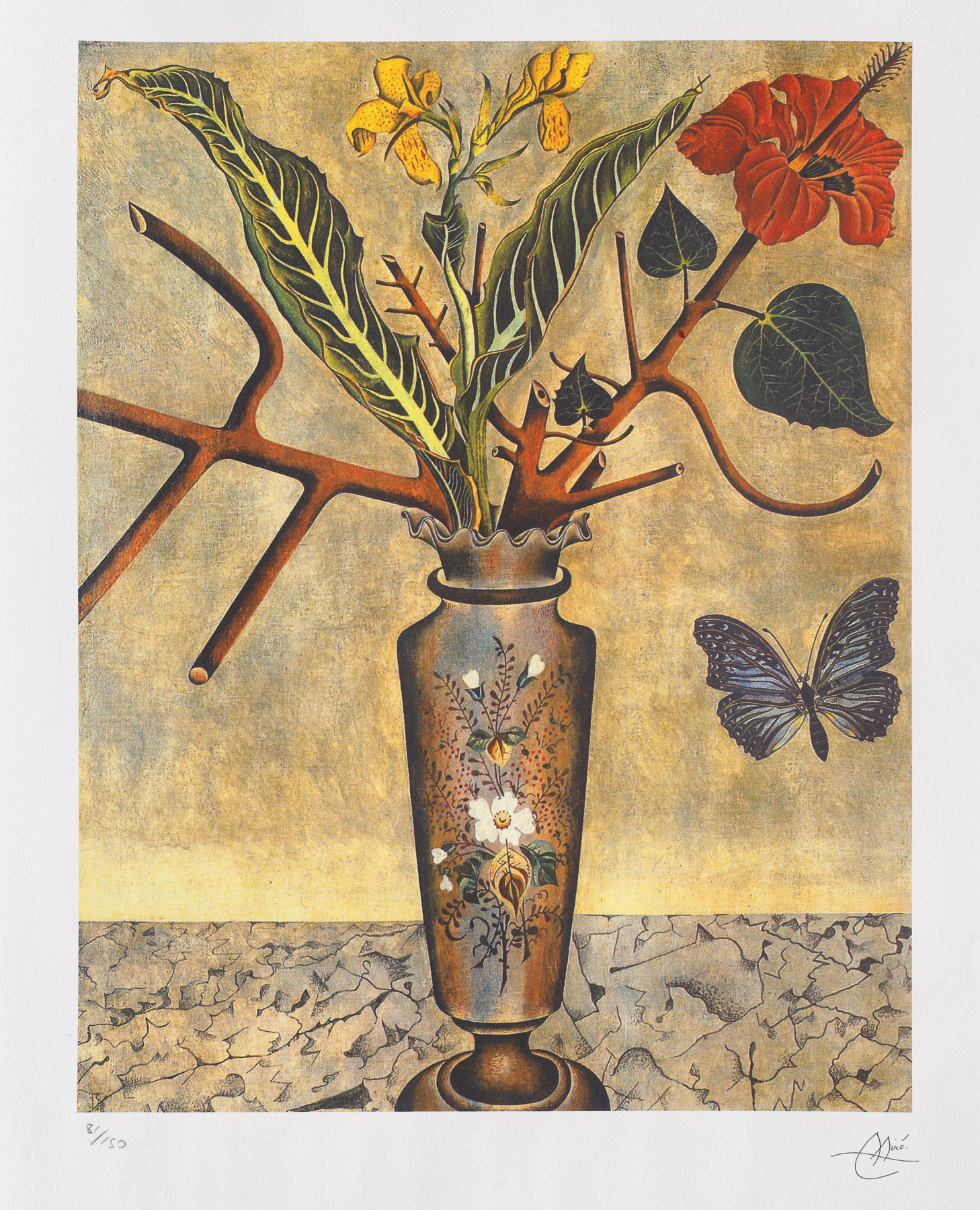 semnat, gravat, dreapta jos, sub cadru, ”Miro”; numerotat stânga jos, sub cadru, în creion, ”81/150”; dreapta jos, ștampila editurii, ”SPADEM, 1973”